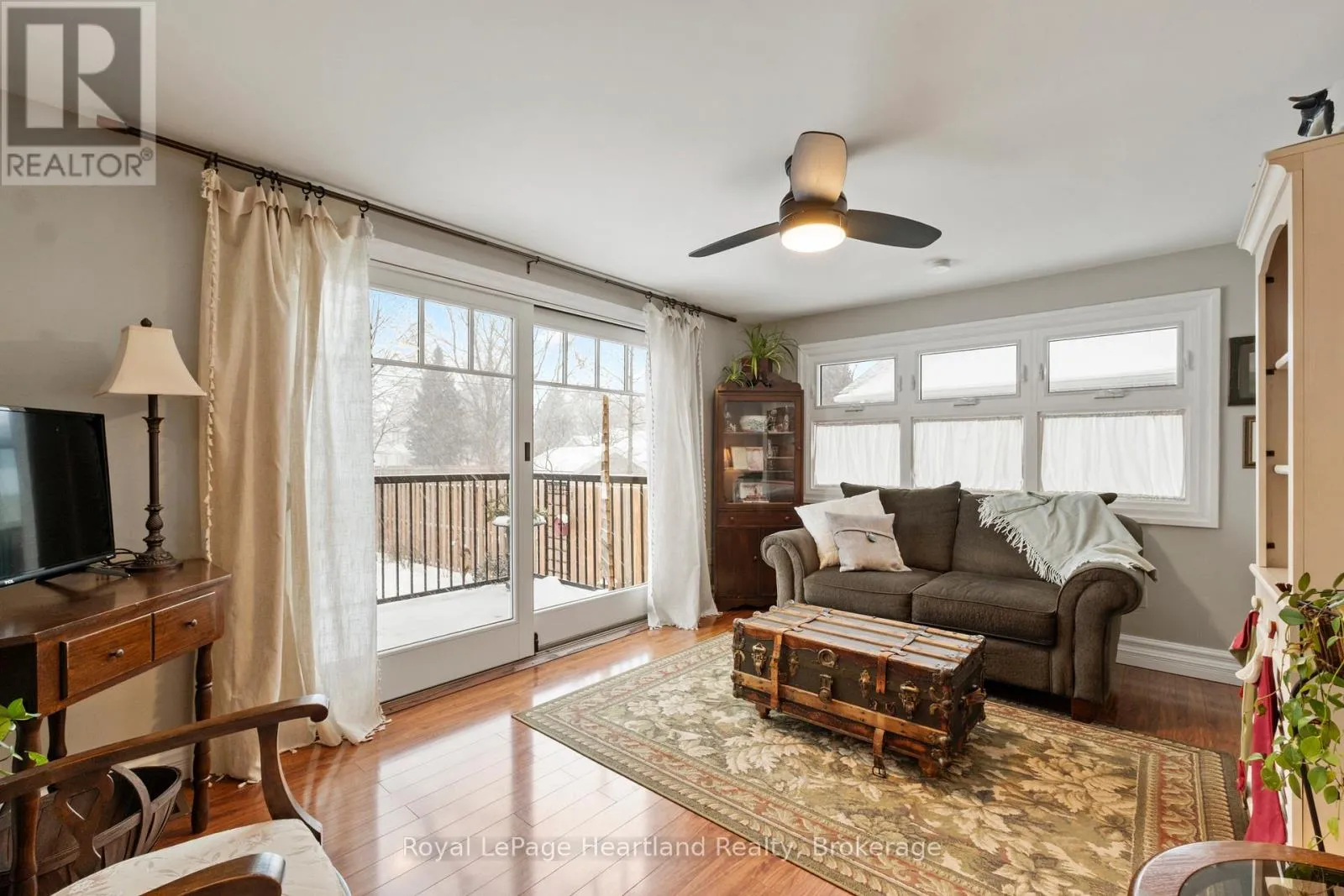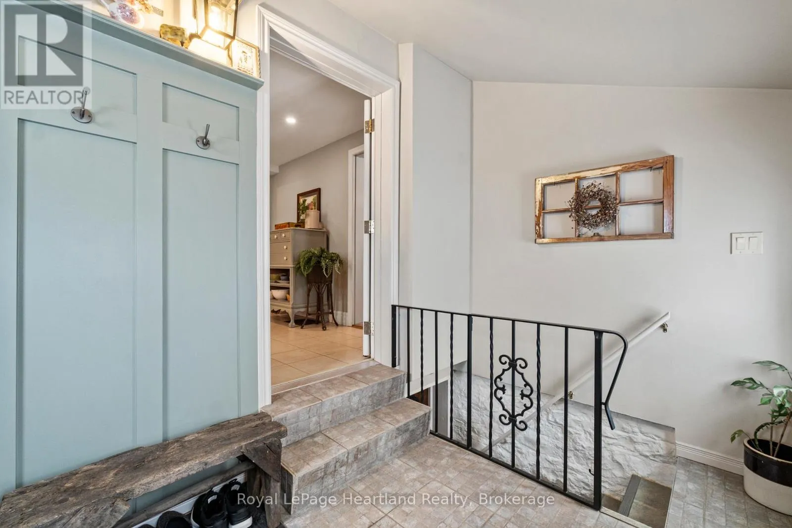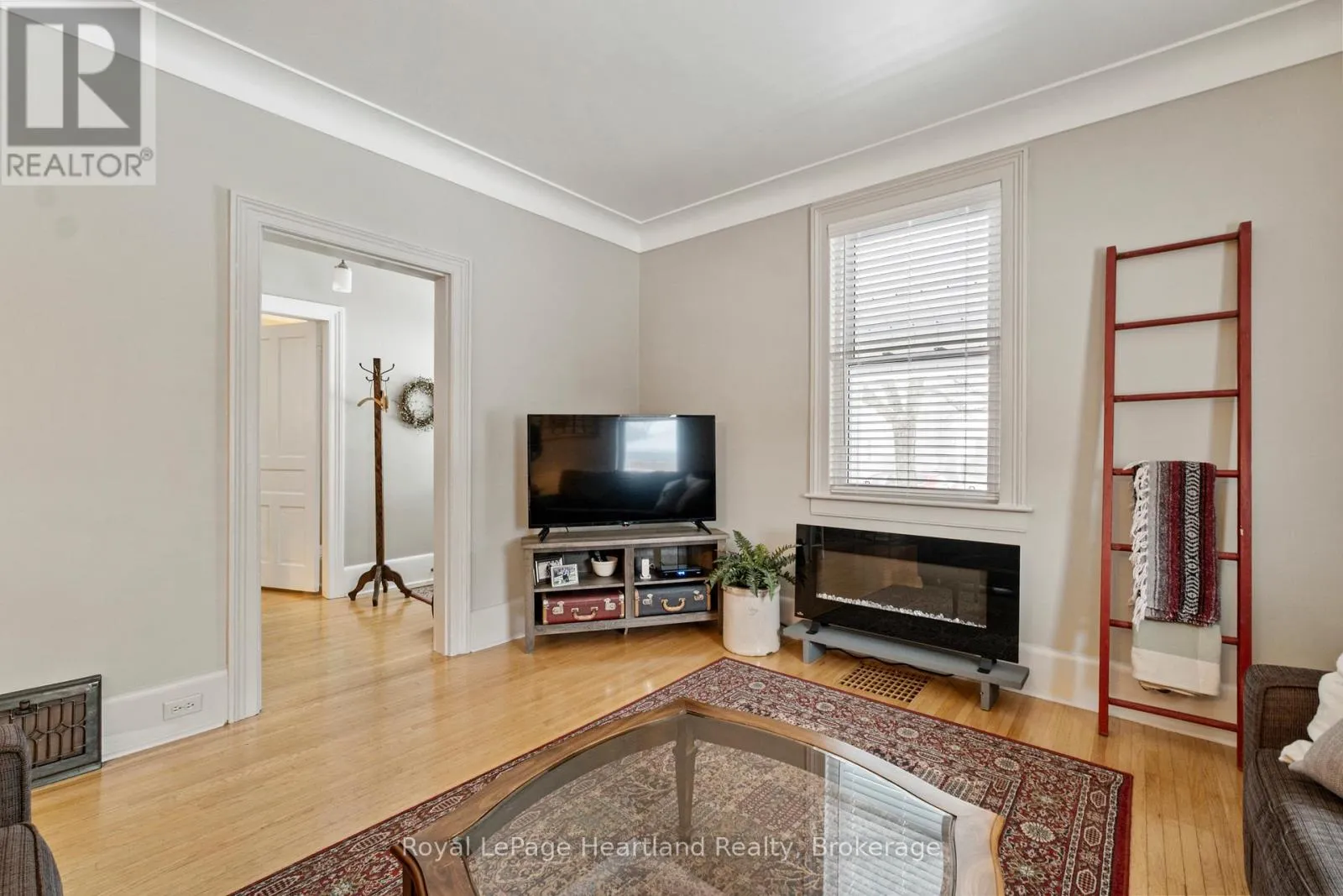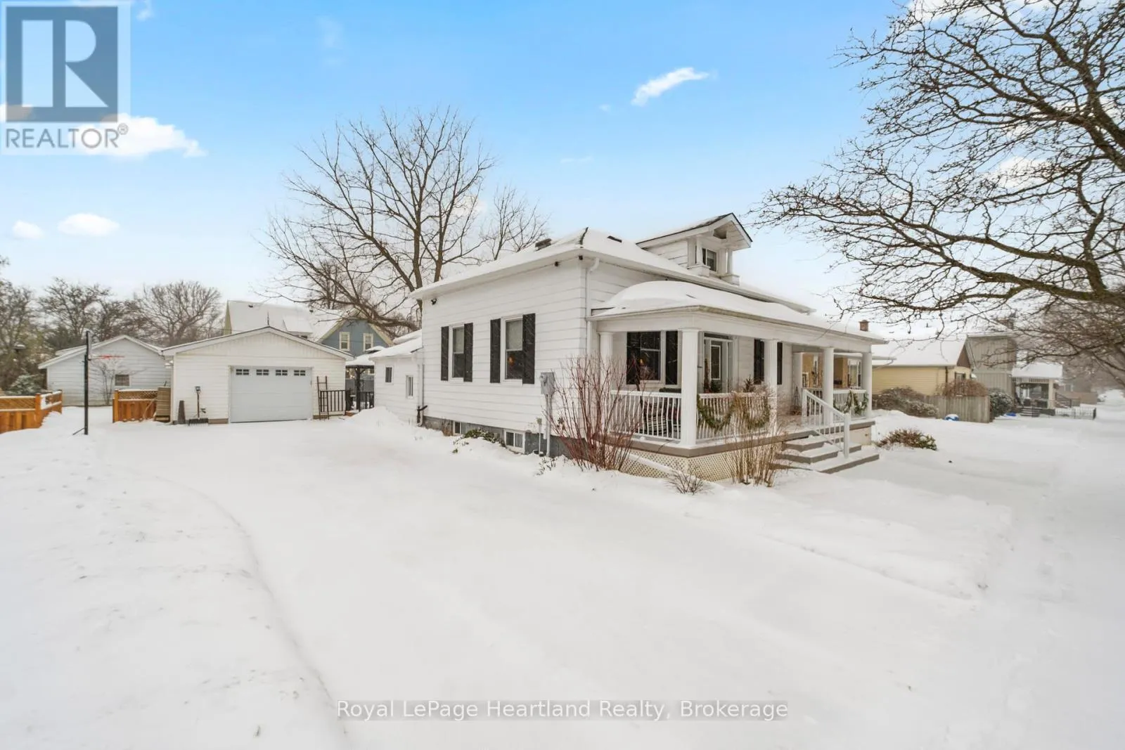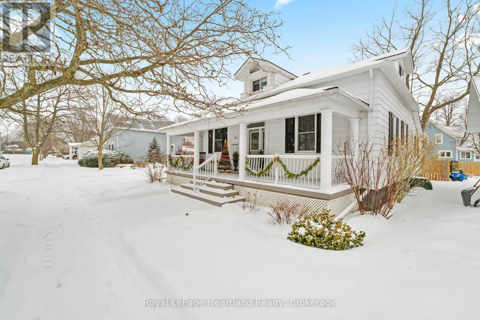 Cross Streets: Waterloo St and Quebec St. ** Directions: From the 5 points set of lights, take Elgin Ave.West towards the lake. Turn right at Waterloo St. S and left onto Quebec St. Property will be on the left about half way down the street. Standout curb appeal in Goderich's desirable West End, this charming Ontario cottage-style home draws you in immediately with its beloved covered front porch and striking dark shutters, and sits on a generous 96.82' x 106.85' Lot with a detached combination 20'x18' single-car garage with 18'x11' workshop. Inside, the main level offers a large living and dining area with character-rich original hardwood floors, cove mouldings, and a great location for a gas fireplace, followed by a spacious eat-in kitchen featuring ample cabinetry, stainless steel accents, 2024 pot lights, and a 2025 stove and dishwasher. Off the kitchen into a bright family room there's views of the fully fenced backyard from the newly-created patio door, out to two decks with a pergola and the garage/workshop. The main floor is complete with a comfortable primary bedroom with 4-piece ensuite-style bathroom, and a nearby second bedroom; while the upper level provides a cozy third bedroom with a dormer window and its own three-piece ensuite. With gardens abound, spending time outside won't be hard in 2026, gear up for the grilling season with a new 2025 gas BBQ line, too. Recent updates include new eavestroughs and gutter guards (2024), a five-inch air cleaner added to the furnace (2024), and new toilets in both bathrooms, owned hot water tank (2023), forced-air gas furnace (2018), roof (2017), central air, and a central vacuum system, all just minutes from Goderich's Town Square with shopping, restaurants, and within walking distance to Lighthouse Park and Lake Huron beaches and sunset. The charm you've been waiting for, in the location you've been looking at, is finally here and ready for you. Don't wait! (id:27476)