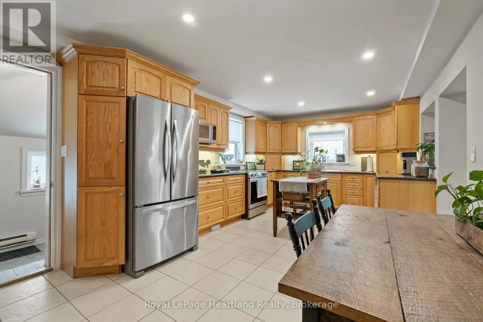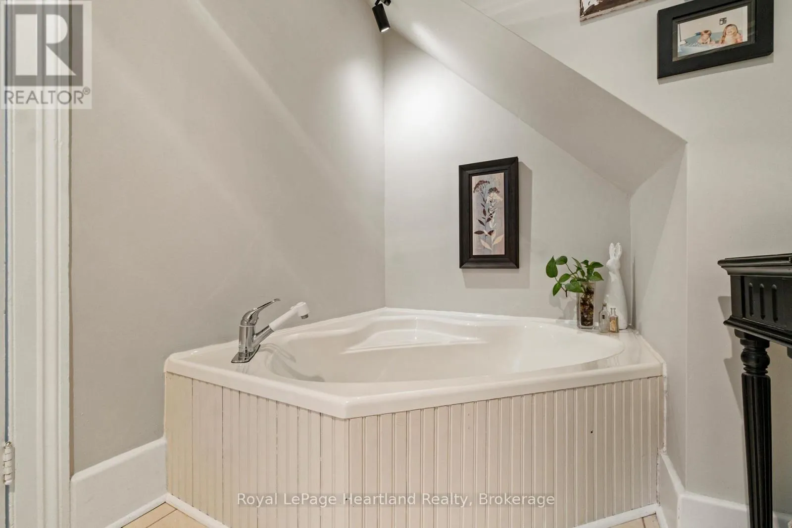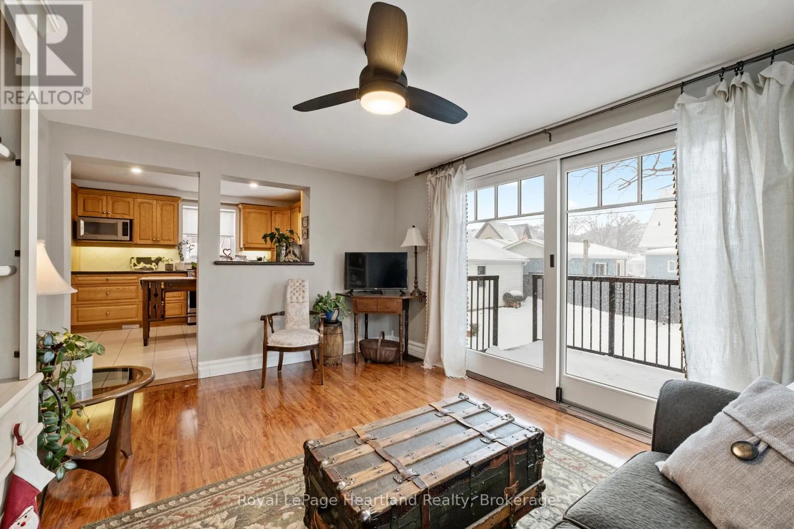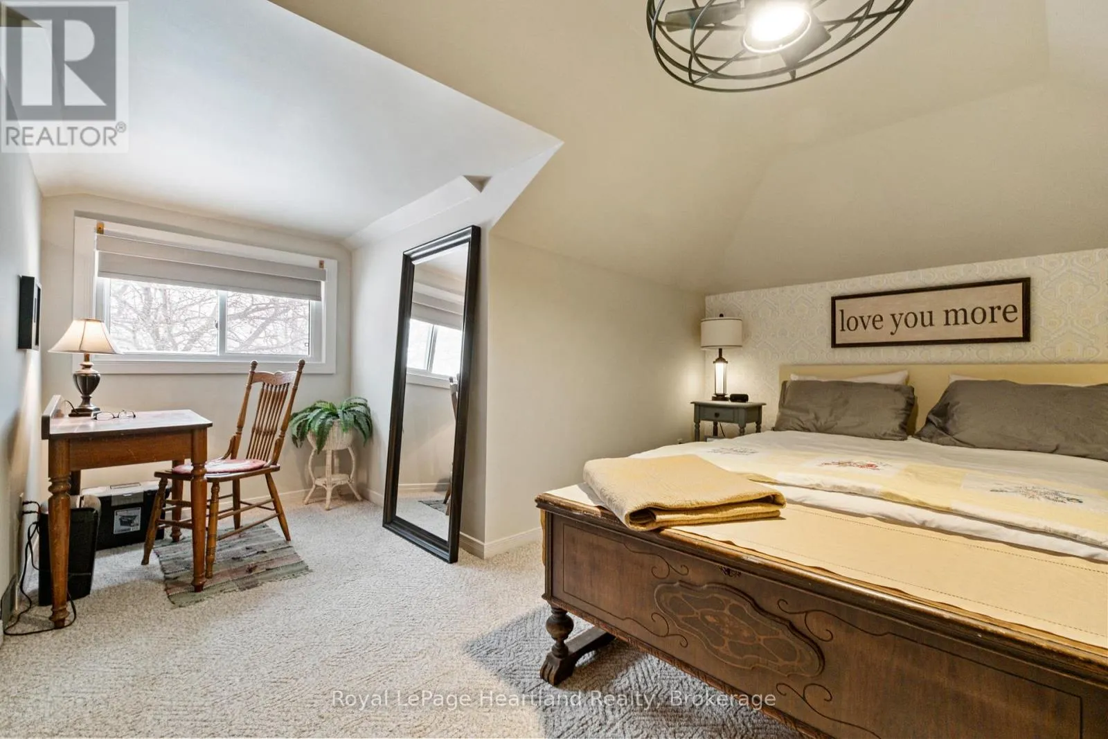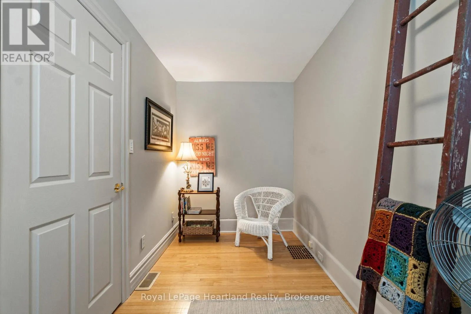 Cross Streets: Waterloo St and Quebec St. ** Directions: From the 5 points set of lights, take Elgin Ave.West towards the lake. Turn right at Waterloo St. S and left onto Quebec St. Property will be on the left about half way down the street. Standout curb appeal in Goderich's desirable West End, this charming Ontario cottage-style home draws you in immediately with its beloved covered front porch and striking dark shutters, and sits on a generous 96.82' x 106.85' Lot with a detached combination 20'x18' single-car garage with 18'x11' workshop. Inside, the main level offers a large living and dining area with character-rich original hardwood floors, cove mouldings, and a great location for a gas fireplace, followed by a spacious eat-in kitchen featuring ample cabinetry, stainless steel accents, 2024 pot lights, and a 2025 stove and dishwasher. Off the kitchen into a bright family room there's views of the fully fenced backyard from the newly-created patio door, out to two decks with a pergola and the garage/workshop. The main floor is complete with a comfortable primary bedroom with 4-piece ensuite-style bathroom, and a nearby second bedroom; while the upper level provides a cozy third bedroom with a dormer window and its own three-piece ensuite. With gardens abound, spending time outside won't be hard in 2026, gear up for the grilling season with a new 2025 gas BBQ line, too. Recent updates include new eavestroughs and gutter guards (2024), a five-inch air cleaner added to the furnace (2024), and new toilets in both bathrooms, owned hot water tank (2023), forced-air gas furnace (2018), roof (2017), central air, and a central vacuum system, all just minutes from Goderich's Town Square with shopping, restaurants, and within walking distance to Lighthouse Park and Lake Huron beaches and sunset. The charm you've been waiting for, in the location you've been looking at, is finally here and ready for you. Don't wait! (id:27476)