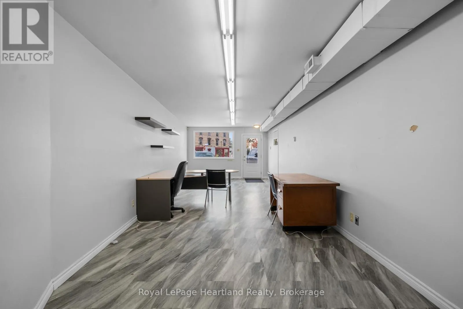 Cross Streets: Newgate St. and Hamilton St. ** Directions: From Highway 21 turn west onto Newgate St. Property on left hand side before you reach Hamilton St. Commercial Flexibility! Vendor Take Back (VTB) Mortgage Opportunity, Call your REALTOR today and ask for details. This is your chance to own a versatile, bright commercial space in the heart of Goderich, this property is more than just space it's an opportunity to become part of Goderich's thriving downtown revival with new infrastructure, housing developments, and the town's 200th anniversary celebrations on the horizon in 2027. This location ensures steady foot traffic and a strong presence in Goderich's commercial core. Rarely does a property with this flexibility and prime location become available. Step into the bright 1,200 sq ft. that is arranged into two flexible spaces (East side approx. 850 sq ft and West side approx 350 sq ft), each with its own unique footprint enabling two businesses to come together under one roof (2 hydro meters), and enhanced by three distinct entrances/exits for flow and visibility (incl a double shipping/receiving door on grade). Zoned C5 (Mixed Use Core Area Commercial), the space is ideal for numerous business ventures: retail storefronts, food establishment, professional office, tech space, health or wellness services for Goderich's aging demographic, creative studios, or even a shared/multi-unit setup. Whether you're an entrepreneur launching a new concept and could benefit from sublet income on the other side, or you're an investor seeking rental income, the flexible layout offers configurations to suit your vision. Flat roof membrane replacement in 2011. West side has shallow crawl space, while the east side is slab on grade. Don't miss out on this rare opportunity to secure a prime downtown location with great visibility and potential. Reach out to see the space in person! (id:27476)