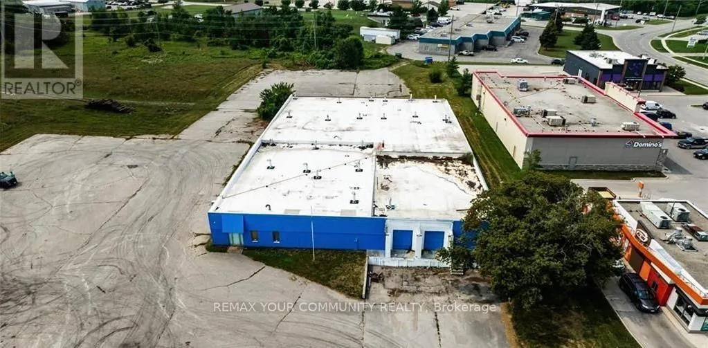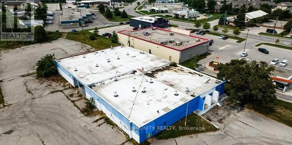 Driving West on Highway 8, turn left before the lights. Property is beside A&W Freestanding building totaling 20,680 sq. ft. situated on a 1-acre severed parcel in a prominent area of Goderich, ON. Solid cinderblock construction with a newer roof (2019). The building is a vacant shell, offering a clean slate for a wide range of potential configurations by an end user or investor. High-profile site featuring an asphalt driveway, strong access, and generous on-site land area that supports flexibility for operations, parking, or outdoor use. The property lends itself to a variety of commercial or employment-oriented uses, subject to municipal approvals and buyer due diligence. Approximately 2 hours to the U.S. border. Opportunity to acquire a large-format building with land in a supply-constrained market. Buyers are encouraged to review zoning and permitted uses with the municipality to confirm intended use. (id:27476)