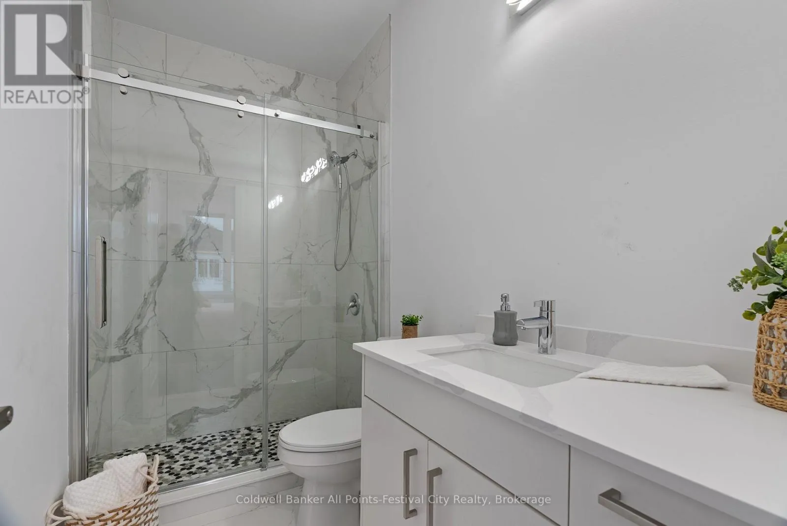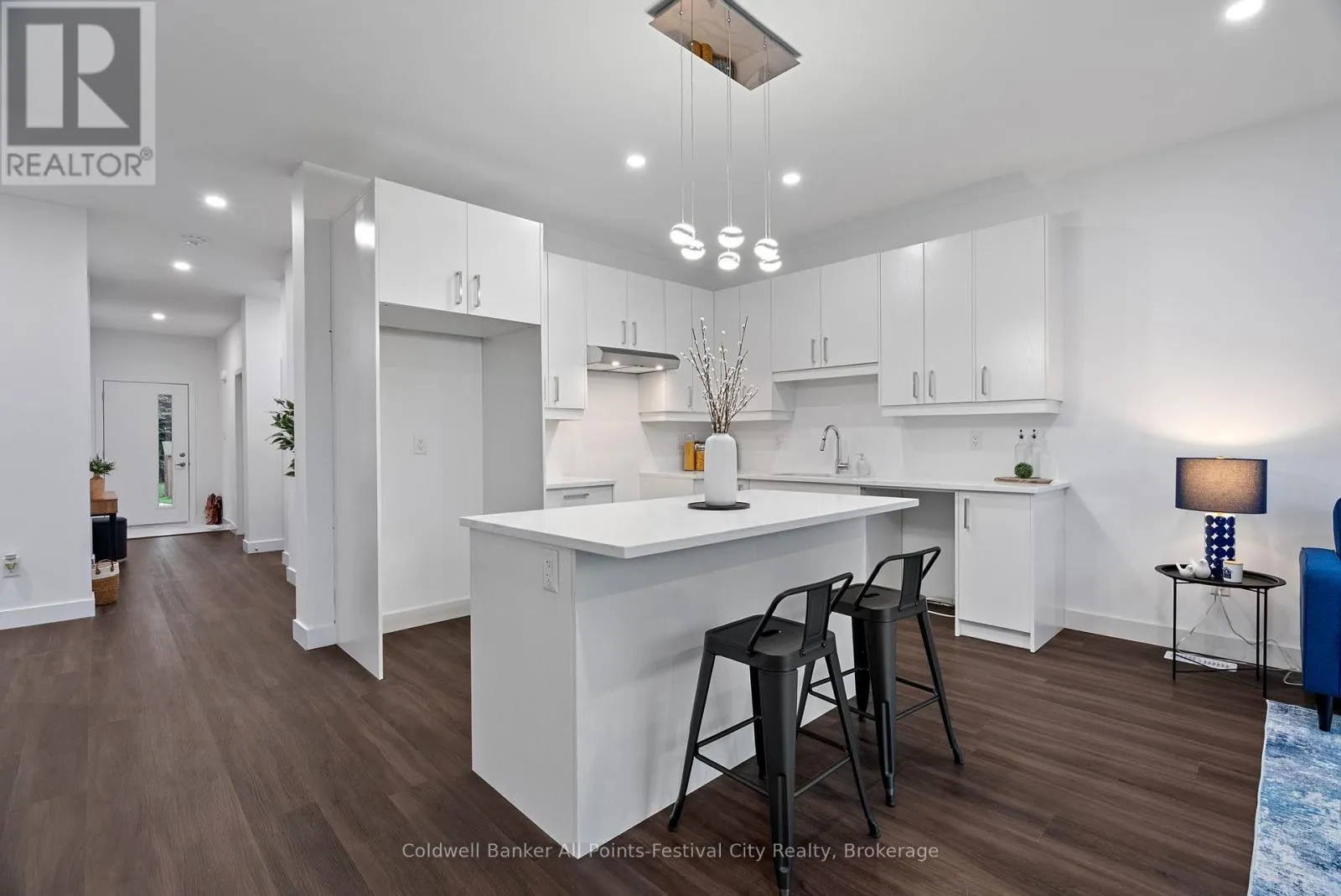 Cross Streets: Cambria Rd. ** Directions: From Hwy 8, take Cambria Rd, then east on Park St. Property is on the right. Stunning Brand-New Bungalow in Goderich! Beautifully designed 4-bedroom, 3-bathroom semi-detached bungalow offering over 1,700 sq. ft. of modern living space in a quiet Goderich location. The exterior features elegant brickwork, covered porch, attached garage, double driveway, and private rear patio. Inside, enjoy an open-concept layout with quartz countertops, porcelain tile, and premium finishes throughout. The main level includes a luxurious primary suite with glass shower ensuite, second bedroom, large laundry room, and direct garage access. The fully finished lower level adds exceptional space with a second kitchen, two bedrooms, full bath, and bright living area-ideal for family or guests. Separate entrances offer income potential! (id:27476)
