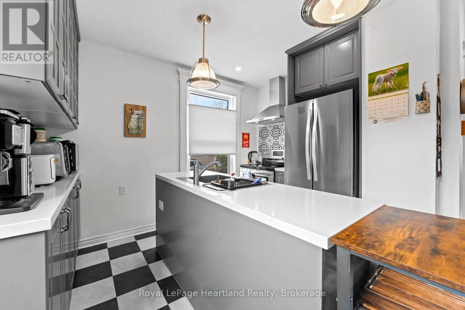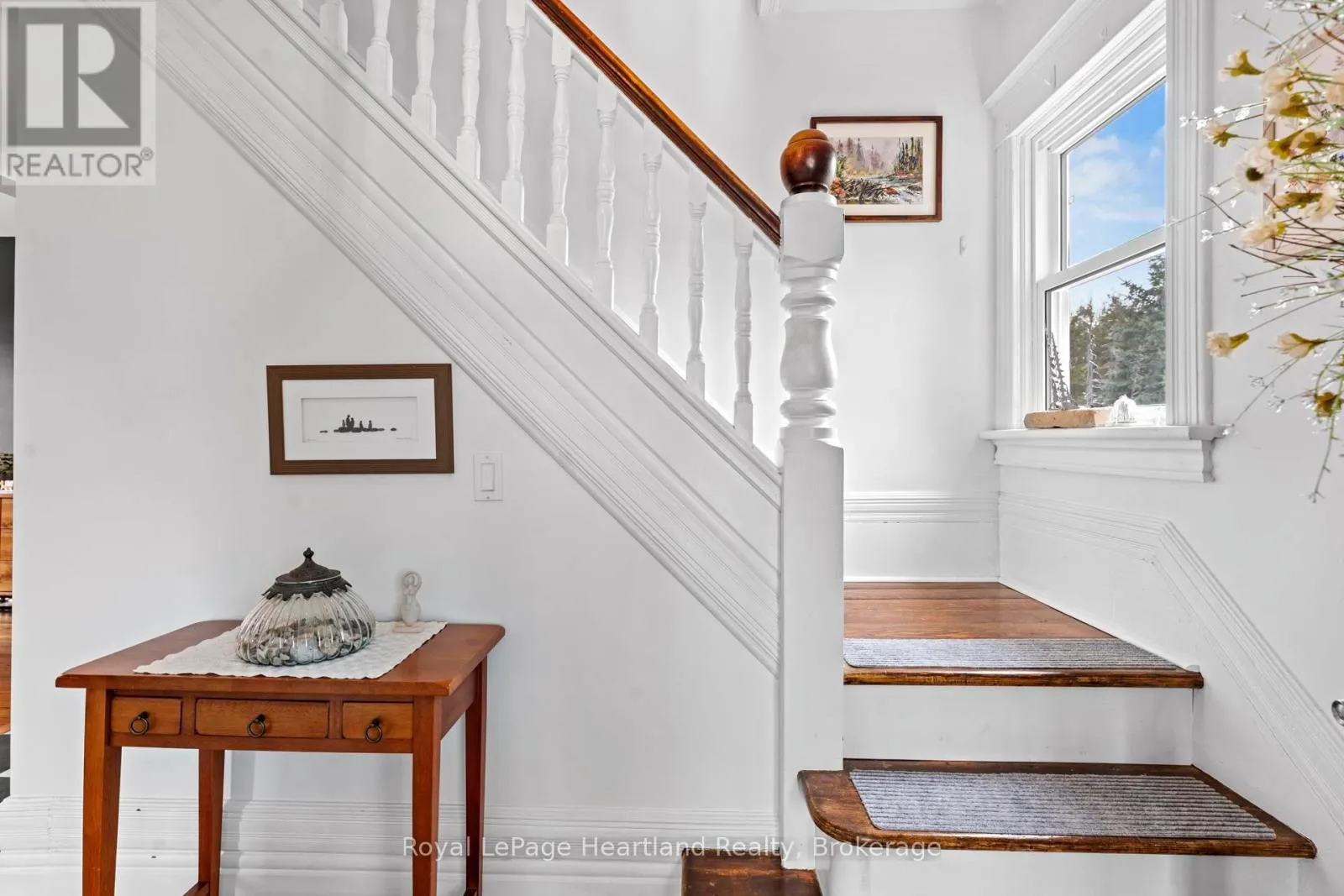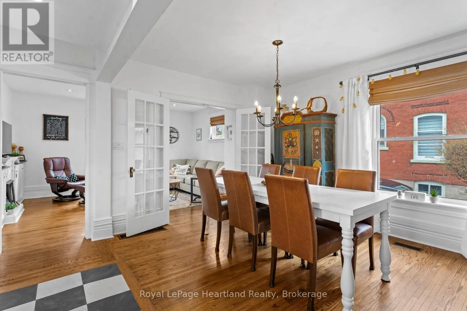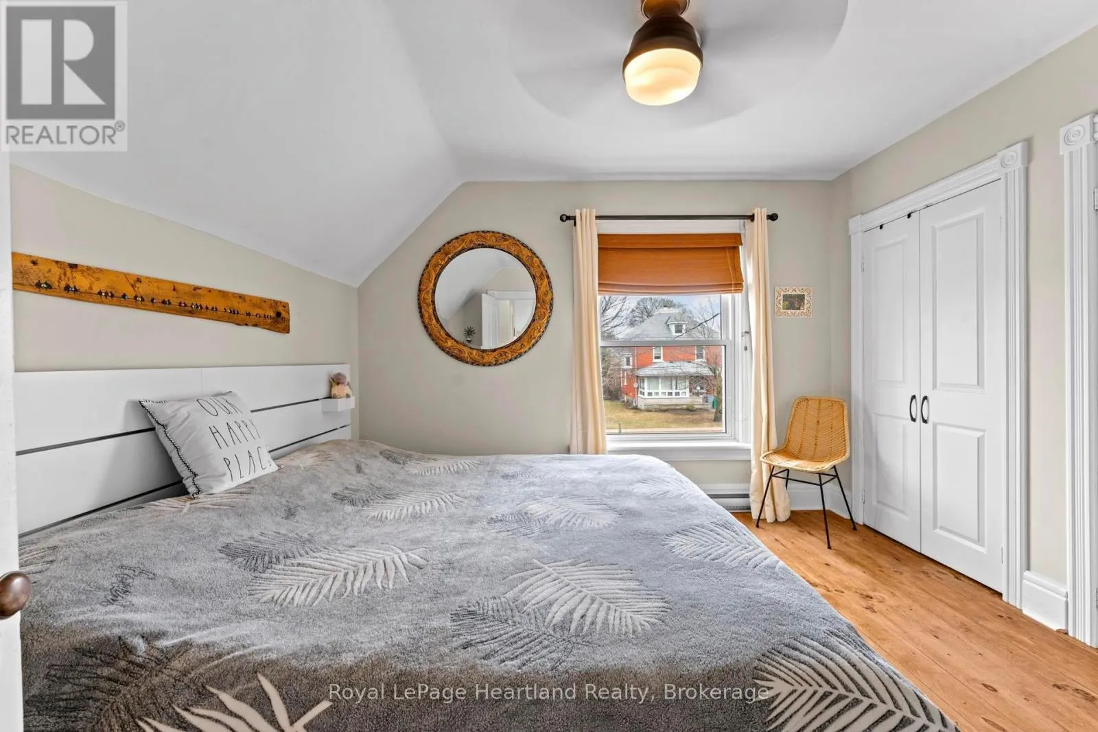 Cross Streets: Victoria St N & Nelson St E. ** Directions: From Hwy 21 (Victoria St), turn East onto Nelson St E. The property is located on the South (right) side, just before the intersection of Cambria Rd N. This 2-storey, 3-bedroom, 1.5-bathroom Victorian-style home offers lots of updates, including an updated kitchen with pantry and main floor 2 pc bath, deck out back, wall removal to open up the kitchen/dining room, and decorative updates. Upstairs hosts 3 bedrooms and an updated 4 pc bathroom. The detached 1-car garage offers enclosed parking for a car and extra storage space. Situated across from Victoria Park, which offers a splash pad and tennis courts in the summer, and an outdoor ice rink in the winter, this well-kept home is just a couple of blocks away from the downtown square in Goderich. (id:27476)
