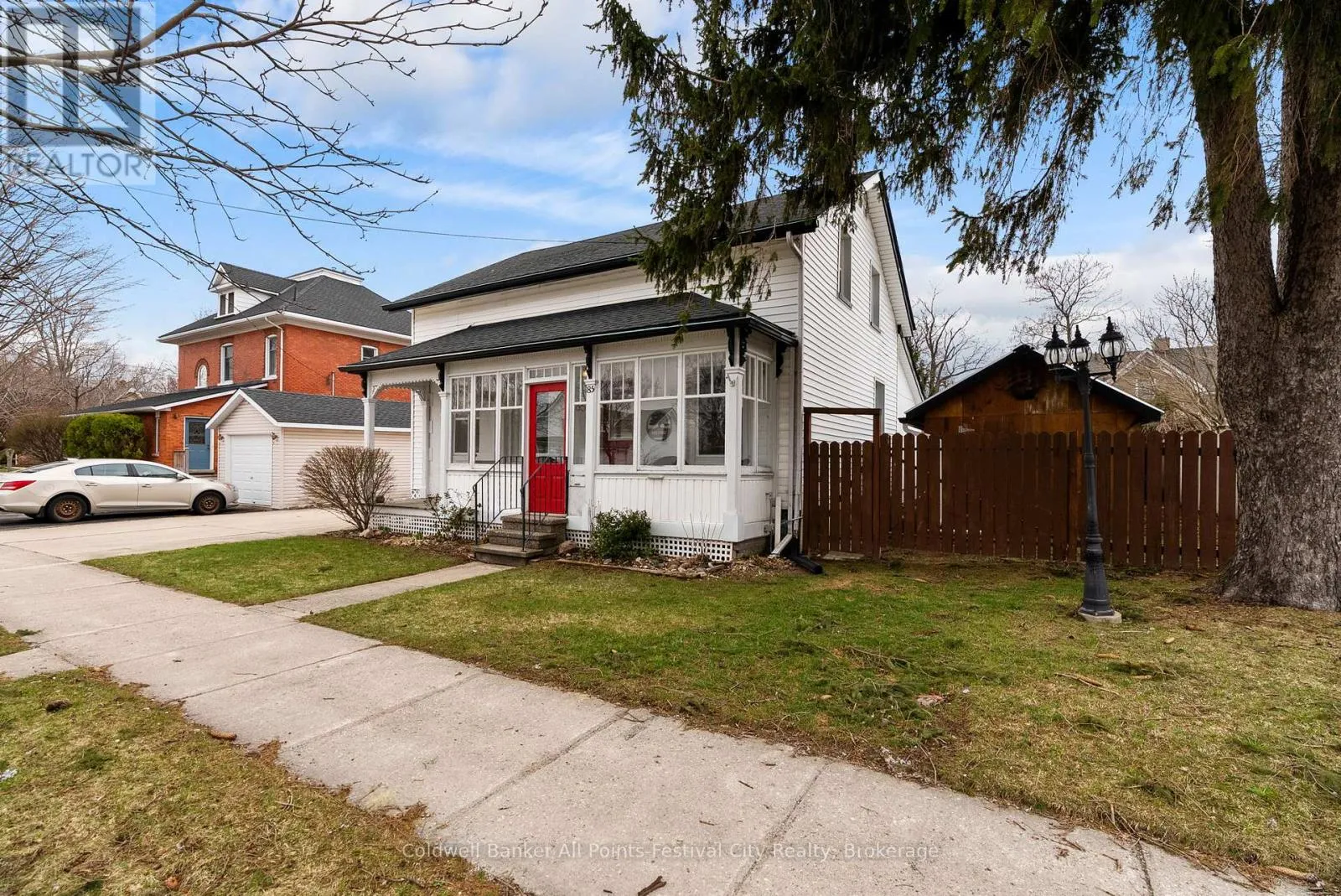 Cross Streets: Nelson St and Cambria Rd. ** Directions: From Courthouse Sq, head north down North St. Turn right on Nelson St, go through Victoria St intersection. At stop sign, turn left on Cambria Rd, property is second property on the left. Step into timeless charm at 85 Cambria Road-a classic century home that instantly captures attention with its iconic red door and welcoming curb appeal. Set on a generous town lot, this property blends character, good use of space, and lifestyle in all the right ways.Inside, you'll feel the warmth of yesteryear throughout. The main floor offers a well-appointed kitchen with pantry, dedicated dining space, and a comfortable living room. A versatile den or office with backyard access provides the perfect work-from-home setup or cozy retreat. You'll also find a convenient 3-piece bath and main floor laundry. One of the standout features is the enclosed front porch-an ideal spot to relax and watch the world go by.Upstairs, two bedrooms await, including a spacious primary complete with a walk-in closet and dressing area, along with a second 3-piece bathroom. The lower level adds even more flexibility with a finished space that could serve as a family room or additional bedroom, plus a clean and tidy utility area.Outside, this property truly shines. The detached garage is a rare find-perfect for parking, with a second-storey loft that opens the door to incredible storage or a unique hangout space. The expansive driveway offers plenty of parking, while the professionally landscaped backyard is designed for enjoyment, featuring a covered patio with hot tub and a separate insulated detached building-ideal as a bunkie, studio, or creative space.Located just a short stroll to Victoria Park-complete with playground, splash pad, and tennis courts-and only a couple of blocks from downtown Goderich, this home puts you right where you want to be.Don't miss your chance to own a standout century home in Goderich -book your showing today and come experience 85 Cambria Road for yourself. (id:27476)
