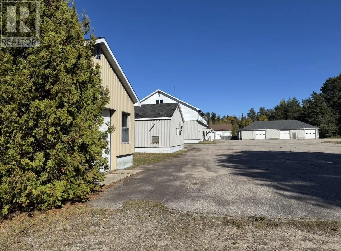 Expansive Commercial Property on 5.2 Acres in Gogama, Ontario. Exceptional opportunity to acquire a large-scale commercial property on approximately 5.2 acres in Gogama, Ontario, conveniently located about 112 km from Timmins. The impressive two-storey main building offers over 14,000 square feet and was previously used as office space, providing a versatile layout suitable for a wide range of commercial, institutional, or redevelopment uses. The property also features multiple garage buildings, ideal for storage, fleet vehicles, maintenance operations, or workshop space. Paved parking and driveways allow for easy access and efficient on-site circulation. With its generous land size, substantial building footprint, and flexible infrastructure, this property presents strong potential for owner-occupiers, investors, or organizations seeking space in a Northern Ontario setting. 60-day holding period prior to offers being reviewed. All measurements and lot sizes are approximate. The brokerage and seller do not guarantee accuracy. Buyers to verify independently. (id:27476)