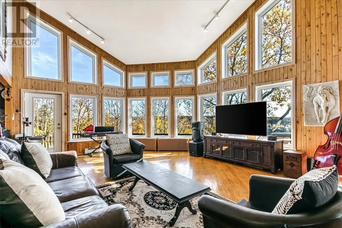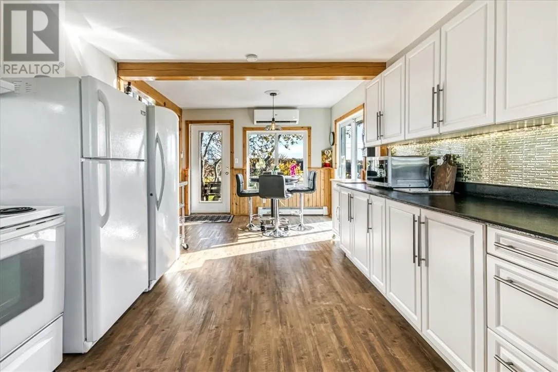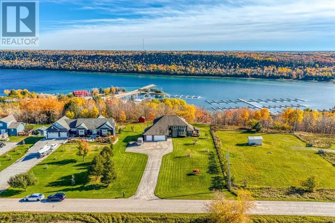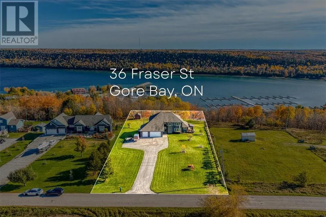 Welcome to 36 Fraser Street, an exceptional four-bedroom, three-bath home perched on the scenic and premier west bluff community of Gore Bay. Set on a beautifully manicured one-acre lot, this property offers breathtaking east-facing views overlooking the town, marina, and sparkling waters of Gore Bay. Natural light fills this distinctive home, accentuating its architectural charm and open design. The expansive living room is an entertainerâs dream, featuring soaring vaulted ceilings, hardwood floors, a stunning stone fireplace, and wall-to-wall windows that offer postcard-perfect views of the bay framed by mature tree tops. The spacious eat-in kitchen flows seamlessly to a large wraparound deck â an inviting space for outside entertaining or relaxing beneath the new timber framed gazebo to watch deer grazing in neighbouring fields. The main level of this elegant home also includes a bedroom/office and 4-piece bathroom. The staircase leads to a 2nd level open balcony landing, large primary bedroom with newly renovated ensuite bathoom, and two additional bedrooms. The sprawling manicured one acre yard features a generous sized driveway with ample parking, apple trees, and a striking back yard storage shed that adds a touch of character. The insulated and attached triple garage offers functionality, and style with epoxy floor, propane heater, ceiling mount storage racks, and workbench. Recent updates to the home include three new heat pump/air conditioning units, a high-efficiency propane boiler for the hot water radiant heating system, a hot water-on-demand unit, several new windows and a beautifully renovated spacious primary ensuite bathroom with a luxurious two-person self-cleaning jet tub. From sunrise reflections over the bay to evenings spent watching the town lights twinkle below, this exceptional west bluff home offers elegance, panoramic views, and natural beauty all within minutes of the Town of Gore Bayâs vibrant marina, shops, and amenities. (id:27476)