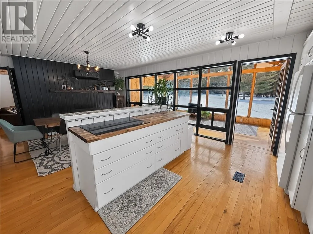 Welcome to 1 Wright Street S, a beautifully maintained home on a spacious corner lot on the outskirts of Gore Bay. Only minutes from downtown amenities and the waterfront, this 4-bedroom, 2.5-bath property sits on just over 4 acres of lawn, mature trees, and abundant wildlife. The western boundary features a hazard way (creek) with a no-build bylaw, offering added privacy and protection. The property is ideal for those seeking a rural lifestyle, complete with fruit trees (apple, cherry, pear), raspberry bushes, and a fenced vegetable garden with electric fencing. The home offers approximately 2,650 sq ft on the main level with an open-concept kitchen and dining area, a spacious living room with a new electric fireplace, and a bright sunroom. The primary bedroom includes a walk-in closet and ensuite, along with additional flexible living space and main floor laundry. Hardwood flooring and natural wood accents add warmth throughout. A spiral staircase leads to the second level, offering approximately 700 sq ft with two bedrooms, a washroom, and a games roomâperfect for family or guests. Recent upgrades include fresh paint throughout the main level, updated kitchen counters, backsplash, stovetop, sink, and oven, as well as a durable metal roof and energy-efficient heat pumps. Outside, enjoy a private backyard with a fire pit and plenty of space to relax or entertain. A rare opportunity to own a private, well-appointed property just minutes from town. (id:27476)