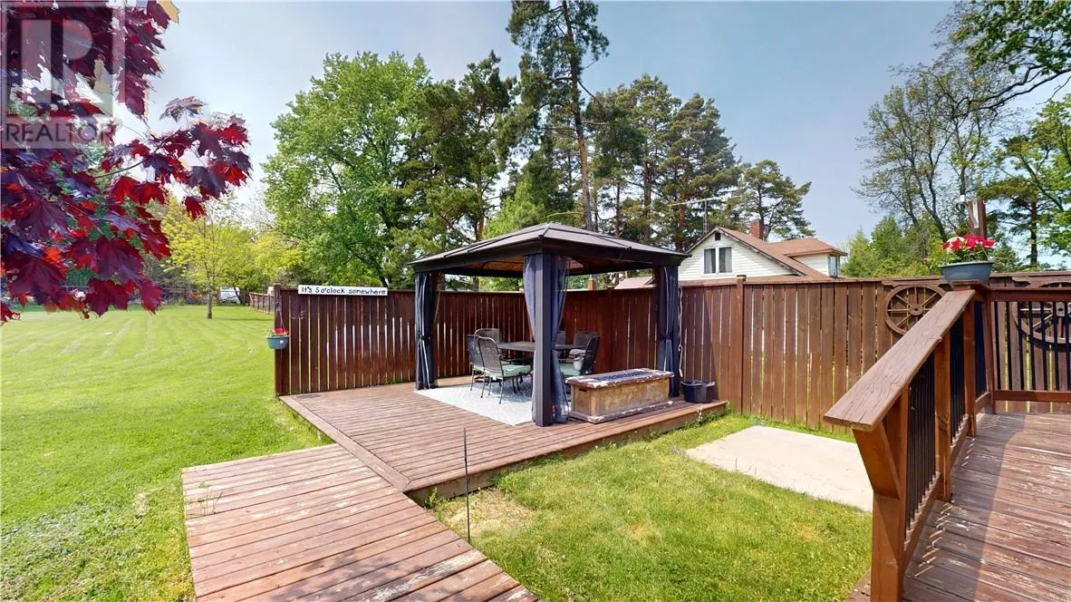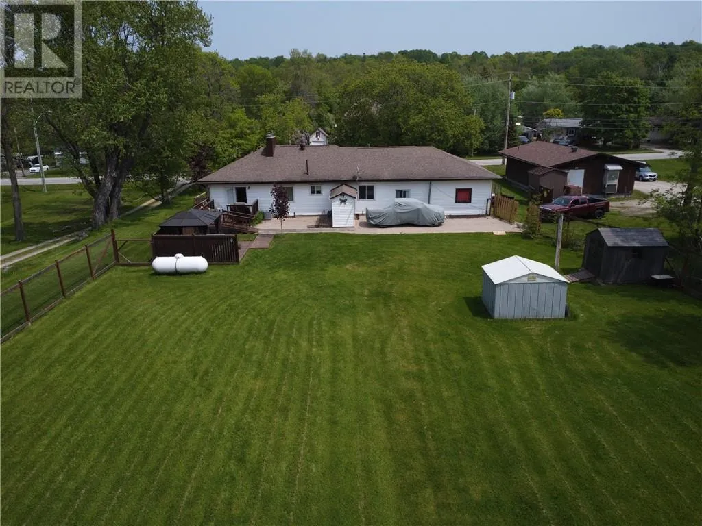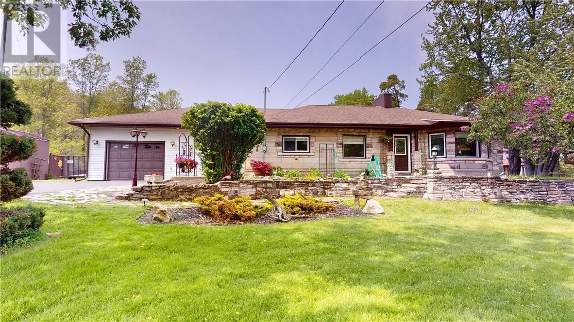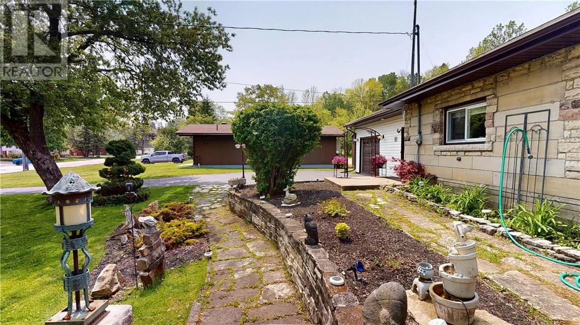This unique stone bungalow, combined with the stone landscaping, and flower gardens gives this property an amazing curb appeal. It is located on a large town lot within easy walking distance to downtown amenities and the local marina. The stone exterior is from the famous Casa Loma castle in Toronto, and the fireplace mantle is an old organ top also from Casa Loma. The fireplace place is the center piece of the large 15 ft. x 31 ft. living room. The basement is unfinished, and offers lot of space for storage, hobbies, and easy access to the mechanicals. Patio doors from the living room lead to a very private back deck. The back yard is totally fenced and there is also a patio with a gazebo. (id:27476)