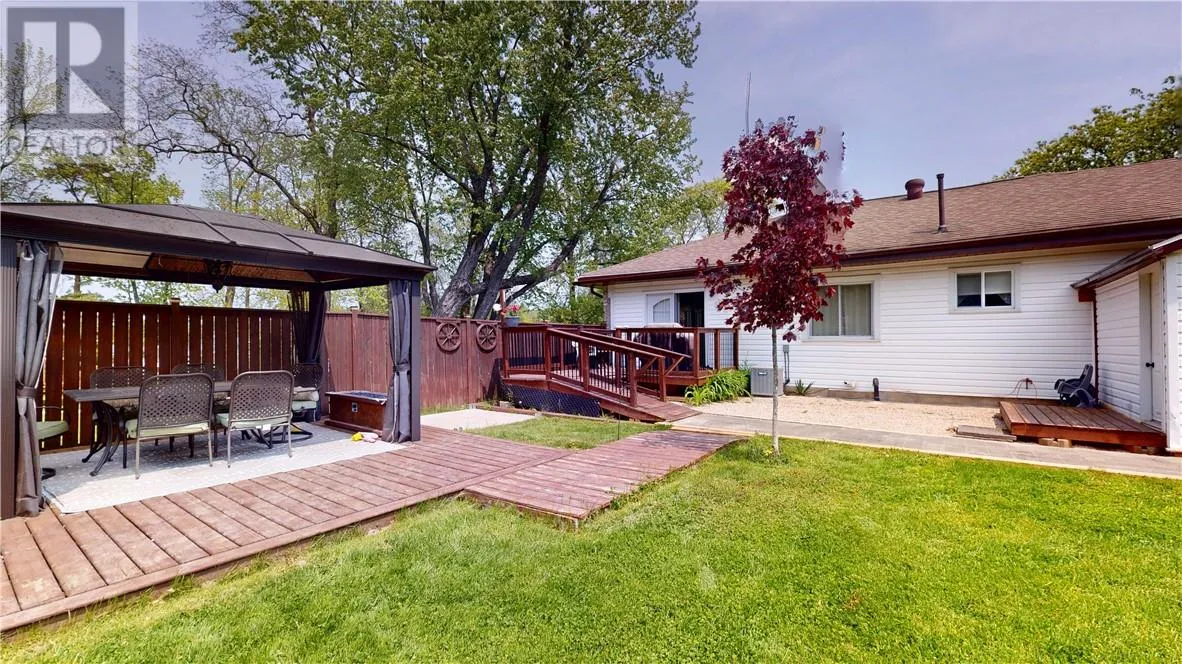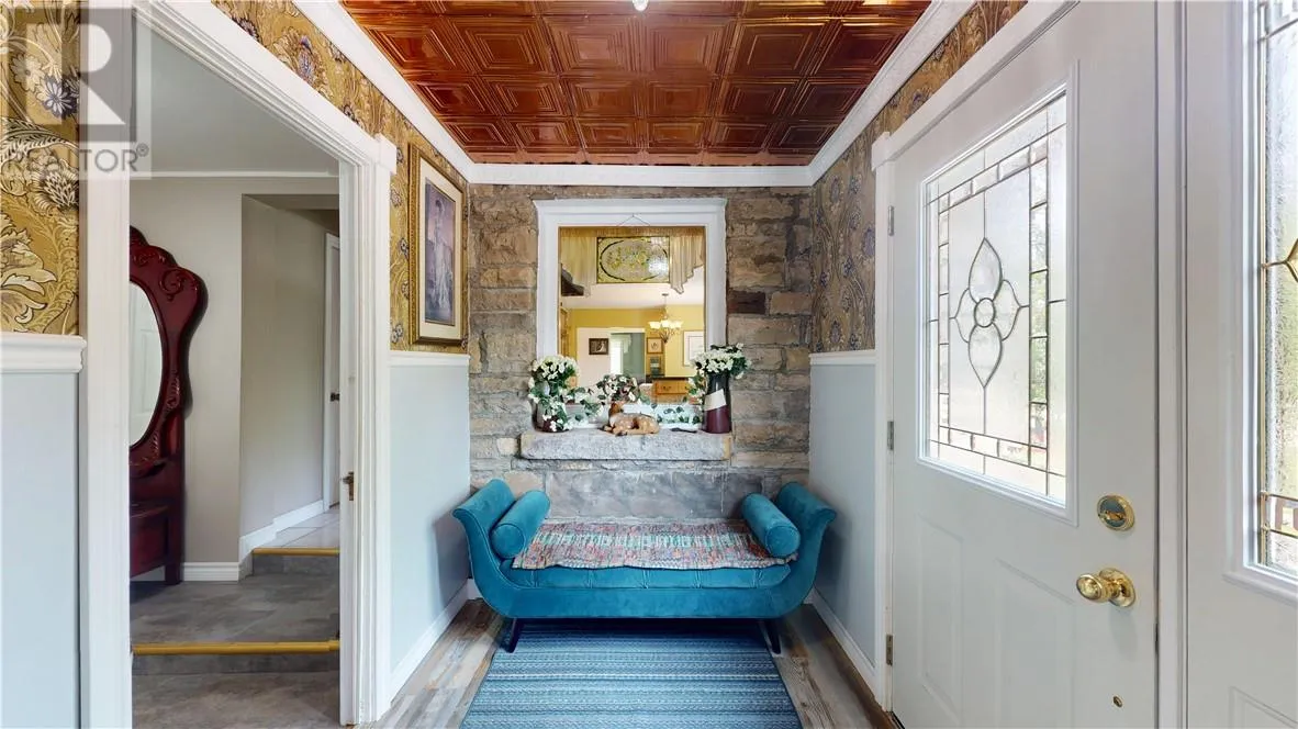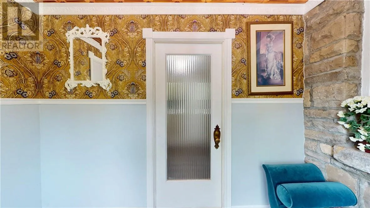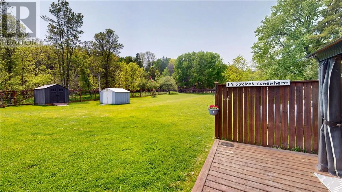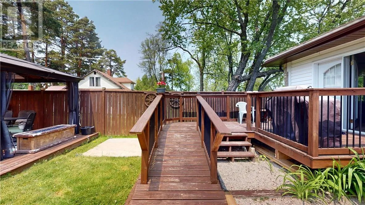 This unique stone bungalow, combined with the stone landscaping, and flower gardens gives this property an amazing curb appeal. It is located on a large town lot within easy walking distance to downtown amenities and the local marina. The stone exterior is from the famous Casa Loma castle in Toronto, and the fireplace mantle is an old organ top also from Casa Loma. The fireplace place is the center piece of the large 15 ft. x 31 ft. living room. The basement is unfinished, and offers lot of space for storage, hobbies, and easy access to the mechanicals. Patio doors from the living room lead to a very private back deck. The back yard is totally fenced and there is also a patio with a gazebo. (id:27476)
