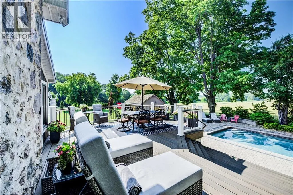 From Listowel: Highway 23 North to Line 89. Turn left on Line 89 Why live in a typical home when you can live in an historical school house? Discover your country dream home just outside Listowel! This meticulously restored stone school house features a beautifully renovated, updated space and property with views for miles. Step inside to find a bright and airy main floor featuring a spacious kitchen, including a large island and window seat. Carpet-free, luxury vinyl plank flooring throughout main floor. There is a main floor primary bedroom with cheater ensuite. Renovations include installation of 2 brand new staircases. On the upper floor, note two bedrooms and a second, redesigned bathroom. The main area boasts an open concept design with high open ceilings, a cozy, intimate space that is ideal for indoor entertaining. Additional finished space in newly renovated (2025) lower level including finished recreation room. A sunroom leads to a 20 x 40 composite, multi-level deck leading to a newer (2021) 16 x 32 , in-ground heated saltwater pool with Aqualink Automation System. Large shed built by Limestone Trail, and extensive interlock deck, pathway, and gardens. To note, certified septic system, well pump and suction line replaced July 2020. Furnaced replaced 2025. Newly built, heated garage 26X30 ( 2021) features 10x10 insulated doors, enough room for two cars and space for more storage. Other recent improvements include the newer Generac generator as well as the UV and RO water systems. The finished loft above the garage displays luxury vinyl plank flooring, finished wood ceilings, heat pump with back up electric baseboard, central vac. A space that can be used for anything your heart desires. Work at home? Note Wightman high speed internet with enviable speeds of 250 MBPS Down/20 MBPS Up (with up to 1 GBPS Down available). Dont miss this rare opportunity to own a beautifully renovated rural home that is just minutes to the amenities of town. Call your Realtor to book a private showing today! (id:27476)