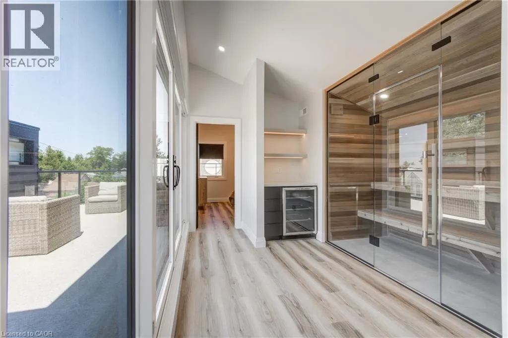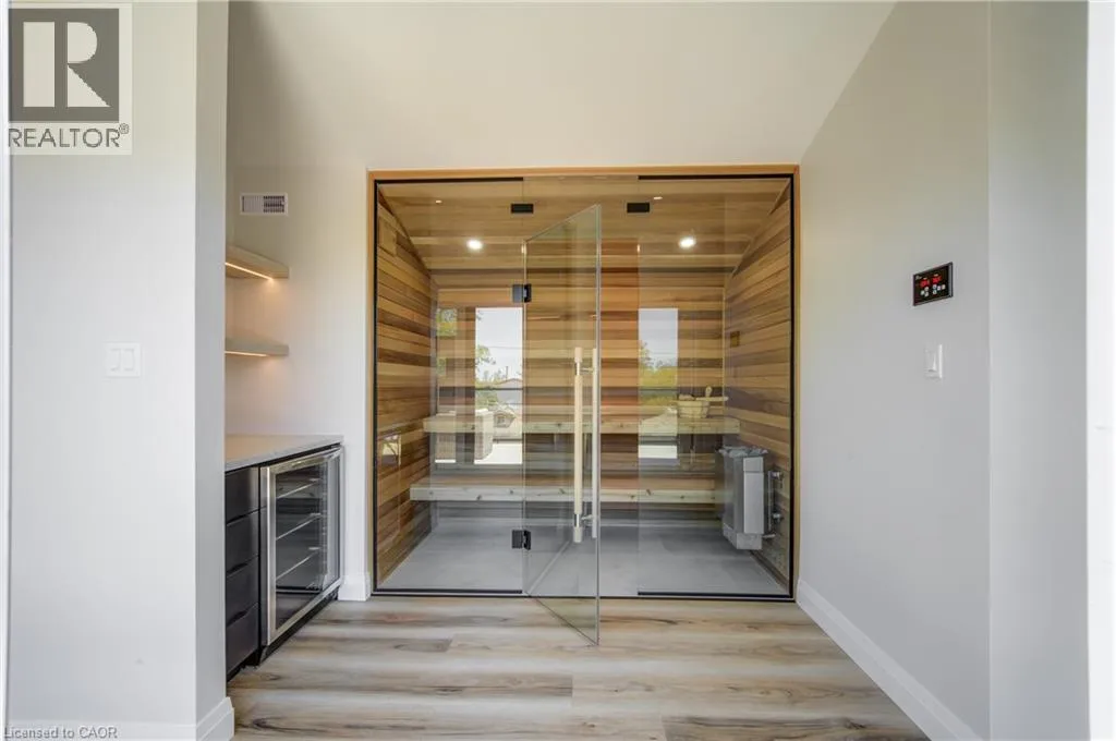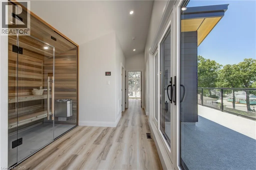 Main Street, turn right on Woodward Ave., turn left on Centre Street, property is on the right. IN-LAW SUITE!! LAKE VIEW!! This exceptional 3-storey residence, ideally located just steps from Grand Bend's renowned Main Beach, seamlessly combines contemporary design with unparalleled luxury. The open concept main floor features a chef's kitchen with quartz countertops, a bright and airy 2-storey living room, dining area, and a 2-piece powder room. On the second floor, the spacious primary suite offers a serene retreat with a spa-like 4-piece ensuite and walk-in closet, while a second generously sized bedroom, a 3-piece bath, and a convenient laundry room complete this level. The third floor is a spectacular haven for both relaxation and entertaining, boasting two additional bedrooms, a beautifully appointed 4-piece bath, bar, sauna with glass doors and sliders leading to a breathtaking rooftop deck. Enjoy the warmth of the double-sided outdoor gas fireplace and hot tub, while taking in beautiful lake views and unforgettable sunsets. The lower level features a private fully finished in-law suite with its own entrance, kitchen, cozy living room, bedroom, and a 4-piece bathâconnected to the main house yet offering a separate entrance for added privacy and versatility. Outside, an interlock driveway (parking for 5), inviting backyard patio, and low-maintenance landscaping complete this exquisite property. With its perfect blend of luxury, functionality, and proximity to the Main Beach, this exceptional home offers an unparalleled lifestyle in the heart of Grand Bend. Your DREAM HOME awaits! (id:27476)