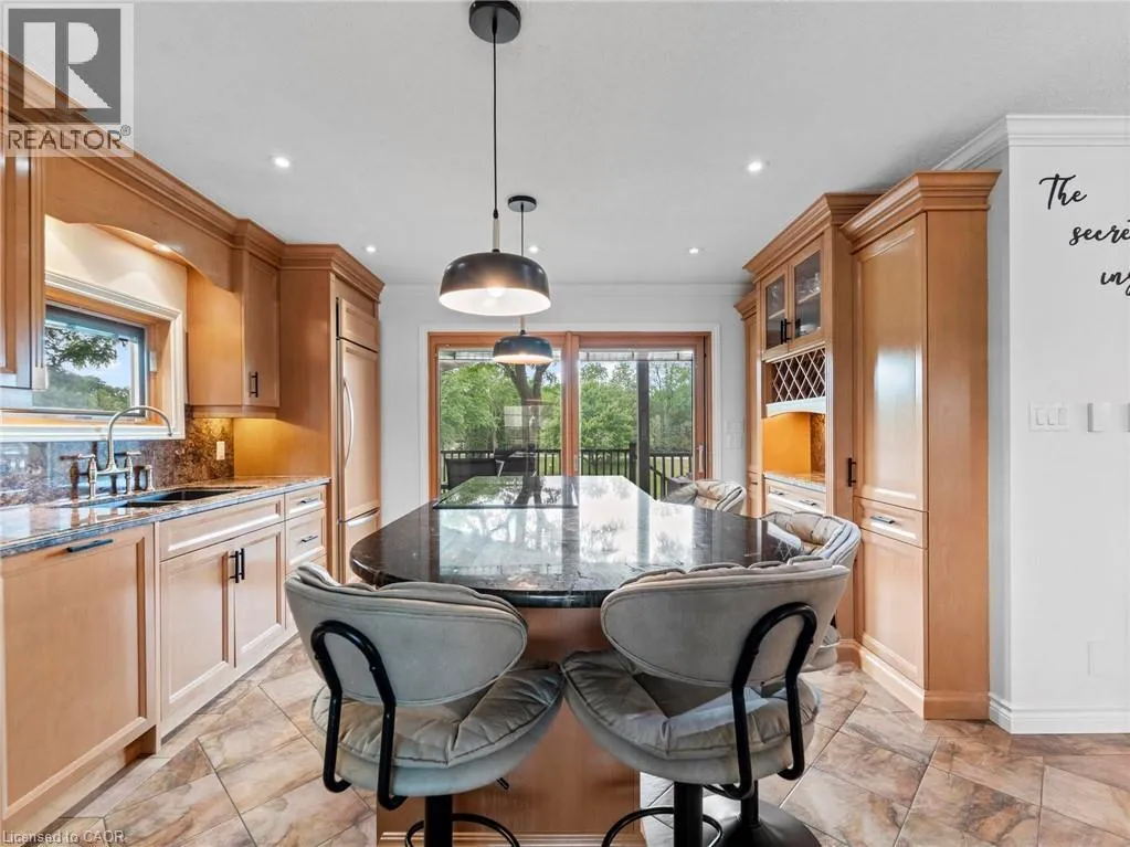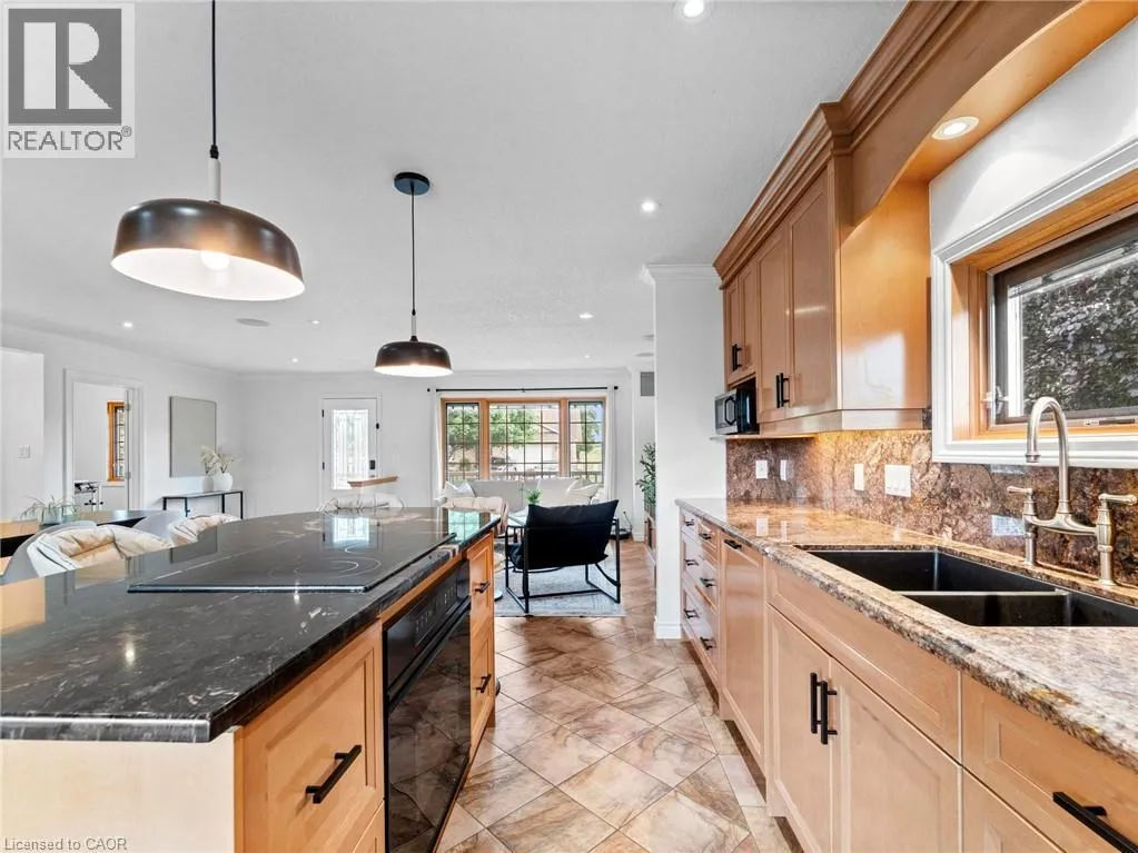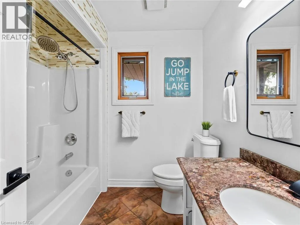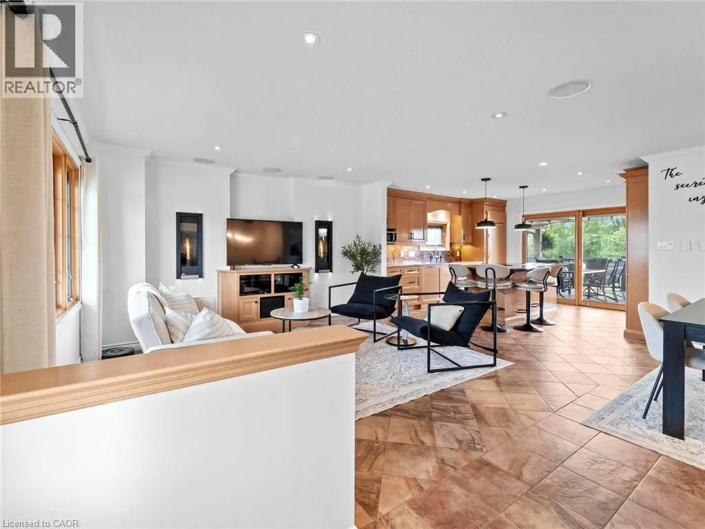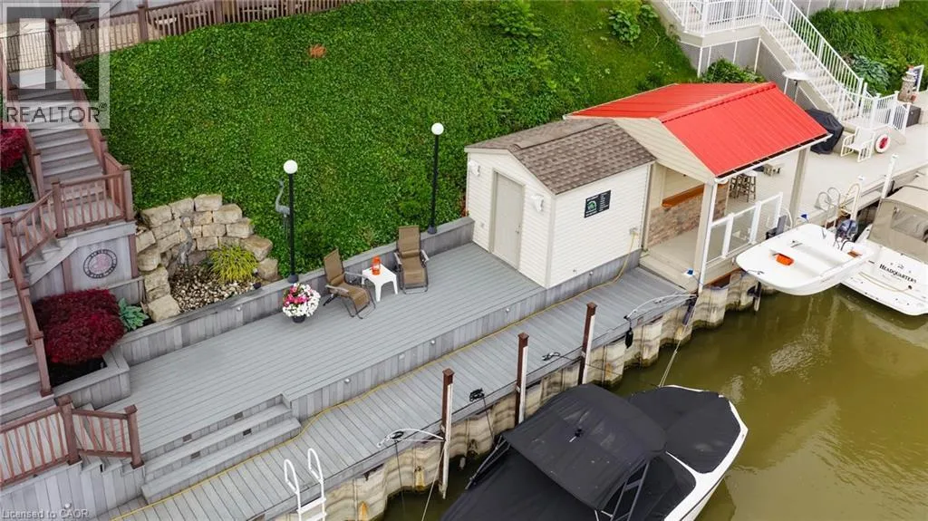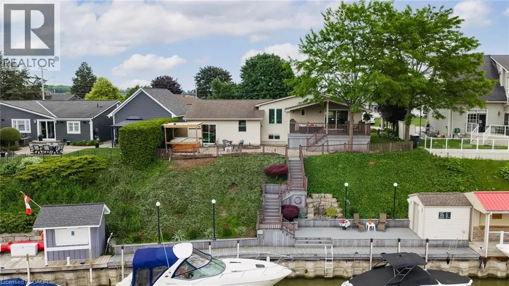 Main Street East to Gill Road. ATTENTION BOATERS!! This stunning 4-bedroom, 2-bathroom riverfront property in Grand Bend features a 76 ft. composite dockâperfect for your boat, jet skis, and water toys. Enjoy morning coffee and beautiful sunrises from the spacious front porch, or unwind on the large covered composite deck overlooking the river. Inside, the open-concept main floor offers modern comfort with in-floor heating, luxury kitchen appliances, Napoleon Torch gas fireplaces, and a built-in Sonos speaker system. The walk-out from the kitchen makes indoor-outdoor living seamless and ideal for entertaining. The fully updated basement boasts 3 bright bedrooms, a 3-piece bath, and a versatile rec roomâideal for yoga, a home gym, or casual relaxation. Additional features include a huge insulated attached garage, landscape lighting, irrigation system, and a hot tub with pergola for ultimate outdoor enjoyment. Located within walking distance to restaurants, grocery stores, and Grand Bendâs famous Main Beach, this home is the perfect blend of luxury, location, and lifestyle. Whether you're boating, relaxing, or entertainingâthis property has it all! (id:27476)