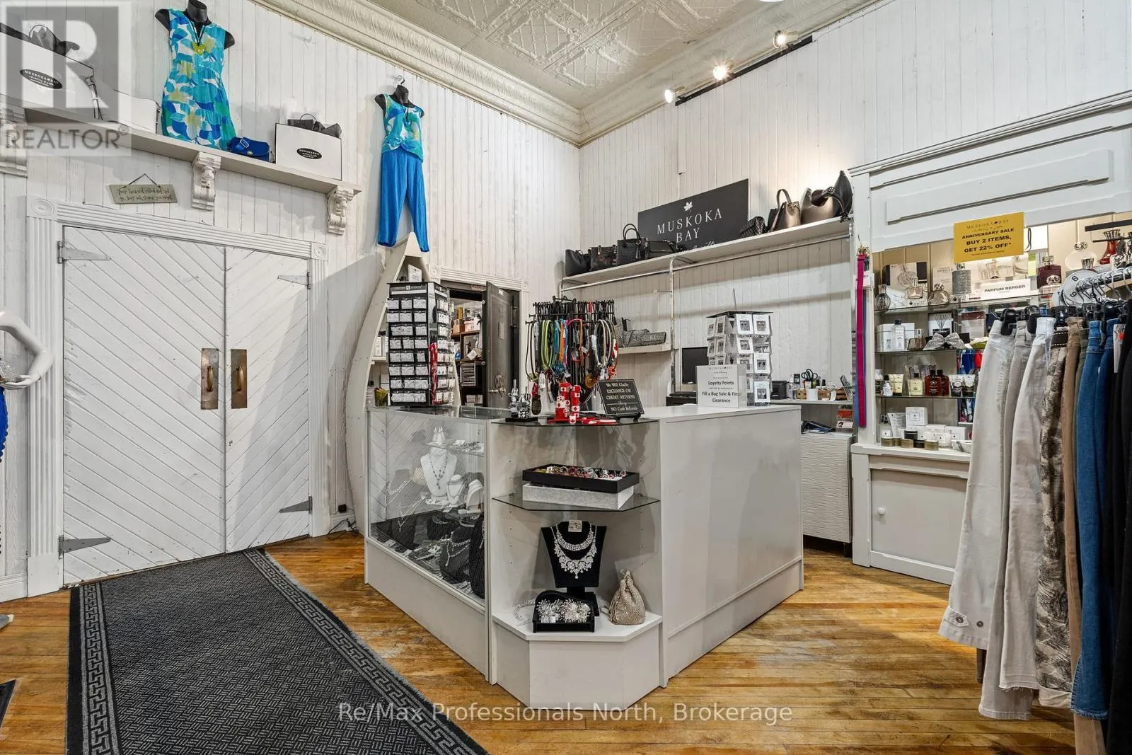 Cross Streets: Muskoka Road South & Hotchkiss Street. ** Directions: Muskoka Road South to #165. Own a piece of Gravenhurst's history with this iconic commercial building, proudly positioned in the heart of the town's charming and walkable historic downtown. Home to fine retail for over 50 years, this beautifully preserved property offers a rare blend of old-world character and thoughtful modern updates, an ideal opportunity for investors or entrepreneurs seeking a premier Muskoka location. Inside, you'll be greeted by original tin ceilings that showcase the craftsmanship and elegance of a bygone era. The space has been tastefully modernized while maintaining its architectural integrity, offering a turnkey environment ready to support the next chapter of success. Practical features complement the building's charm, including a newer furnace, generous basement storage ideal for inventory or operations, and rare private parking at the rear of the building, an invaluable convenience in a downtown setting. Surrounded by boutique shops, galleries, cafés, and cultural landmarks, this high-visibility location benefits from strong foot traffic year-round. It's a well-known destination for both locals and visitors from across Muskoka, making it perfectly suited to continue its proud retail legacy, or serve as the launchpad for something entirely new. This is more than a building, it's a cornerstone of downtown Gravenhurst and a rare opportunity to own a part of its enduring story. (id:27476)