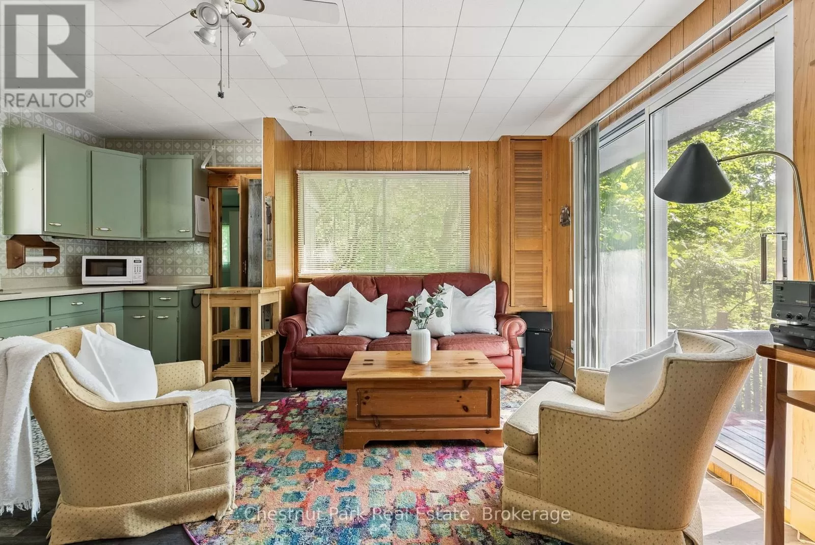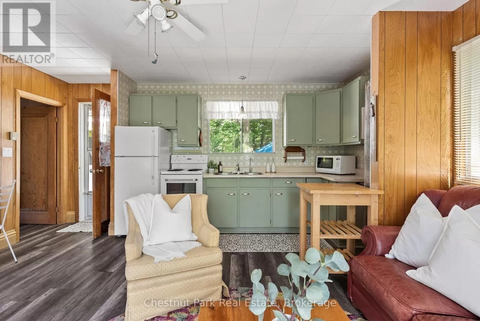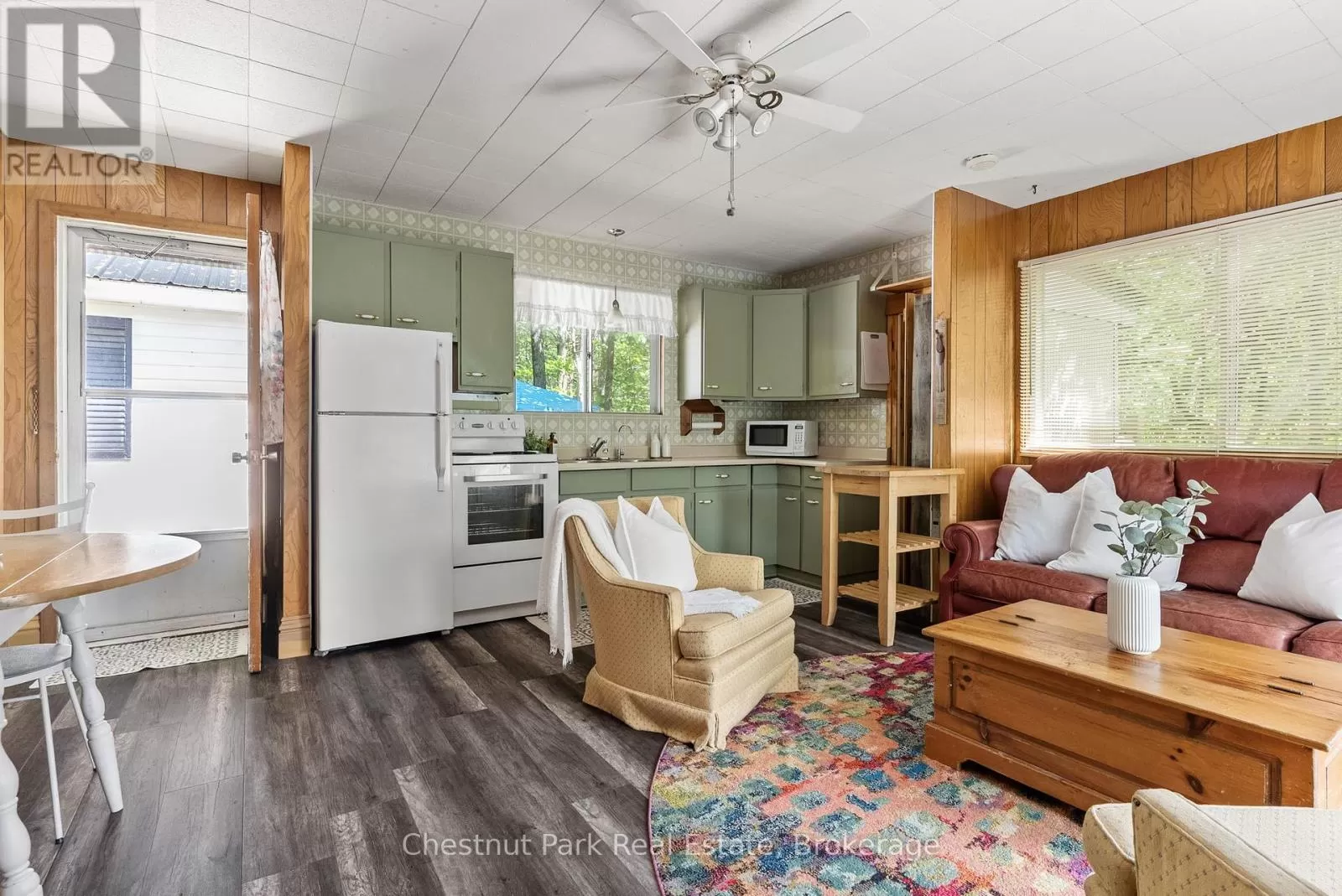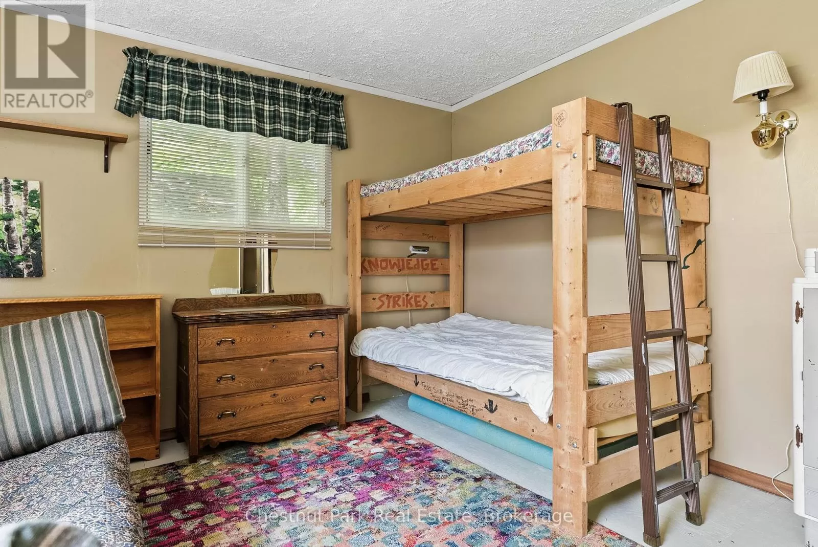 Cross Streets: N Kahshe Lake Rd & Nagaya Drive. ** Directions: Hwy 11 N to North Kahshe Lake Road to 1185B N Kahshe Lake Road (SOP), mutual shared driveway, property at the end of driveway. Welcome to your perfect Muskoka getaway! Nestled in the heart of the Kahshe Lake community, this delightful turnkey 2-bedroom seasonal cottage plus a bonus bunkie is just a hop, skip and a jump from the beautiful sandy shores of Nagaya Beach. Set on a peaceful off-water lot, this cozy retreat offers the best of cottage life without the waterfront price tag. Inside, enjoy a bright and airy living space, a functional kitchen, and two comfortable bedrooms. The detached bunkie provides extra room for guests or kids - complete with a new roof (2019) for peace of mind. Several key updates make this property move-in ready and worry-free, including a drilled well with heated line (2020), a new holding tank (2020), and year-round access. Whether you are relaxing on the deck, gathering around the fire pit, or strolling down to the beach for a swim or paddle, this property invites you to slow down and soak up cottage country charm. This is your chance to own an affordable escape in one of Muskoka's most welcoming lake communities. (id:27476)