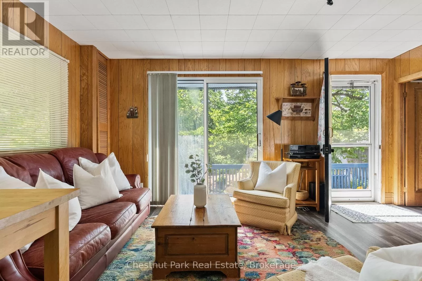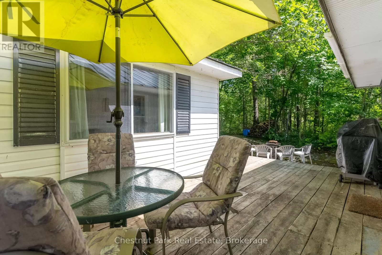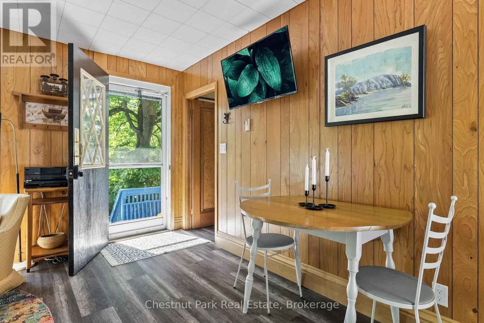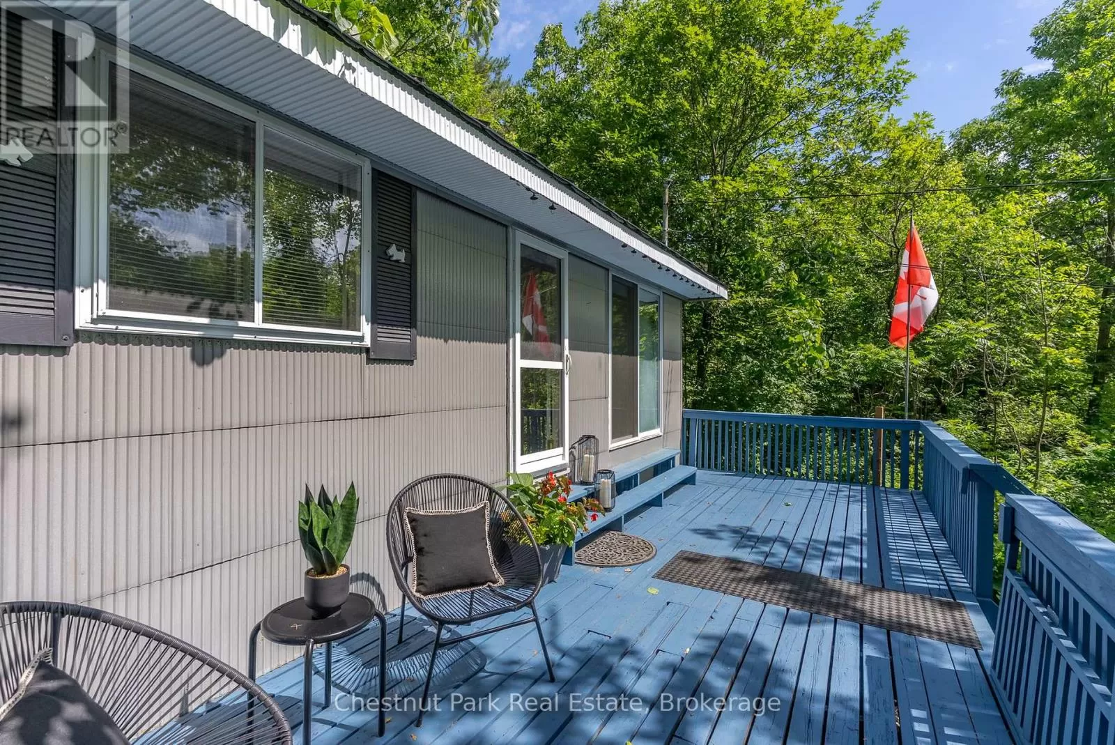 Cross Streets: N Kahshe Lake Rd & Nagaya Drive. ** Directions: Hwy 11 N to North Kahshe Lake Road to 1185B N Kahshe Lake Road (SOP), mutual shared driveway, property at the end of driveway. Welcome to your perfect Muskoka getaway! Nestled in the heart of the Kahshe Lake community, this delightful turnkey 2-bedroom seasonal cottage plus a bonus bunkie is just a hop, skip and a jump from the beautiful sandy shores of Nagaya Beach. Set on a peaceful off-water lot, this cozy retreat offers the best of cottage life without the waterfront price tag. Inside, enjoy a bright and airy living space, a functional kitchen, and two comfortable bedrooms. The detached bunkie provides extra room for guests or kids - complete with a new roof (2019) for peace of mind. Several key updates make this property move-in ready and worry-free, including a drilled well with heated line (2020), a new holding tank (2020), and year-round access. Whether you are relaxing on the deck, gathering around the fire pit, or strolling down to the beach for a swim or paddle, this property invites you to slow down and soak up cottage country charm. This is your chance to own an affordable escape in one of Muskoka's most welcoming lake communities. (id:27476)