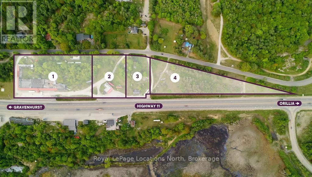 Cross Streets: Highway 11 and Beaver Ridge Rd. ** Directions: North on Highway 11, just south of Gravenhurst. Rare opportunity to acquire a high-visibility highway retail location with a strong track record of consumer salesThis property is one of four individual parcels, ideally offered as part of a four-parcel assembly. Together, the properties provide nearly 2,000 feet of frontage with direct northbound access on Highway 11, just south of the Town of Gravenhurst and backing onto Beaver Ridge Road.Rich in Muskoka history, the assembly includes the original Muskoka Store also known as Walter Pages. Zoned C-3 (Commercial Highway / Retail), the site is ideally suited for a variety of commercial uses, including boat showrooms, custom home builders, prefab housing, food retail, and national chains.. The site enjoys steady year-round traffic, outstanding exposure, and a strategic position that blends commercial potential with Muskoka's unique character. Well-situated to capture both local and seasonal business, the property supports a broad range of uses in one of Canadas most iconic recreational destinations. Exceptional Commercial Land Assembly on Prime Highway 11 in the Heart of Muskoka. (id:27476)