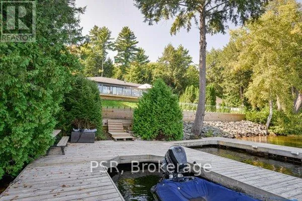 Cross Streets: Parkers Point & Eppy Lane. ** Directions: HWY 169 TO PARKERS POINT RD TO EPPY LANE. FOLLOW ARROWS TO 1018 GEORGINA WAY #1. Welcome to your year-round Muskoka retreat! Located just 10 minutes from Gravenhurst and only 5 minutes from the wharf and Muskoka Bay Golf Course, this fully renovated, four-season cottage offers 100 feet of prime Lake Muskoka shoreline with wide-open views of Muskoka Bay. Set on a deep, landscaped 100x280 ft lot, the property features a 3-bedroom, 2-bathroom cottage that was fully gutted and renovated in 2019/2020. Designed for modern comfort, the interior showcases a custom kitchen with quartz countertops, black stainless steel KitchenAid appliances, and a spacious lakeside living area. Both bathrooms offer stylish finishes, including a double sink vanity in the ensuite.The exterior is equally impressive: a large 10x60 ft waterfront deck with glass railings provides unobstructed lake views, while the 2-slip crib dock accommodates up to 3 boats and 2 Sea-Doos, with 57 feet of water depth off the dock. Landscaped grounds include privacy trees, a new front walkway, and a stocked firewood shed. An elevated, flat grassy play area at the waterfront, enclosed by postless glass for safety and views, is ideal for recreation. A 500 sq. ft. deck off the cottage connects seamlessly to this outdoor space, creating the perfect setting for entertaining and family fun.Practical upgrades include propane forced air heating, central A/C, a Generac generator, heated waterline from the lake, and full water filtration. With a spacious dock and deep-water swimming, this property offers the ultimate Muskoka lifestyle in a prime location. Just minutes to town, enjoy effortless access to everything while living lakeside on coveted Lake Muskoka. An exceptional opportunity to own a fully turnkey cottage in one of Muskokas most sought-after areas. (id:27476)