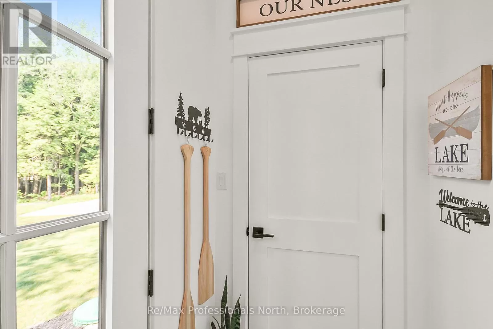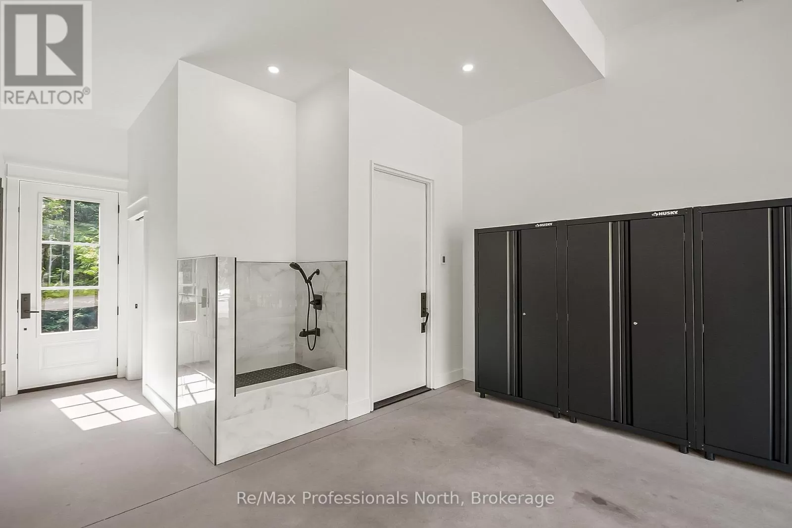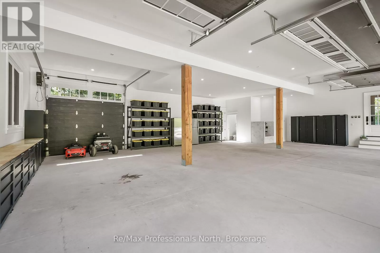 Muskoka beach road and Brydons bay road This property was originally Mr. Brydon's property of Brydon's bay! This developer's dream consists of R2 zoning with full municipal services: water, sewer, natural gas and fiber run down your 600' private driveway, very gradual 1.33 acre lot with 270' curved (200' straight line frontage) with coveted NW sunset views and long lake views out the bay. Shallow clean sandy waterfront excellent for pets and people of all ages. Site plan approved for a large attached 5350sqft 2 storey main cottage with 5 bedrooms and 8 additional bathrooms, partially approved and proposed triple boathouse with 2nd storey deck and storage, as well as much more lot coverage available for sports courts, additional storage garages etc. The large luxurious carriage house completed in 2023 is just phase 1 of this spectacular property, with enough parking for 7 cars, its approx. 32' deep and 52' wide, space to park boats and other toys, it also has a convenient dog shower, 2 piece washroom, radiant glycol heated slab and mechanical room. The back garage door was planning ahead for the future main cottage as it provides easy access to the lakeside for machines. The carriage house contains 3 bedrooms and 2 bathrooms upstairs with 9' ceilings throughout, vaulted great room with wood beams, granite floor to ceiling fireplace, decorative shiplap, extensive built in cabinets, very large kitchen and island for entertaining, heated with a high end boiler system and natural gas the efficiency is unlike most cottages. Heated floors in the entrance and bathrooms, glass tile bathtubs with the ensuite having a jacuzzi. Large windows let lots of natural light in at all hours of the day. Matching shed with metal roof just completed in the forested area on the way to the boathouse. The double boathouse is grandfathered and provides good docking. Low boat traffic due to land bridge next door, no neighbors to the East, just islander parking. Incredible Lake Muskoka property, make this your legacy! (id:27476)
