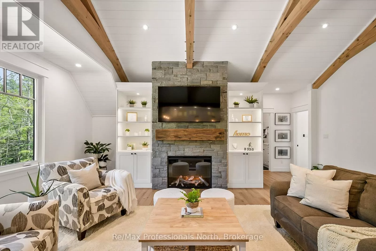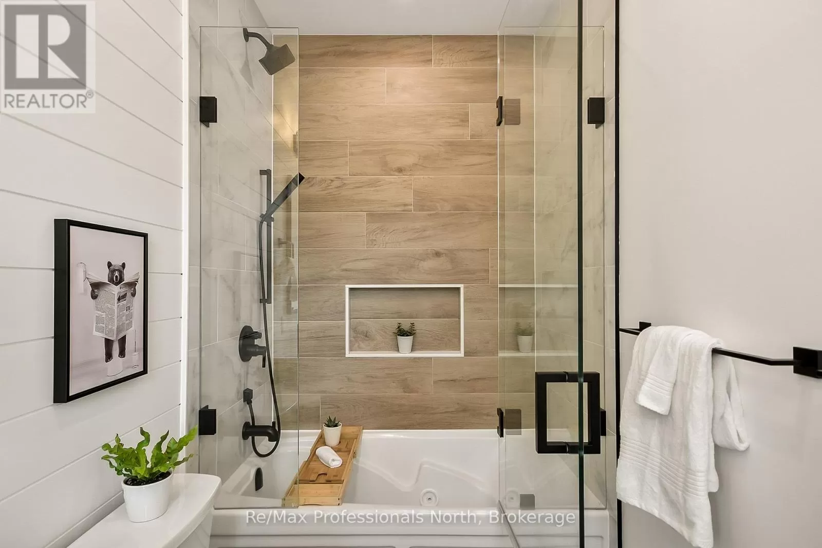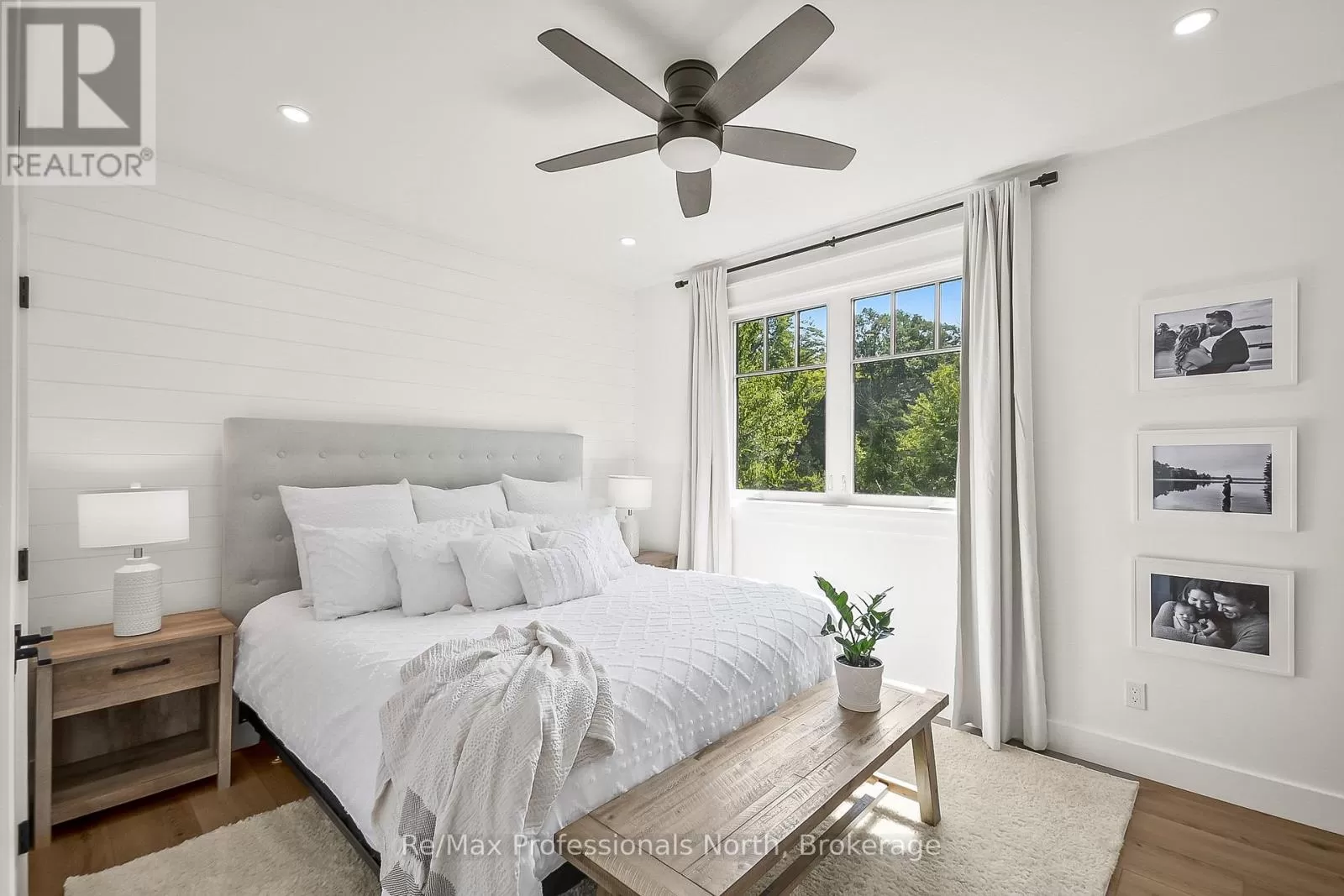 Muskoka beach road and Brydons bay road This property was originally Mr. Brydon's property of Brydon's bay! This developer's dream consists of R2 zoning with full municipal services: water, sewer, natural gas and fiber run down your 600' private driveway, very gradual 1.33 acre lot with 270' curved (200' straight line frontage) with coveted NW sunset views and long lake views out the bay. Shallow clean sandy waterfront excellent for pets and people of all ages. Site plan approved for a large attached 5350sqft 2 storey main cottage with 5 bedrooms and 8 additional bathrooms, partially approved and proposed triple boathouse with 2nd storey deck and storage, as well as much more lot coverage available for sports courts, additional storage garages etc. The large luxurious carriage house completed in 2023 is just phase 1 of this spectacular property, with enough parking for 7 cars, its approx. 32' deep and 52' wide, space to park boats and other toys, it also has a convenient dog shower, 2 piece washroom, radiant glycol heated slab and mechanical room. The back garage door was planning ahead for the future main cottage as it provides easy access to the lakeside for machines. The carriage house contains 3 bedrooms and 2 bathrooms upstairs with 9' ceilings throughout, vaulted great room with wood beams, granite floor to ceiling fireplace, decorative shiplap, extensive built in cabinets, very large kitchen and island for entertaining, heated with a high end boiler system and natural gas the efficiency is unlike most cottages. Heated floors in the entrance and bathrooms, glass tile bathtubs with the ensuite having a jacuzzi. Large windows let lots of natural light in at all hours of the day. Matching shed with metal roof just completed in the forested area on the way to the boathouse. The double boathouse is grandfathered and provides good docking. Low boat traffic due to land bridge next door, no neighbors to the East, just islander parking. Incredible Lake Muskoka property, make this your legacy! (id:27476)