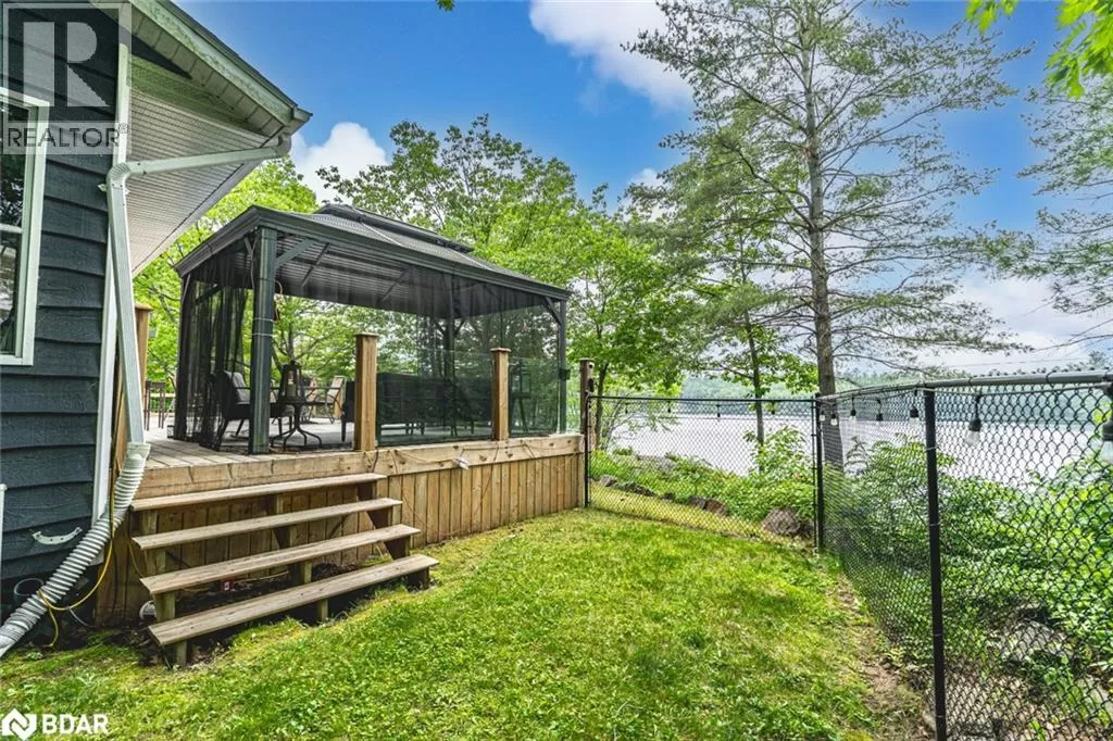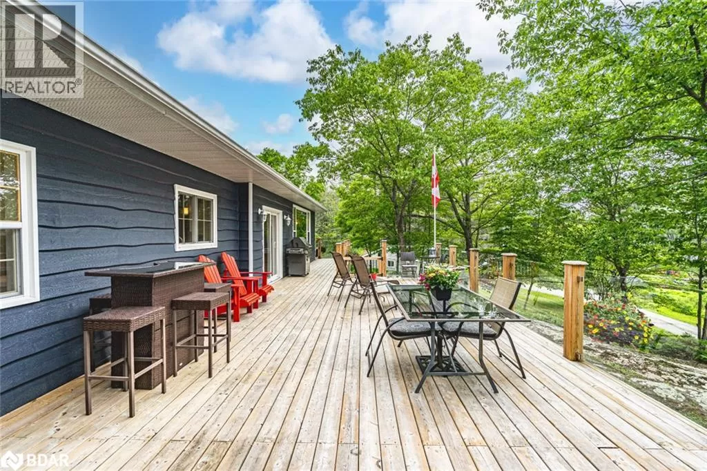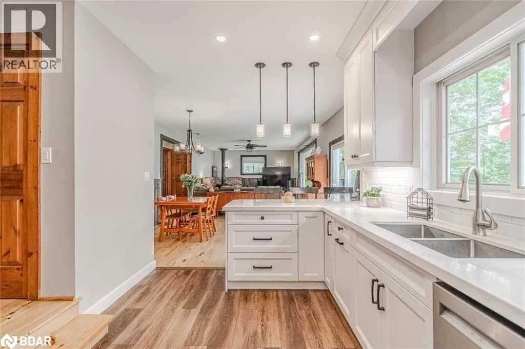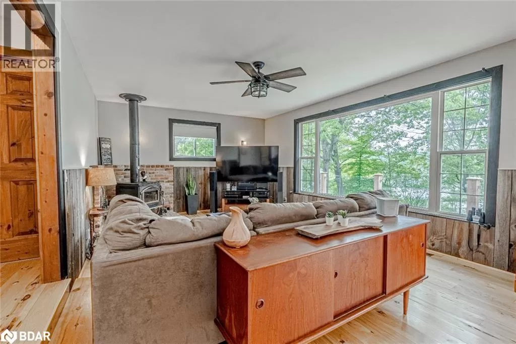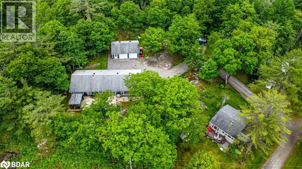 Southwood Rd/S Morrison Lake Rd/Cove Rd BOLD LAKESIDE BEAUTY WITH A SEPARATE SLEEPING CABIN, WATERFRONT DOCK & HEATED DETACHED GARAGE/SHOP! Perched in a coveted enclave overlooking the sparkling waters of Morrison Lake, this vibrant year-round retreat delivers everything you could want in a lakeside escape. The main home boasts character and functionality, featuring a bright, open layout with massive windows that capture serene lake views and flood the space with natural light. A show-stopping, fully remodelled kitchen steals the spotlight with sleek quartz counters, crisp white shaker cabinets, stainless steel appliances, subway tile backsplash, and a walk-in pantry, all crowned by stylish pendant lighting. The spacious living area offers a cozy wood stove, a massive window framing the lake, and a seamless connection to the dining room, perfect for entertaining or unwinding with a view. Three generously sized bedrooms, a well-appointed four-piece bath, and a warm, window-wrapped Muskoka room that brings in forest views and natural light complete the main home. Step outside to the expansive deck with updated glass panel railings and a covered gazebo, an entertainerâs dream with front-row seats to lakeside sunsets. Down by the water, a large dock with a floating swim platform invites endless summer fun. Need more space? A private sleeping cabin offers approx. 671 sq ft of additional comfort, with two bedrooms, 3 pc bathroom, wood stove, hydro, 60 amp panel, and its own front deck with stunning lake views. The detached double garage/shop is fully insulated, propane-heated and ready for projects, parking, or toys. With a gravel driveway, low-maintenance landscaping, three sheds, a fenced dog run, an outhouse and a 10kW generator powering most of the property, this one-of-a-kind lakeside package is ready to impress. (id:27476)