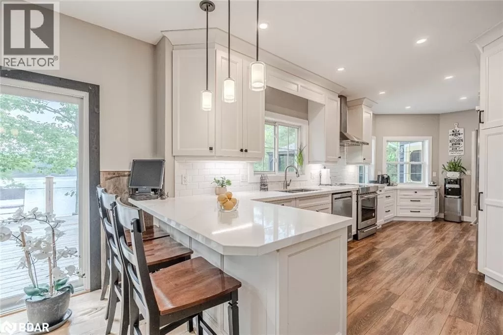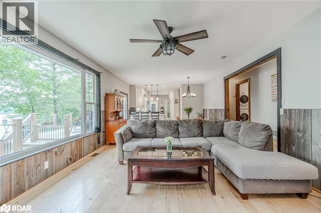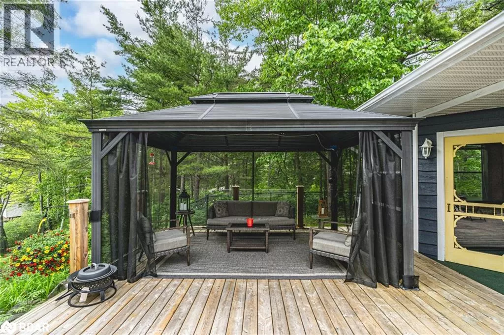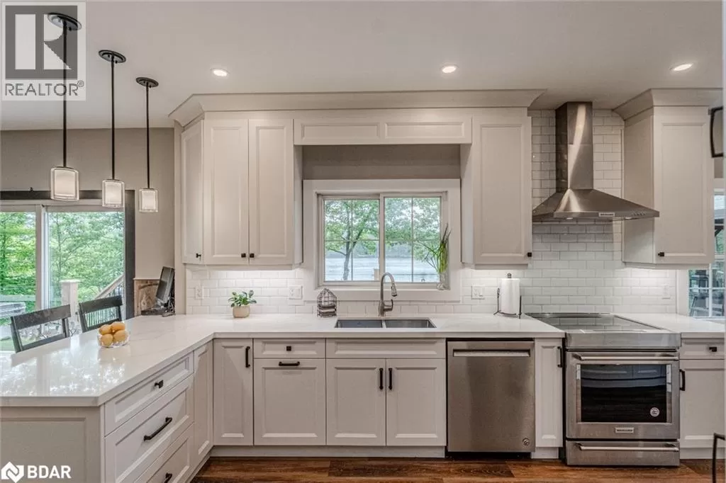 Southwood Rd/S Morrison Lake Rd/Cove Rd BOLD LAKESIDE BEAUTY WITH A SEPARATE SLEEPING CABIN, WATERFRONT DOCK & HEATED DETACHED GARAGE/SHOP! Perched in a coveted enclave overlooking the sparkling waters of Morrison Lake, this vibrant year-round retreat delivers everything you could want in a lakeside escape. The main home boasts character and functionality, featuring a bright, open layout with massive windows that capture serene lake views and flood the space with natural light. A show-stopping, fully remodelled kitchen steals the spotlight with sleek quartz counters, crisp white shaker cabinets, stainless steel appliances, subway tile backsplash, and a walk-in pantry, all crowned by stylish pendant lighting. The spacious living area offers a cozy wood stove, a massive window framing the lake, and a seamless connection to the dining room, perfect for entertaining or unwinding with a view. Three generously sized bedrooms, a well-appointed four-piece bath, and a warm, window-wrapped Muskoka room that brings in forest views and natural light complete the main home. Step outside to the expansive deck with updated glass panel railings and a covered gazebo, an entertainerâs dream with front-row seats to lakeside sunsets. Down by the water, a large dock with a floating swim platform invites endless summer fun. Need more space? A private sleeping cabin offers approx. 671 sq ft of additional comfort, with two bedrooms, 3 pc bathroom, wood stove, hydro, 60 amp panel, and its own front deck with stunning lake views. The detached double garage/shop is fully insulated, propane-heated and ready for projects, parking, or toys. With a gravel driveway, low-maintenance landscaping, three sheds, a fenced dog run, an outhouse and a 10kW generator powering most of the property, this one-of-a-kind lakeside package is ready to impress. (id:27476)