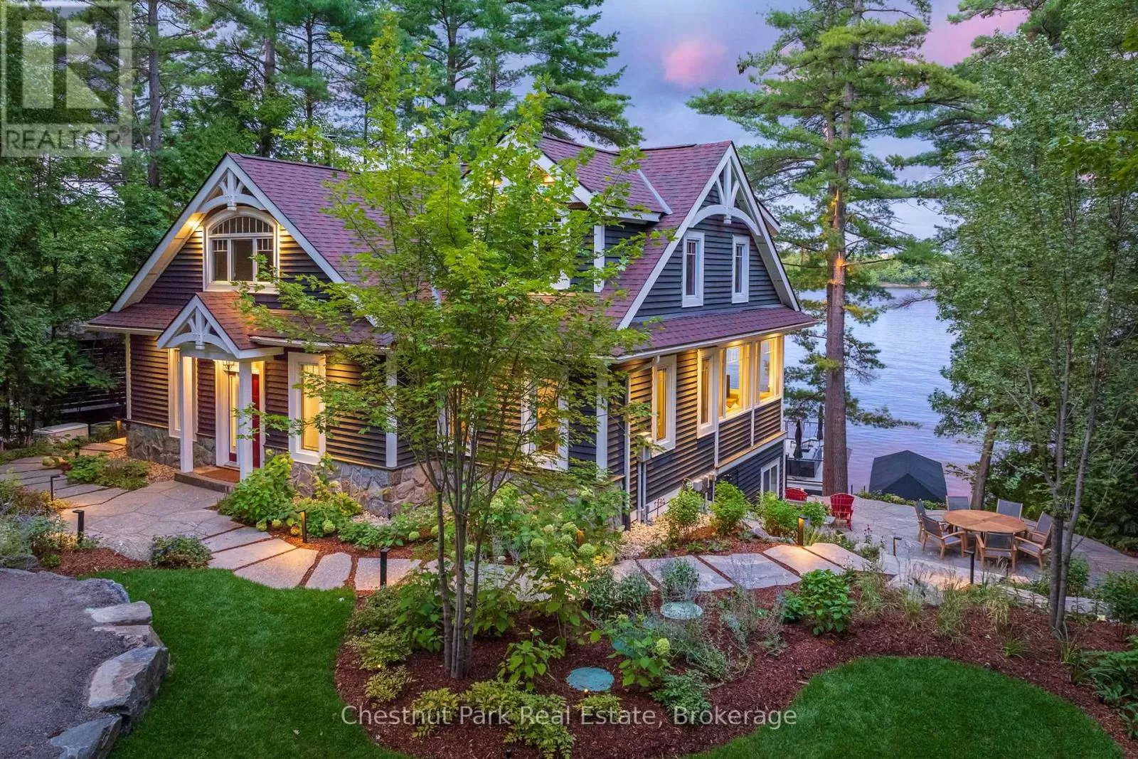 Cross Streets: Parkers Point & 3300 Road. ** Directions: Take Parkers Point from HWY 169 to Rd 3300 to #1026. Welcome to Autumn's Perfect Package ~ A Lake Muskoka Masterpiece! Experience timeless elegance in this meticulously crafted, year-round lakefront retreat, where no detail has been overlooked. Set just 90 minutes from the GTA, this fully furnished 4+ bedroom, 4 bathroom property invites you to embrace the quintessential Muskoka lifestyle from the moment you arrive.Thoughtfully designed for effortless living and entertaining, the open-concept kitchen and living area flow seamlessly into a beautifully heated Muskoka room - the perfect spot to unwind & appreciate the stunning surroundings. Step onto the expansive deck for sunrise coffee, then head down to the single-slip boathouse with an upper-level entertaining deck, where deep, clean water awaits for swimming, boating, and lakeside lounging. Spend your days exploring Muskoka's iconic "Big Three" lakes by boat, then return for cocktails on the dock or al fresco dining in your professionally landscaped garden oasis - the result of a $400K+ landscaping transformation. Flagstone patios, lush gardens, an outdoor dining area, and a cozy fire pit landing set the stage for unforgettable evenings under the stars. Inside, the cottage exudes understated luxury and warm sophistication, offering spacious bedrooms, plus a stylish teen hangout/media room with bunks, and a convenient 2-piece bath on the lower level. Additional recent upgrades include a new furnace, roof, irrigation system, and landscape lighting. Perfectly positioned close to the award-winning Gravenhurst Farmers Market, Muskoka Bay Resort golf, fine dining, & shopping - all just minutes away by boat or car - this property delivers on every level: prime location, stunning views, modern comforts, and the relaxed luxury Muskoka is known for. If you've been waiting for a beautifully built, turn-key lakefront home on the big lakes with exceptional curb appeal, pristine waterfront, and seamless city access - your Muskoka dream is here. (id:27476)