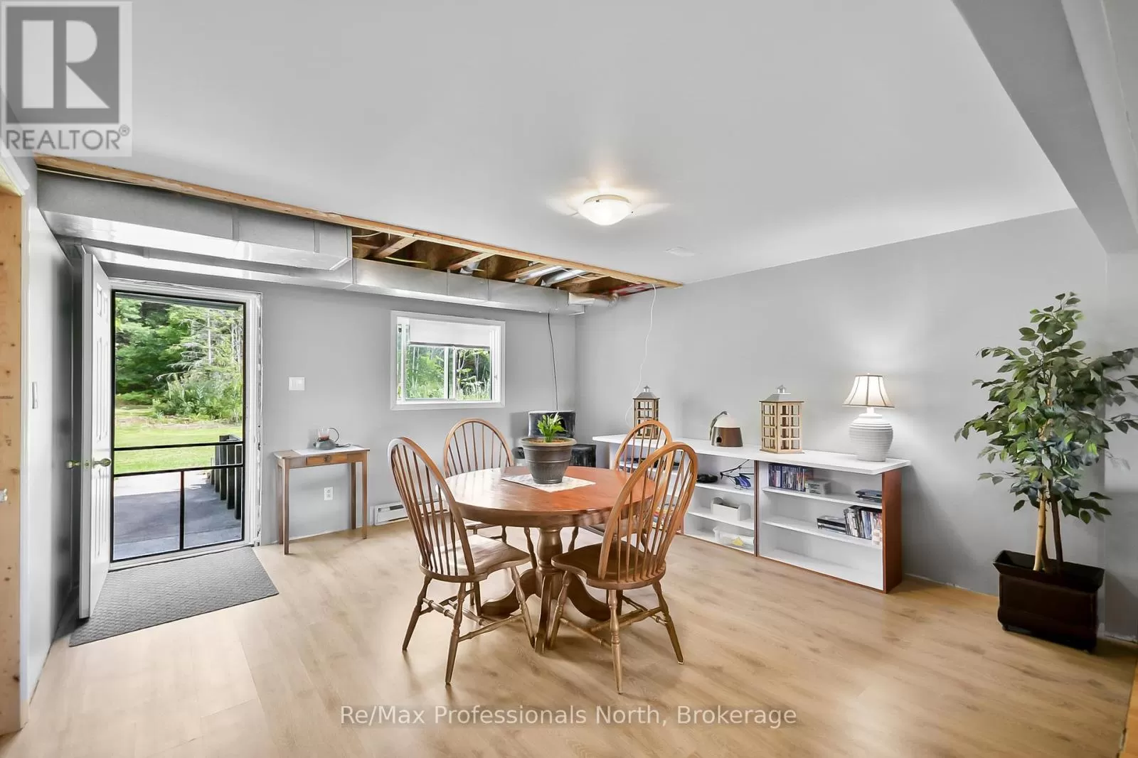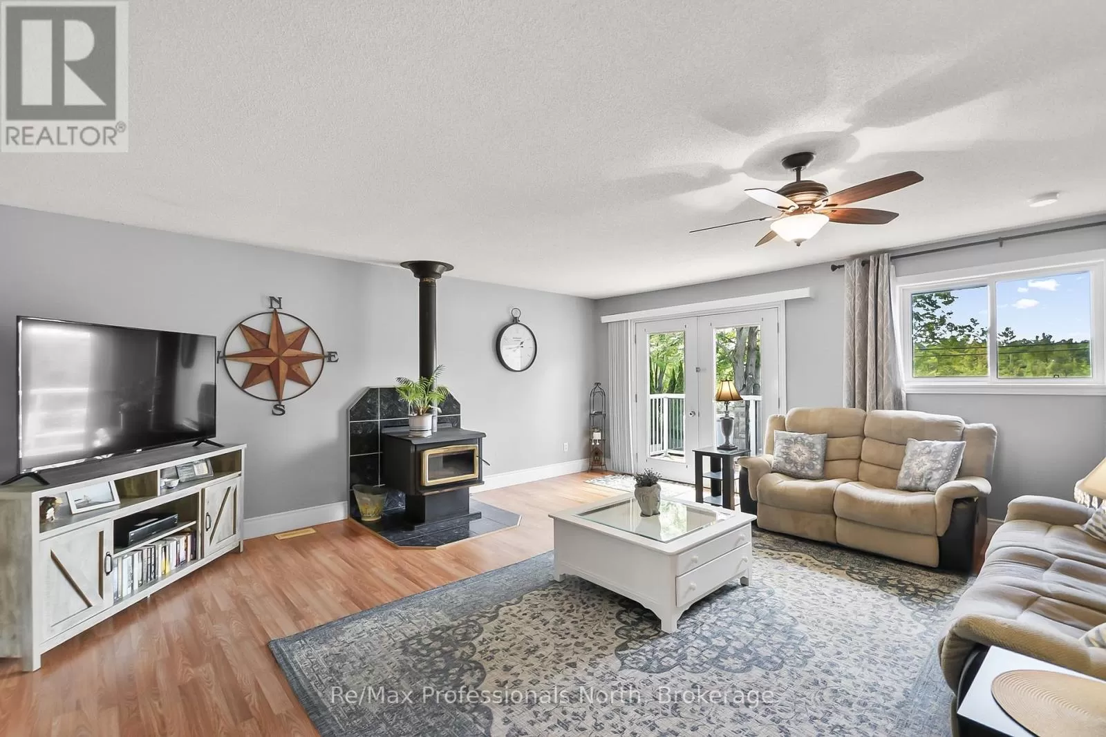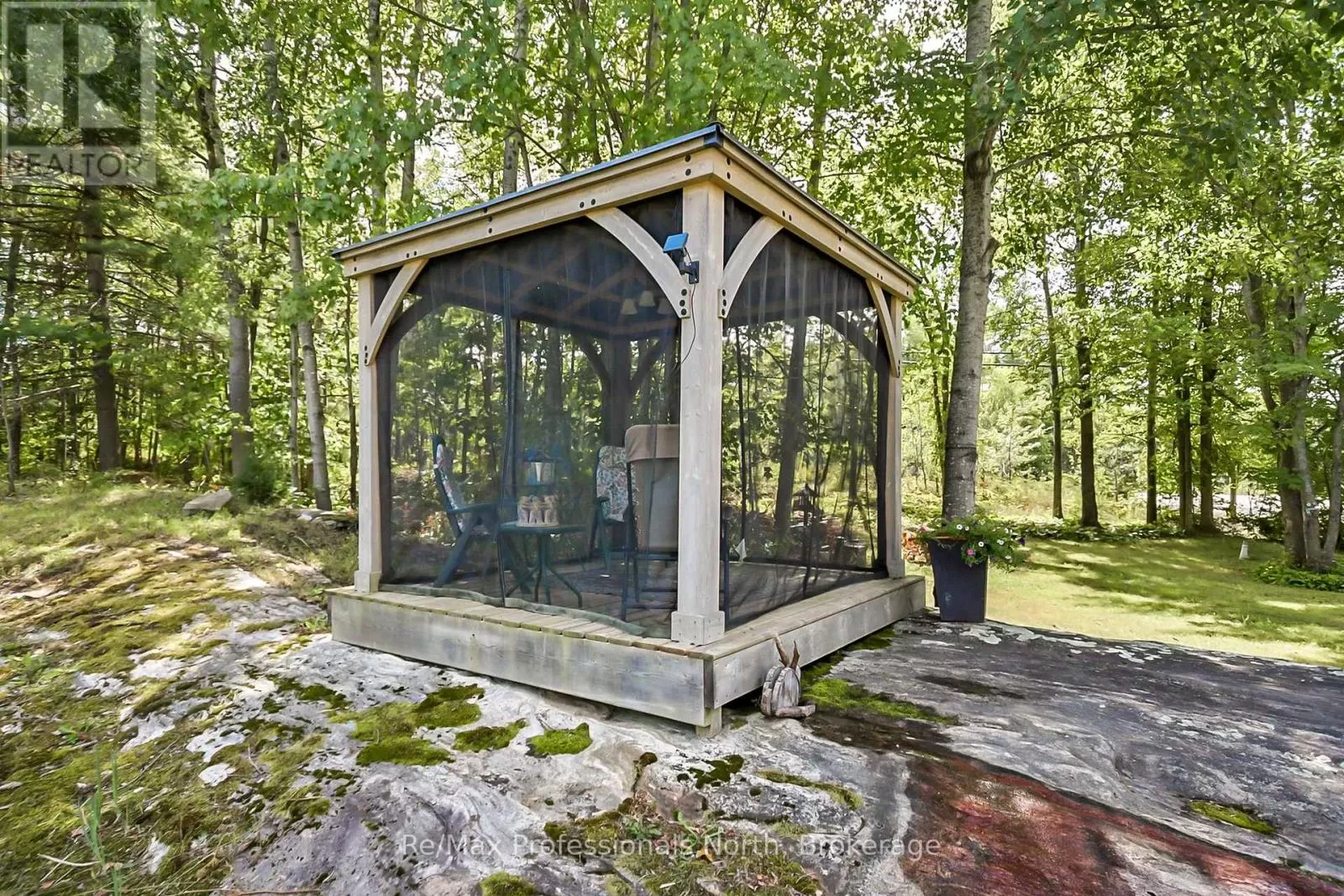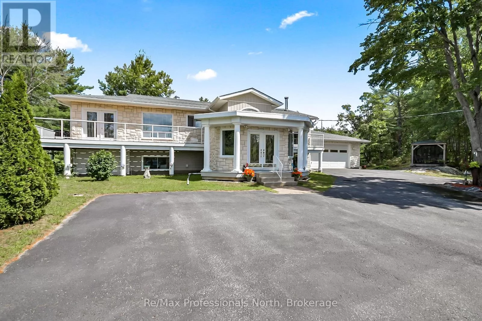 Highway 169 to 1244 S.O.P Welcome to this beautiful 2,800 sq. ft. raised bungalow set on over 3 acres just minutes from Gravenhurst. This property offers the perfect blend of privacy, space, and functionality with a fully finished walkout basement and double attached garage. Step inside the impressive foyer with abundant storage and access to both the main and lower levels. The main floor features a spacious living room with a cozy wood-burning fireplace and a walkout to a deck overlooking the front yard. An open-concept kitchen, dining, and sitting area showcase panoramic views of nature - perfect for morning coffee or entertaining. Three generous bedrooms and a well-appointed 4-piece bathroom with ample storage complete the main level. The bright walkout basement expands your living space with two additional bedrooms, including one with a walk-in closet, plus a large recreation room ideal for family movie nights, games, or a pool table. With its separate entrance, this level offers excellent potential for an in-law suite. Enjoy warm summer evenings in the screened-in gazebo, a peaceful retreat free from pesky bugs, or relax on the deck while soaking in the views of your sprawling backyard. Whether you're looking for multigenerational living, space to entertain, or a quiet retreat surrounded by nature, this property delivers it all. (id:27476)