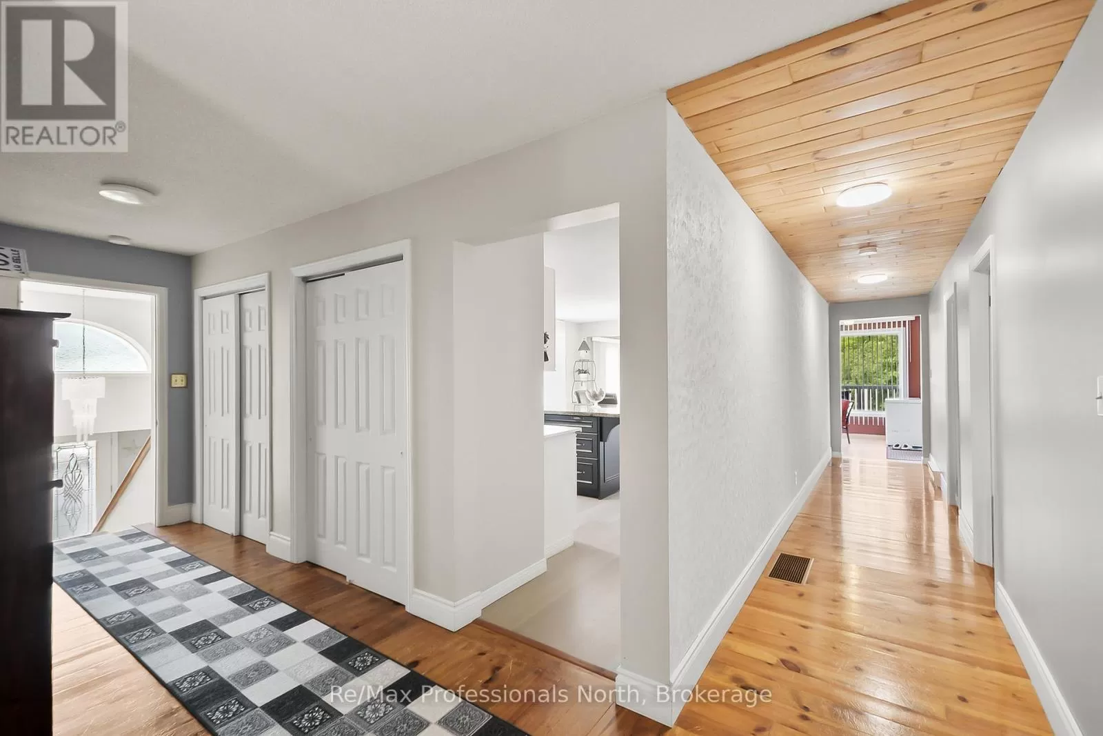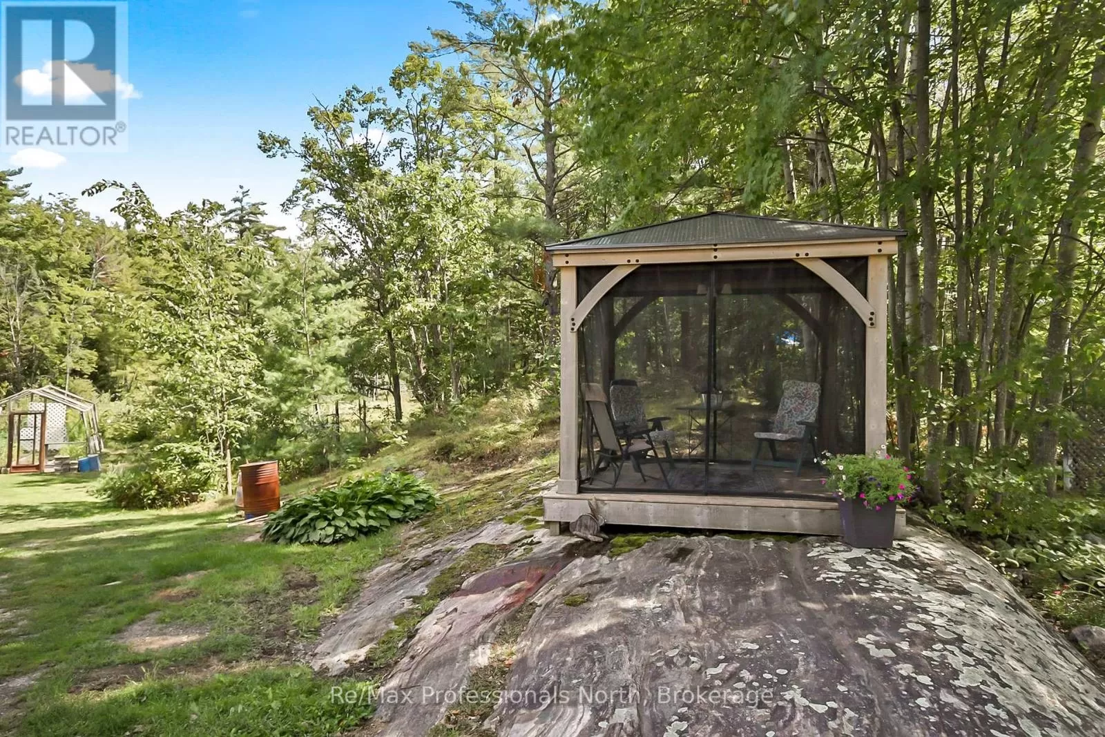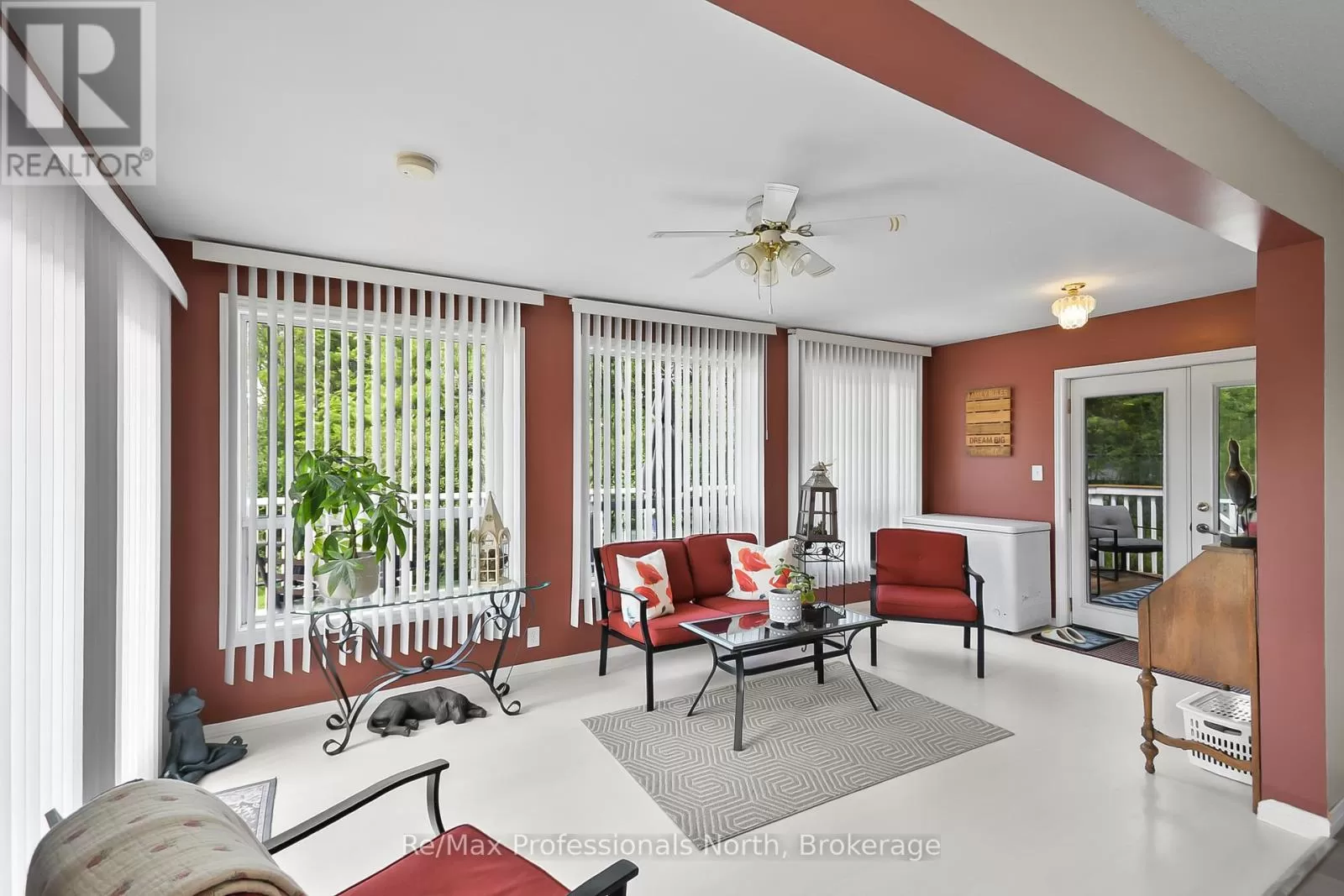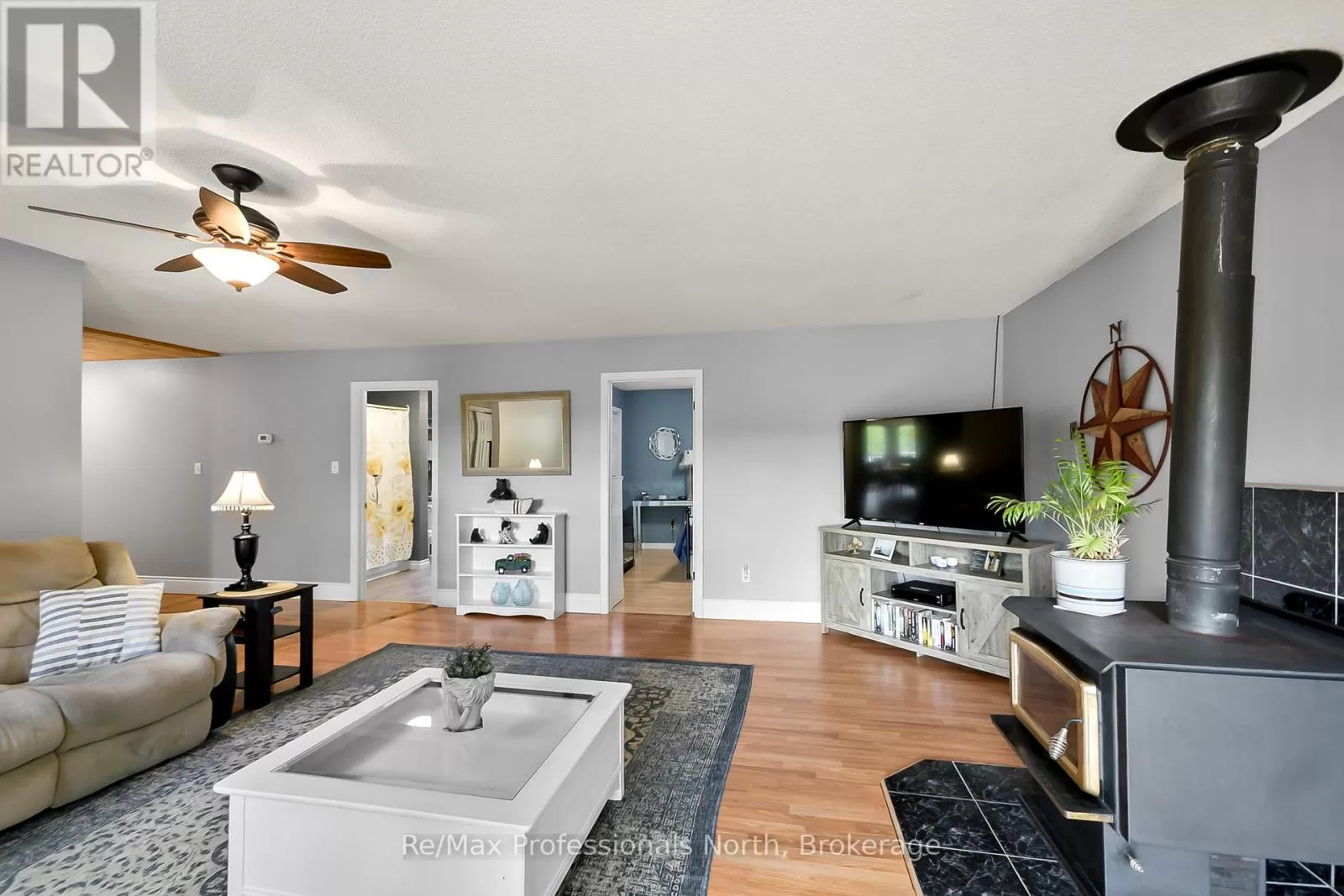 Highway 169 to 1244 S.O.P Welcome to this beautiful 2,800 sq. ft. raised bungalow set on over 3 acres just minutes from Gravenhurst. This property offers the perfect blend of privacy, space, and functionality with a fully finished walkout basement and double attached garage. Step inside the impressive foyer with abundant storage and access to both the main and lower levels. The main floor features a spacious living room with a cozy wood-burning fireplace and a walkout to a deck overlooking the front yard. An open-concept kitchen, dining, and sitting area showcase panoramic views of nature - perfect for morning coffee or entertaining. Three generous bedrooms and a well-appointed 4-piece bathroom with ample storage complete the main level. The bright walkout basement expands your living space with two additional bedrooms, including one with a walk-in closet, plus a large recreation room ideal for family movie nights, games, or a pool table. With its separate entrance, this level offers excellent potential for an in-law suite. Enjoy warm summer evenings in the screened-in gazebo, a peaceful retreat free from pesky bugs, or relax on the deck while soaking in the views of your sprawling backyard. Whether you're looking for multigenerational living, space to entertain, or a quiet retreat surrounded by nature, this property delivers it all. (id:27476)