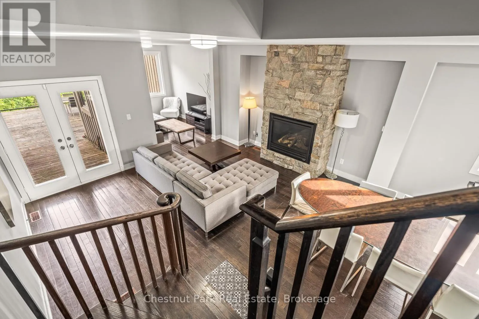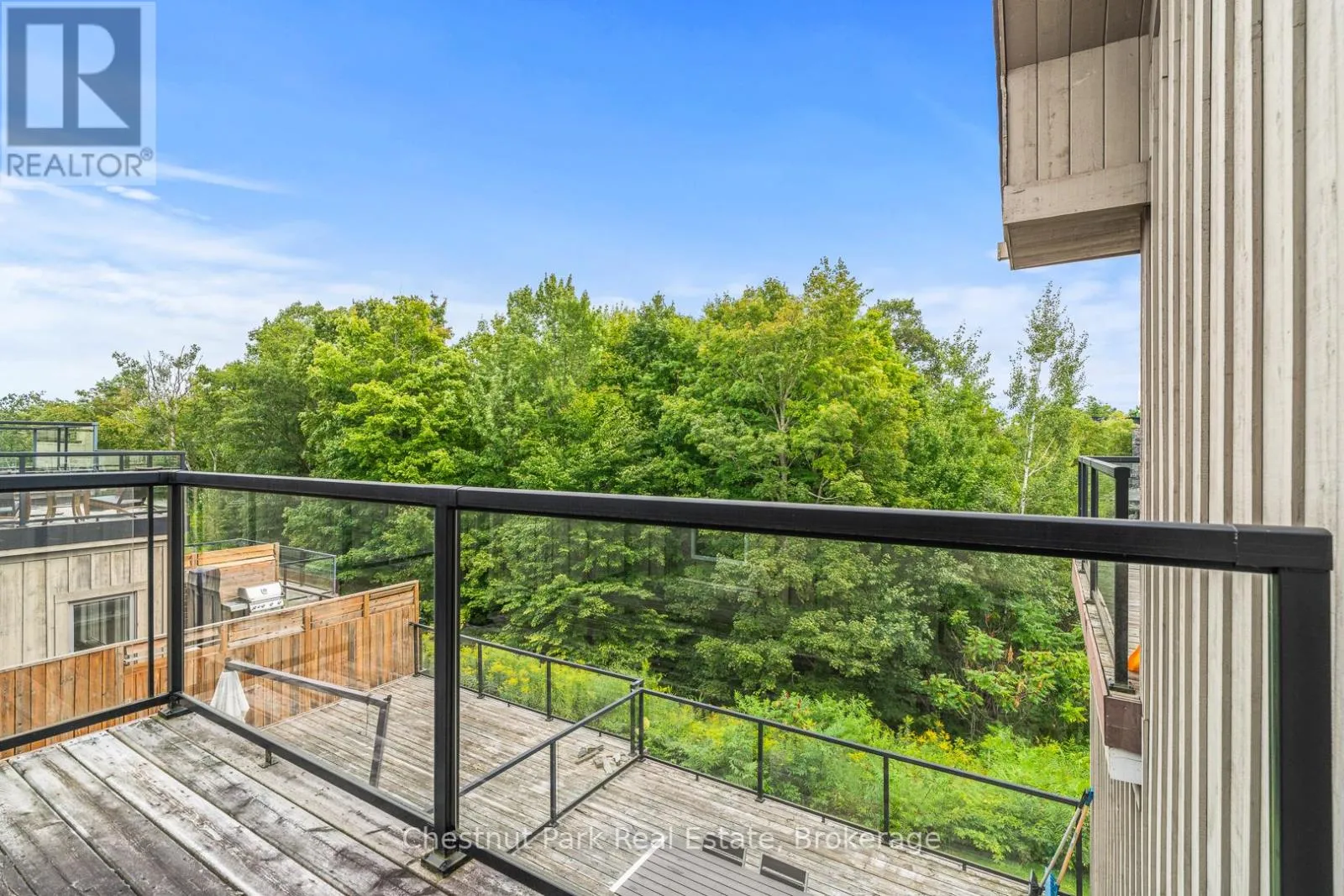 Cross Streets: Muskoka Road 169/ North Muldrew Lake Rd. ** Directions: North Muldrew Lake Road, Left on Carrick Trail and Left on Rockmount Cres. Discover refined living at Muskoka Bay Resort with this stunning 4 bedroom, 3.5 bathroom townhouse. Blending modern comfort with resort style amenities , this 1573 square foot home is perfect for year round living, investment or a luxury retreat. The main floor features an open concept kitchen with central island, a bright dining area, and a welcoming living room with gas fireplace. A beautiful four season room extends your living space and a walkout deck overlooks the natural ravine below. Upstairs the Primary Bedroom offers a private balcony and a three piece ensuite. Two additional bedrooms and a four piece washroom provide ample space for family or guests. The fully furnished lower level includes a spacious living room with walk out access to green space, a full four piece washroom, laundry and direct access to the one car garage. Take advantage of the fully managed resort rental program to help generate revenue when you are not using your unit. As part of Muskoka Bay Resort this property includes the initiation fee for a golf or social membership, granting access to world class amenities such as the award winning championship golf course, clifftop clubhouse with restaurant and patio, infinity pool, kids pool and sauna and a variety of year round activities such as skiing, snowshoeing, skating and more. Whether you are entertaining, relaxing or enjoying Muskoka's four season, this home offers the perfect balance of comfort and lifestyle. (id:27476)