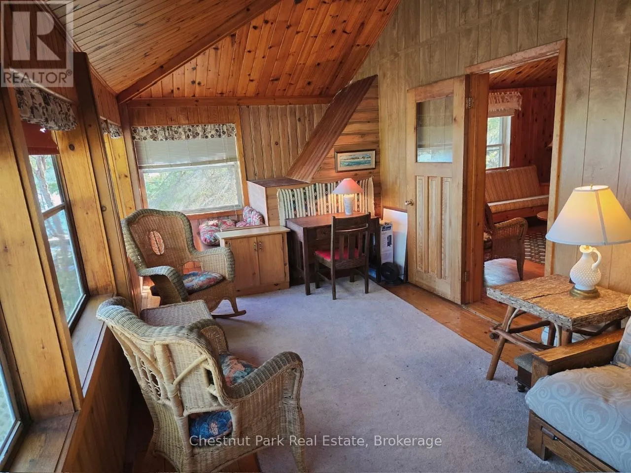 Cross Streets: Hwy 11 to N Kahshe Lake Rd to Wigwam Lodge Rd #1051. ** Directions: Take Why 11 north to N. Kahshe Lake rd & turn right onto Wigwam Lodge rd. Follow to SOP. Enjoy the spectacular Fall season at this treasured family compound on Beautiful Kahshe Lake, Muskoka. Rare, 2 cottage offering on combined 162' of waterfront that affords wistful long lake views from both the main water's edge cottage and the 2nd cozy cottage. Rare, road access off historic Wigwam Lodge rd makes for quick & easy, all season access without the hassle of a long and winding road. The 2 properties can be purchased as one for the Fall season price of 799k, which is so rare to find on popular Kahshe Lake. Here is your opportunity to re-imagine a property with potential. Walkable, granite ridges meander through the property and would provide a solid foundation for building. No marshy areas here. The 2 cottages have potential for renovating, allowing a buyer to create their own design. The main cottage offers vaulted pine ceiling & walls with a porch view of the lake, 2 bedrooms and a ground flr open concept kitchen/dining and lounging space off the water's edge deck. The smaller open cottage is perfect to stay in while renovating the other cottage and would provide plenty of extra family/guest space for privacy. Located in a quiet bay for swimming. Driveway is shared right of way. Current parking for 3 cars +. Don't miss this opportunity. Book your showing today! (id:27476)