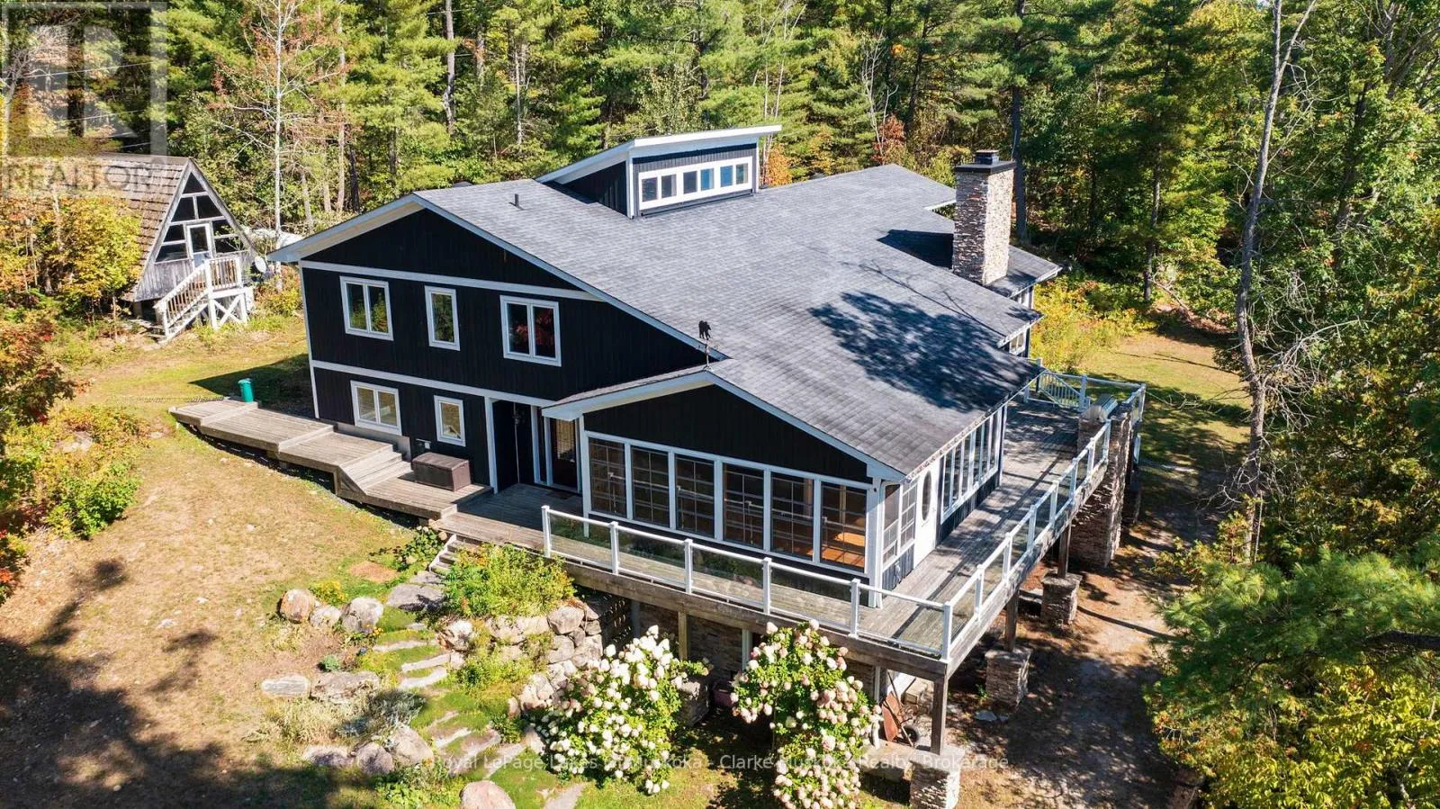 Cross Streets: Parkers Point Road / Hwy 169. ** Directions: Parkers Point Road to Road 3200. Experience the ultimate Muskoka lifestyle with this rare offering: a stunning 6,432 sq. ft. cottage on 3.2 acres with 540 feet of shoreline, combined with an exceptional 41.5-acre lot in Gravenhurst featuring 260 feet of water frontage. This unique package offers privacy, space, and endless possibilities for family living, entertaining, and year-round enjoyment. The main cottage boasts 6 bedrooms, 5 bathrooms, and sun-soaked open living areas on both main and lower levels, the main floor is anchored by a gorgeous stone wood fireplace, while the basement living area features a stone propane fireplace. The chef's kitchen features a Sub-Zero fridge/freezer, KitchenAid island cooktop, double oven, and bar fridge, while a cozy cigar/TV lounge provides a perfect spot for relaxing. Step outside to a wrap-around patio with a built-in Viking BBQ or unwind in the 3-season sunroom with breathtaking lake views. The primary suite is a private retreat, complete with fireplace, walk-in closet, private deck, and spa-like ensuite with jacuzzi and glass shower. Additional features include a bunkie, two-storey garage, and ultimate privacy. Adjacent, the 41 acre lot offers a perfect balance of lush forest, open space, and natural beauty. Towering trees create a private, peaceful setting, while hydro services are available for convenience. Ideal for enjoying the lake, exploring nature, and embracing the Muskoka lifestyle. (id:27476)