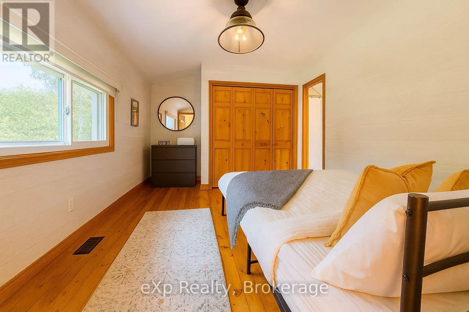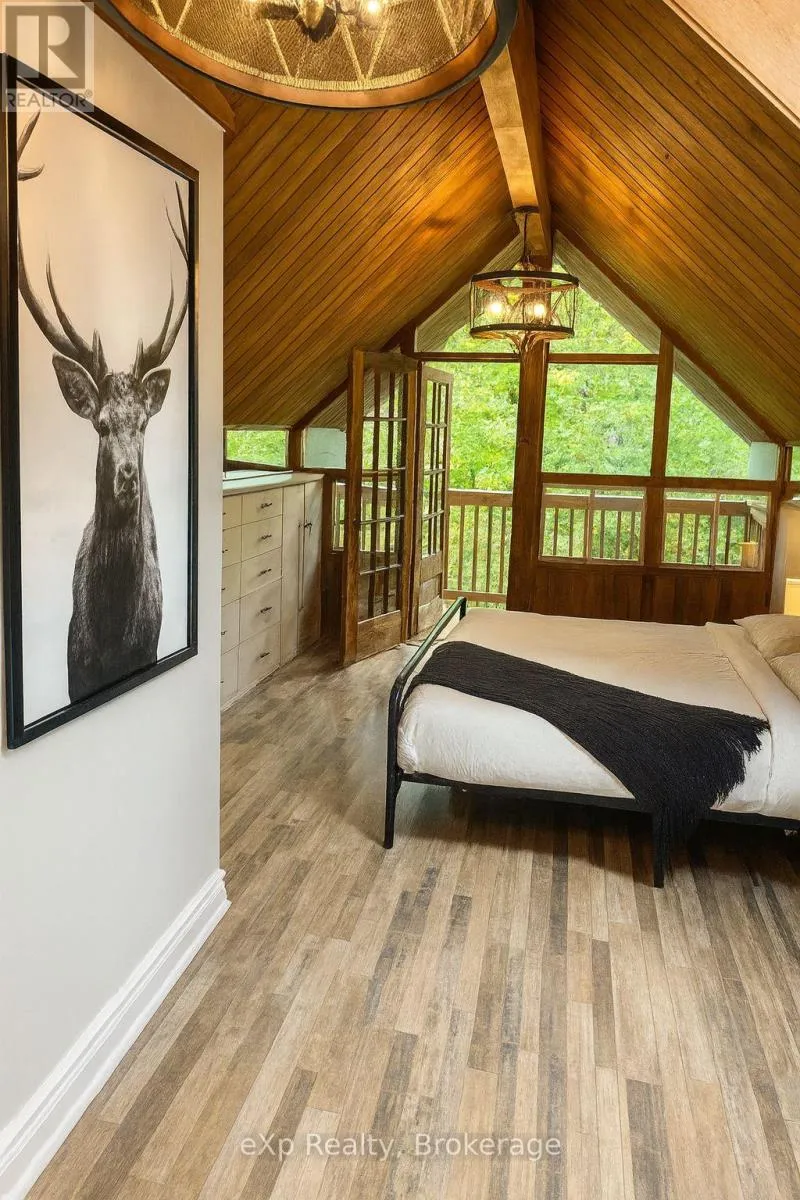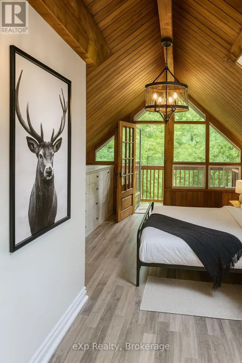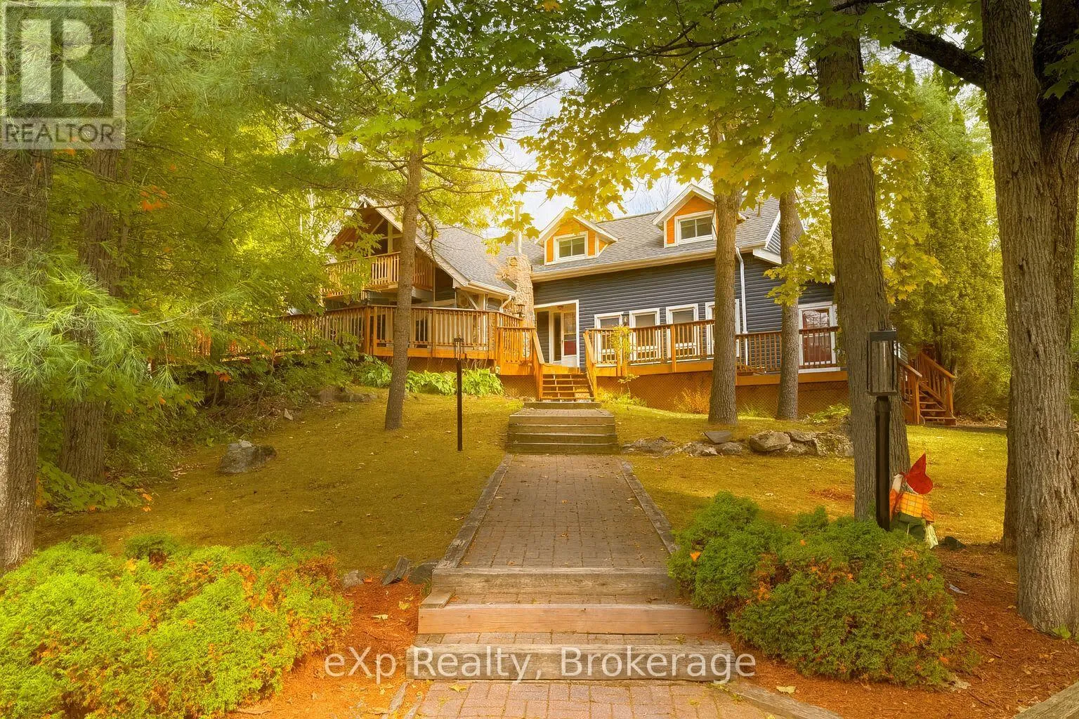 Cross Streets: Colony Road. ** Directions: continue north on Frank Miller Memorial Rte (Muskoka Rd 169N), The address will be on the right marked by a For Sale sign. Welcome to 1382 Muskoka Road 169 N A Private Muskoka Retreat Just Minutes from Town. Set on nearly an acre of mature, forested land, this beautifully updated home offers over 2,100 sq ft of finished living space and delivers the perfect blend of modern convenience and natural serenity just a short drive to all of the amenities that Gravenhurst has to offer! Lake Muskoka and beaches are plentiful and Pine Lake is directly across the road. The main floor features an open-concept layout with a warm, rustic ambiance highlighted by wood ceilings, natural finishes, and walkouts to expansive front and back decks. A large bedroom on this level boasts its own vaulted ceiling and direct access to a nearby full bathroom perfect for guests or main-floor living. Upstairs, the primary suite is a true escape with its own vaulted ceilings, private balcony, walk-in closet, and a beautifully renovated ensuite bathroom (2021). Two additional bedrooms share a connected Jack & Jill bathroom, making this layout ideal for families or vacation guests. Upgrades & Improvements (Newest to Oldest):New siding, soffits, fascia & eaves (2025)New rear deck (2022)New front deck (2022)New roof shingles (2022)Upgraded electrical panel to 200 amp (2021)Security camera system installed (2021)Fully renovated ensuite bathroom (2021)Other features include central air conditioning, UV water filtration, rented propane furnace, hot water tank, and propane tanks. A detached two-car garage has been converted into a large storage building, perfect for toys, tools, or seasonal equipment. Located on a year-round municipally maintained road, this property offers unbeatable access to area lakes, trails, and amenities while still feeling like a peaceful Muskoka getaway. (id:27476)