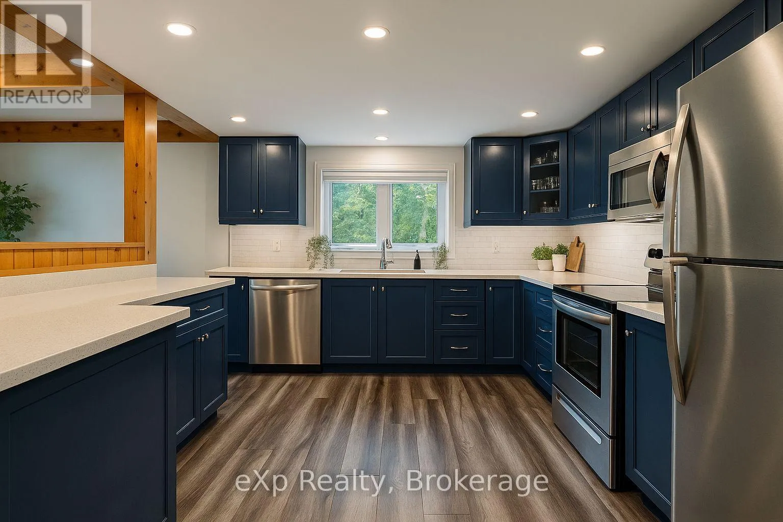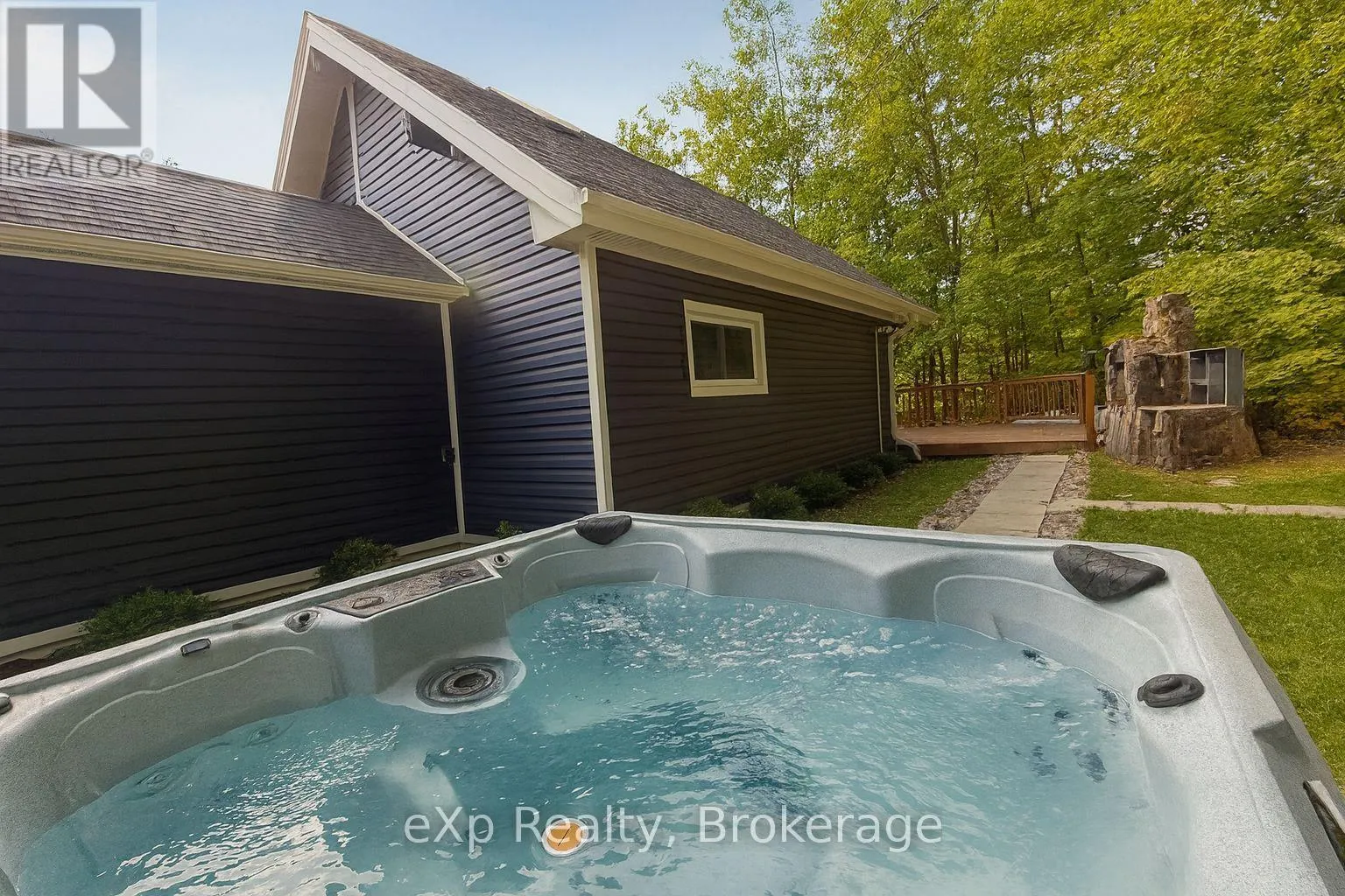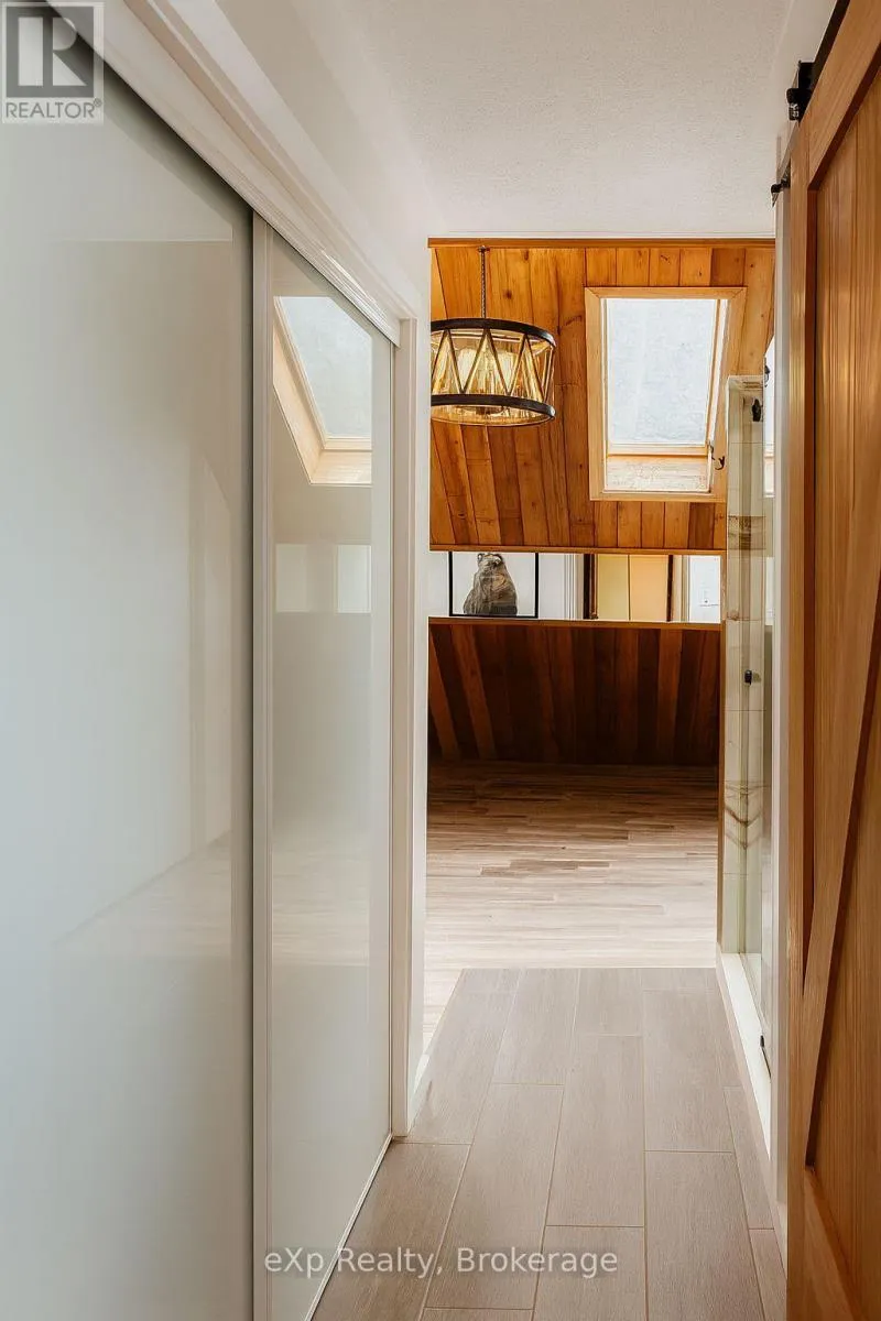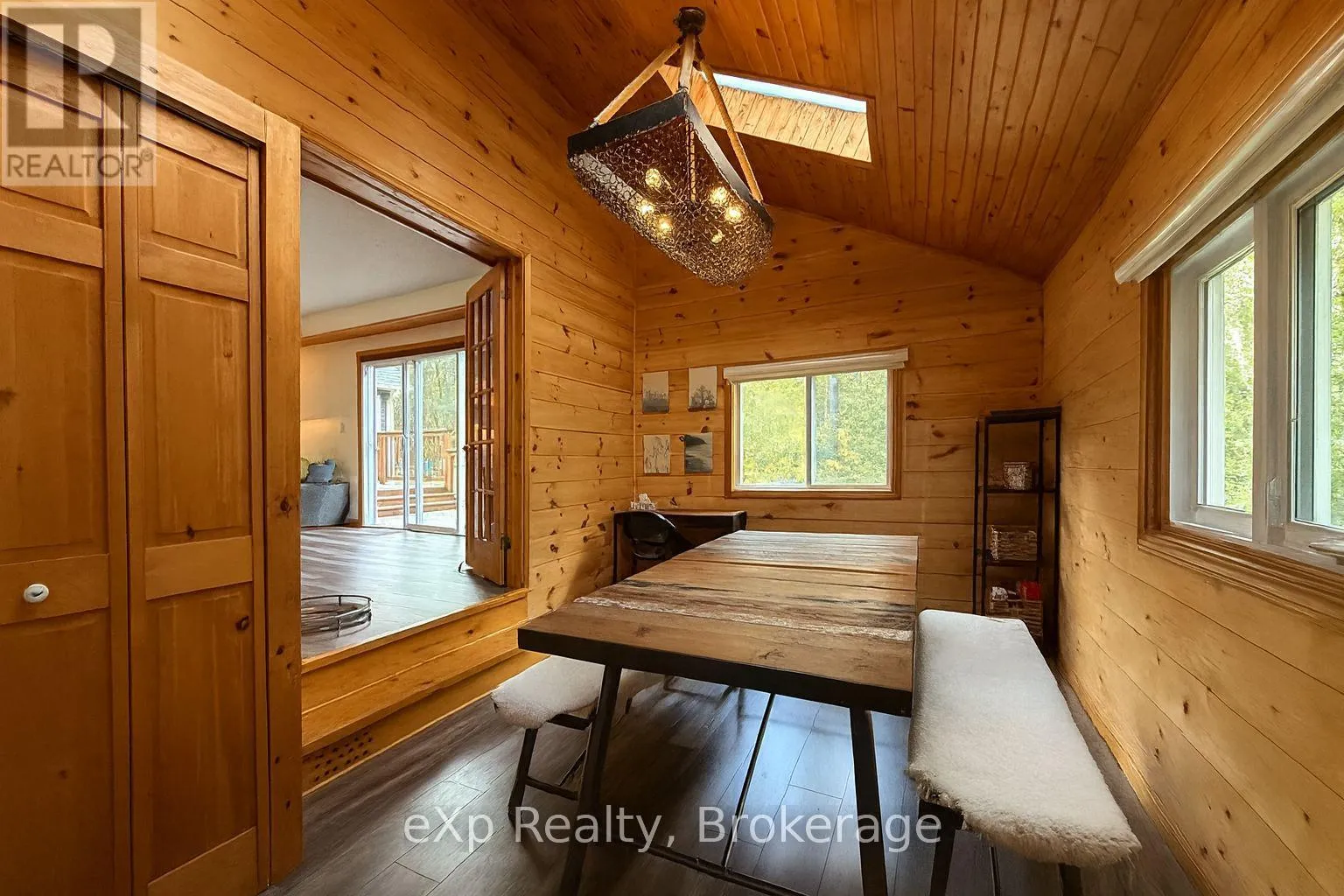 Cross Streets: Colony Road. ** Directions: continue north on Frank Miller Memorial Rte (Muskoka Rd 169N), The address will be on the right marked by a For Sale sign. Welcome to 1382 Muskoka Road 169 N A Private Muskoka Retreat Just Minutes from Town. Set on nearly an acre of mature, forested land, this beautifully updated home offers over 2,100 sq ft of finished living space and delivers the perfect blend of modern convenience and natural serenity just a short drive to all of the amenities that Gravenhurst has to offer! Lake Muskoka and beaches are plentiful and Pine Lake is directly across the road. The main floor features an open-concept layout with a warm, rustic ambiance highlighted by wood ceilings, natural finishes, and walkouts to expansive front and back decks. A large bedroom on this level boasts its own vaulted ceiling and direct access to a nearby full bathroom perfect for guests or main-floor living. Upstairs, the primary suite is a true escape with its own vaulted ceilings, private balcony, walk-in closet, and a beautifully renovated ensuite bathroom (2021). Two additional bedrooms share a connected Jack & Jill bathroom, making this layout ideal for families or vacation guests. Upgrades & Improvements (Newest to Oldest):New siding, soffits, fascia & eaves (2025)New rear deck (2022)New front deck (2022)New roof shingles (2022)Upgraded electrical panel to 200 amp (2021)Security camera system installed (2021)Fully renovated ensuite bathroom (2021)Other features include central air conditioning, UV water filtration, rented propane furnace, hot water tank, and propane tanks. A detached two-car garage has been converted into a large storage building, perfect for toys, tools, or seasonal equipment. Located on a year-round municipally maintained road, this property offers unbeatable access to area lakes, trails, and amenities while still feeling like a peaceful Muskoka getaway. (id:27476)