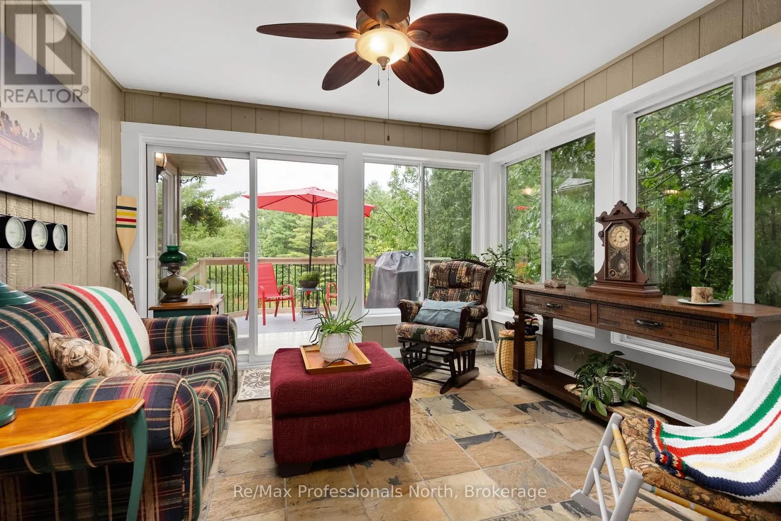 Cross Streets: Coopers Falls Road & L. ** Directions: Coopers Falls Road to Laidlaw Ave. SOP. Welcome to "The River View", a custom-built Muskoka retreat where thoughtful design and natural beauty come together. The heart of the home is the great room, where soaring windows frame captivating views of the Severn River and a striking granite fireplace creates a warm focal point. With approximately 1,800 square feet of well-planned living space, the residence features 3 comfortable bedrooms and 2.5 bathrooms, offering both functionality and privacy for family and guests. A versatile loft provides the perfect spot for a reading nook or quiet workspace, enhancing the homes inviting flow that suits both relaxed living and entertaining. Adding to the appeal, a detached garage includes 500 square feet of finished space ready to be enjoyed as a home office, art studio, fitness room, or bunkie for guests and grandchildren. Outdoors, life on the river is all about connection to nature, explore more than 20 km of calm waters by boat, take in stunning sunsets around the firepit, or unwind in a Muskoka chair while enjoying the sought-after western exposure. Convenient access to Highway 11 and Washago ensures easy travel, with Gravenhurst and Orillia just 15 minutes away. As the closest Muskoka address to the GTA, "The River View" offers the rare combination of peaceful seclusion and accessibility, making it a standout opportunity for those seeking luxury and lifestyle on the water. Click the Property Brochure link below for the virtual tour, floor plans, and additional photos. (id:27476)