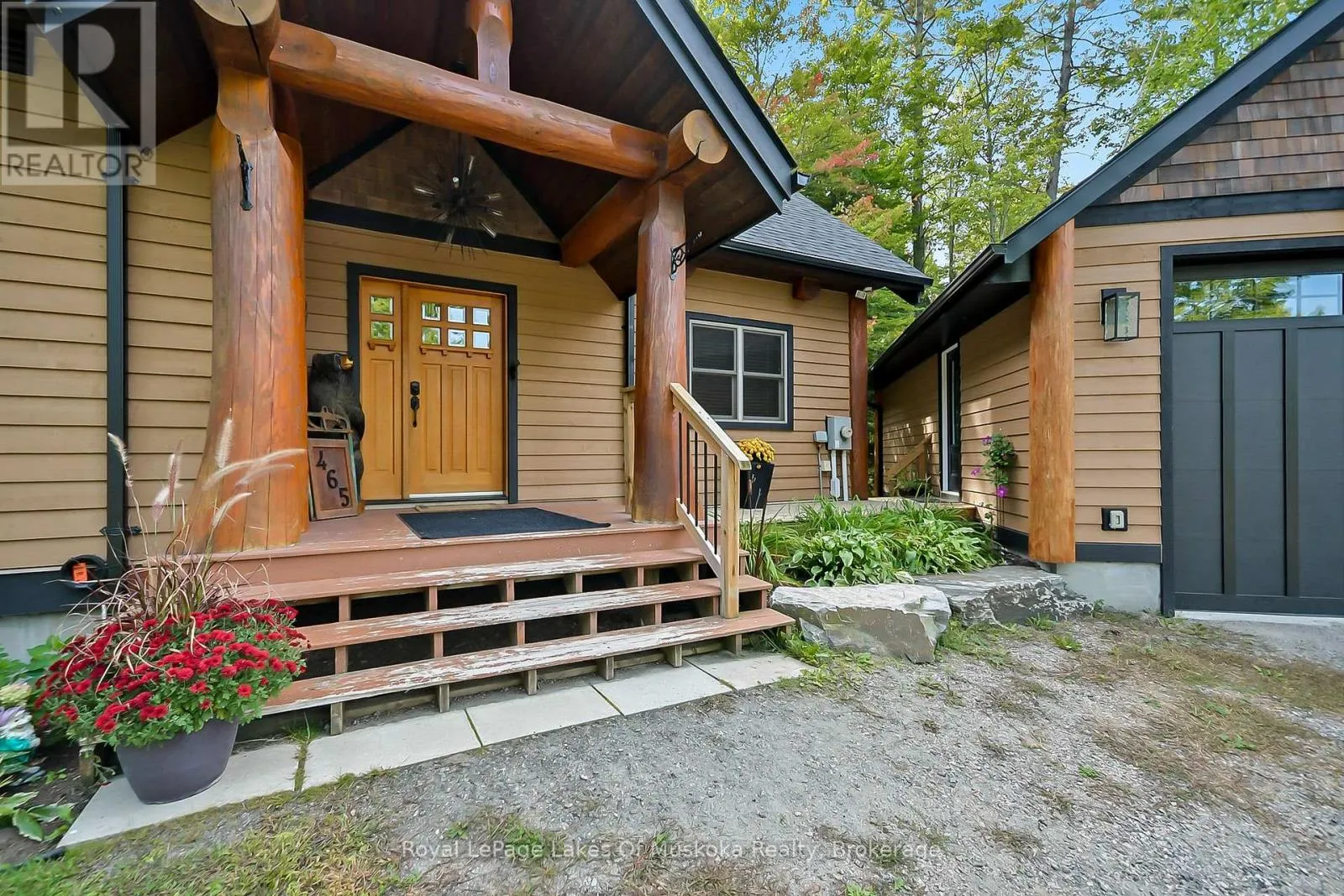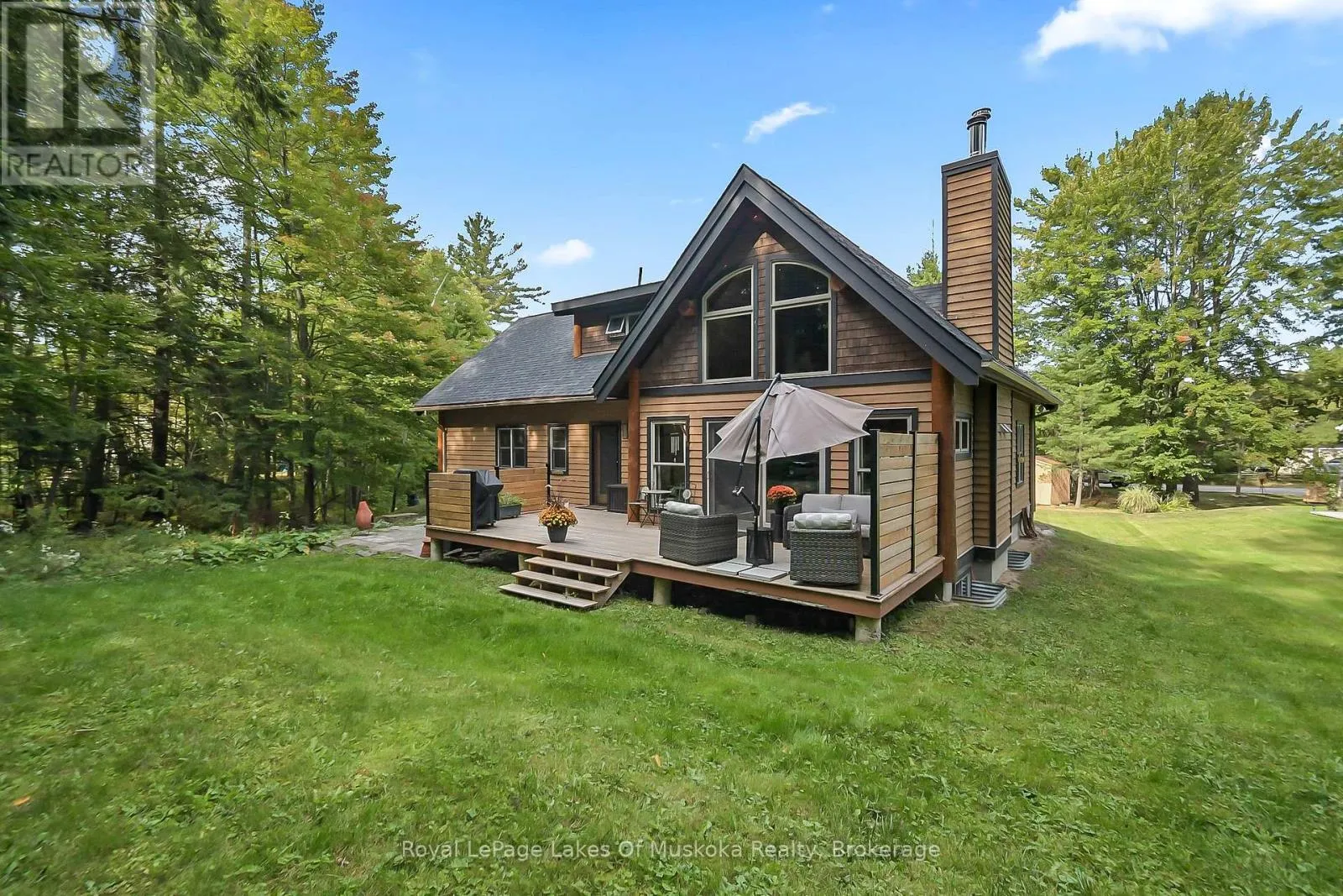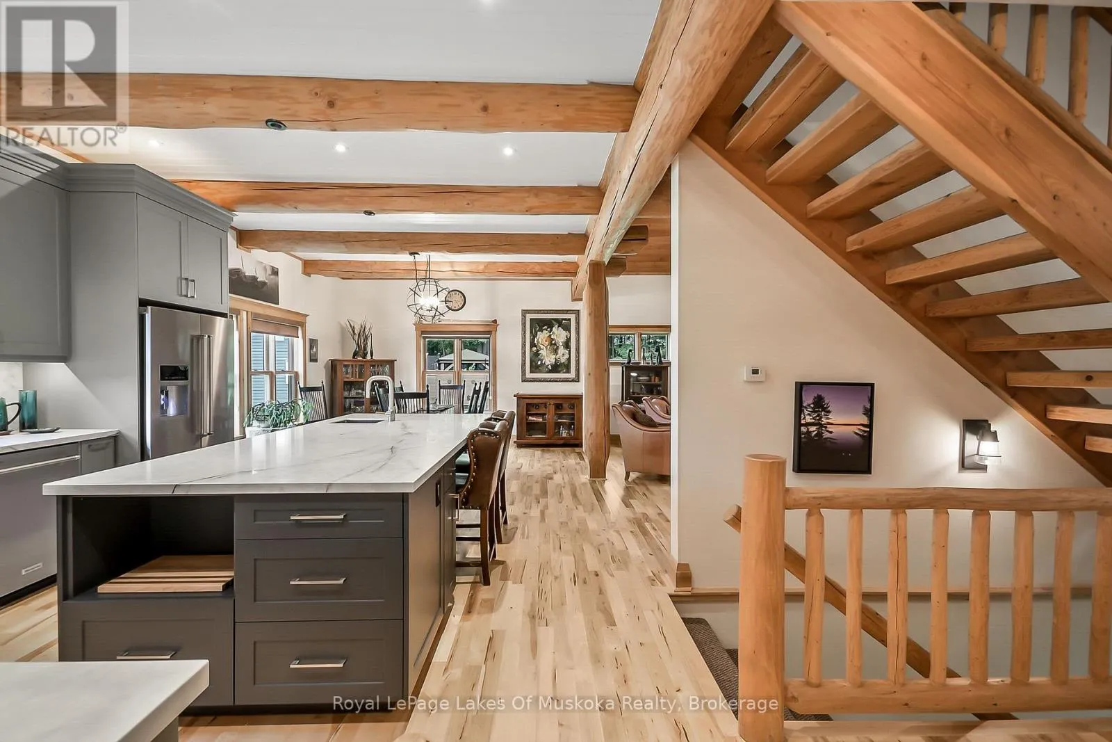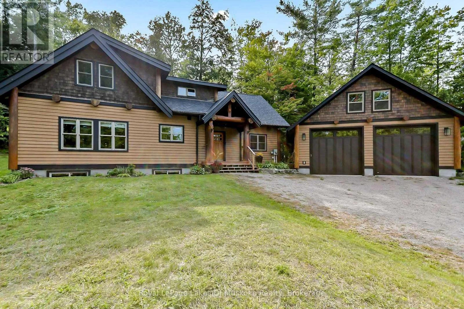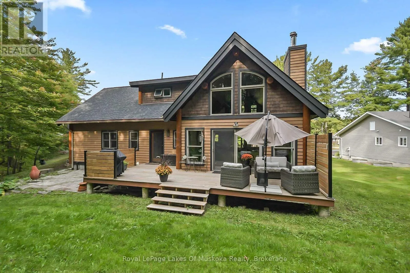 Cross Streets: Alexander St/Brydon's Bay Road. ** Directions: Muskoka Beach Road to Palmer Drive to Alexander to #465. Welcome to this beautiful Cedar Coast Timber Frame home, built in 2006, showcasing large posts and beams, custom timber staircase and railings and cathedral ceilings of tongue and groove cedar. This home exudes charm, warmth and the big Wow factor upon entry. An open concept great room design features a stunning custom kitchen with walk-in pantry, complimented by a spacious, bright dining room and breathtaking living room with a floor-to-ceiling stone wood-burning fireplace, large windows with a mature forest view and a walk out to a private back deck. Main floor living is made easy with a laundry/powder room and primary bedroom, accented with cedar beams, a 4 pc ensuite and walk-in closet. Climb the timber stairs to a gorgeous loft overlooking the living room and forest view, providing a wonderful work, play or quiet space, together with a 2nd generous sized bedroom with large finished storage spaces and a 3 pc. bathroom. Maple flooring on the main level and cedar plank floors on the upper level,. The finished lower level of this well cared for home has a generous sized family room, bright with morning sunlight, a 3rd bedroom with large egress window and an office/den with similar window and storage closet. This level has under-stair storage, two double hallway closets and a 3 pc bathroom, with large walk-in shower. A very large mechanical/storage room completes this level. An automatic back-up Generac Guardian Series generator provides peace of mind during power outages, to almost the entire home. Custom designed to match this wonderful home is a large, bright double car garage with 2-10x10 garage doors, plywood walls, a mezzanine loft and a Trustcore ceiling. Pictures are worth a thousand words but this home must be seen to be appreciated. (id:27476)
