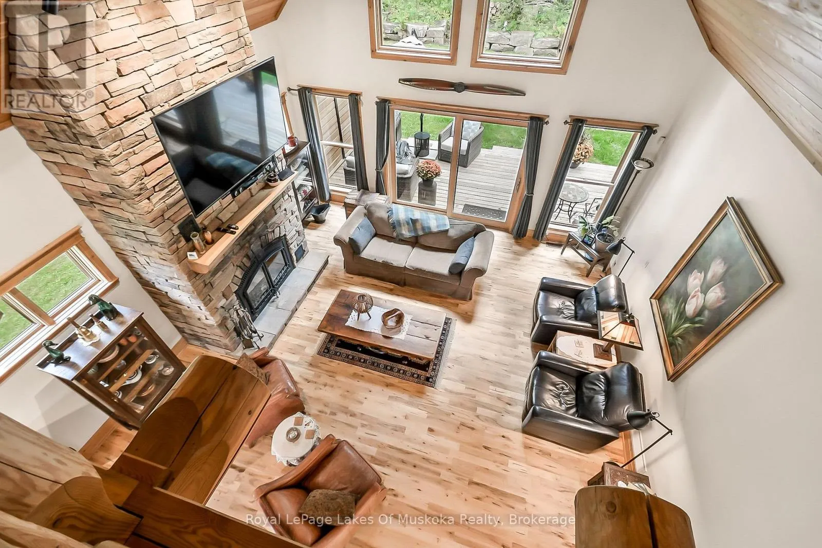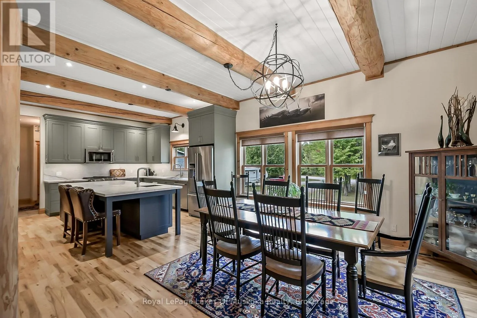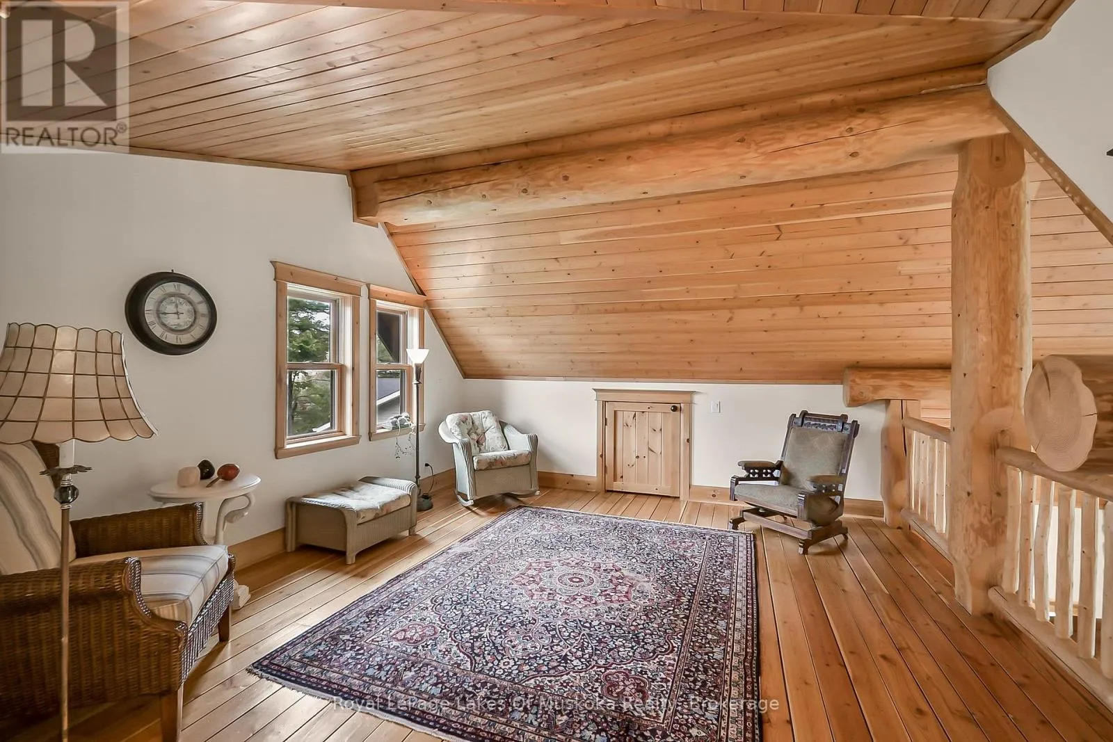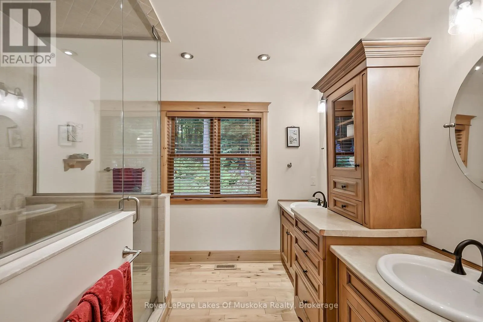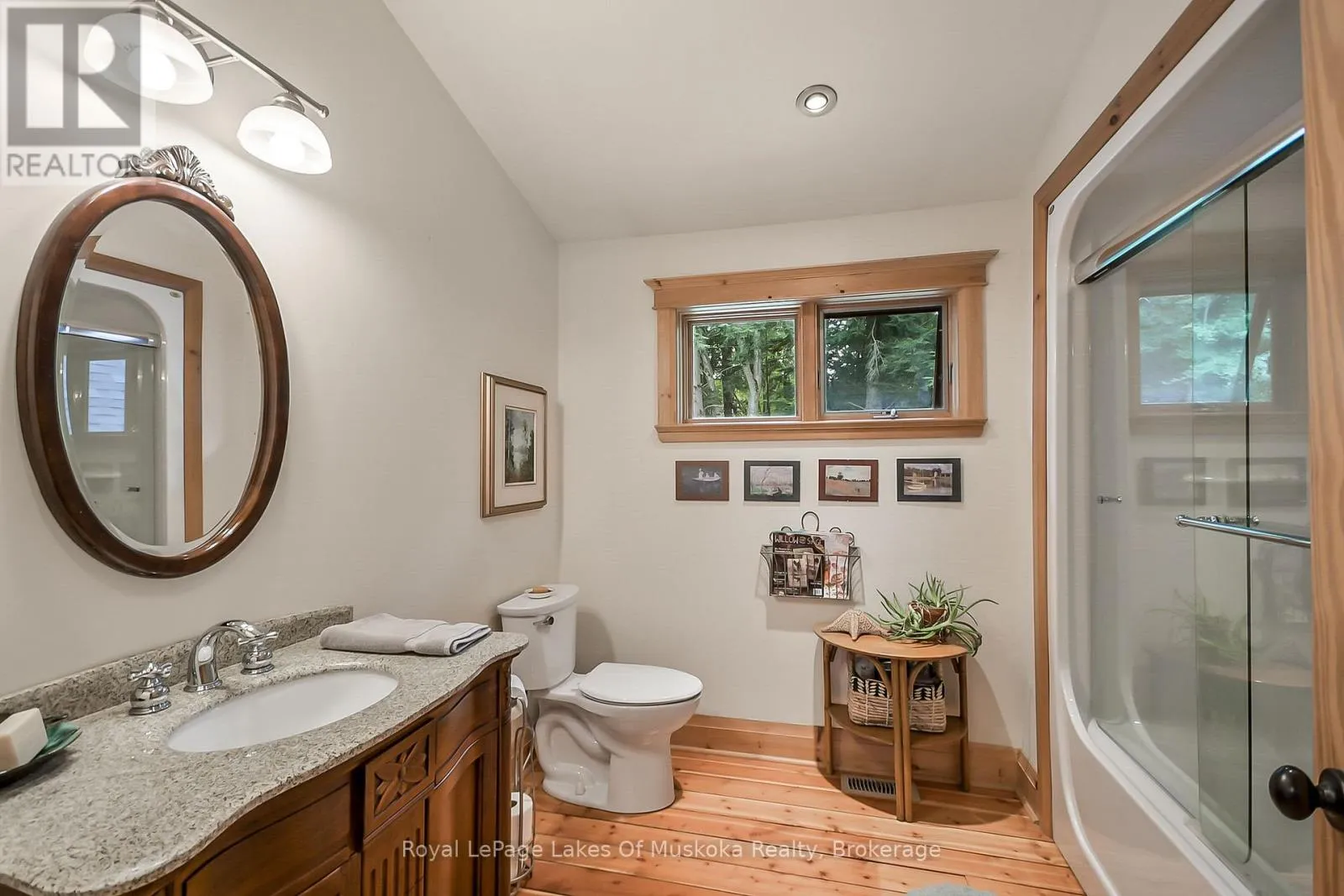 Cross Streets: Alexander St/Brydon's Bay Road. ** Directions: Muskoka Beach Road to Palmer Drive to Alexander to #465. Welcome to this beautiful Cedar Coast Timber Frame home, built in 2006, showcasing large posts and beams, custom timber staircase and railings and cathedral ceilings of tongue and groove cedar. This home exudes charm, warmth and the big Wow factor upon entry. An open concept great room design features a stunning custom kitchen with walk-in pantry, complimented by a spacious, bright dining room and breathtaking living room with a floor-to-ceiling stone wood-burning fireplace, large windows with a mature forest view and a walk out to a private back deck. Main floor living is made easy with a laundry/powder room and primary bedroom, accented with cedar beams, a 4 pc ensuite and walk-in closet. Climb the timber stairs to a gorgeous loft overlooking the living room and forest view, providing a wonderful work, play or quiet space, together with a 2nd generous sized bedroom with large finished storage spaces and a 3 pc. bathroom. Maple flooring on the main level and cedar plank floors on the upper level,. The finished lower level of this well cared for home has a generous sized family room, bright with morning sunlight, a 3rd bedroom with large egress window and an office/den with similar window and storage closet. This level has under-stair storage, two double hallway closets and a 3 pc bathroom, with large walk-in shower. A very large mechanical/storage room completes this level. An automatic back-up Generac Guardian Series generator provides peace of mind during power outages, to almost the entire home. Custom designed to match this wonderful home is a large, bright double car garage with 2-10x10 garage doors, plywood walls, a mezzanine loft and a Trustcore ceiling. Pictures are worth a thousand words but this home must be seen to be appreciated. (id:27476)