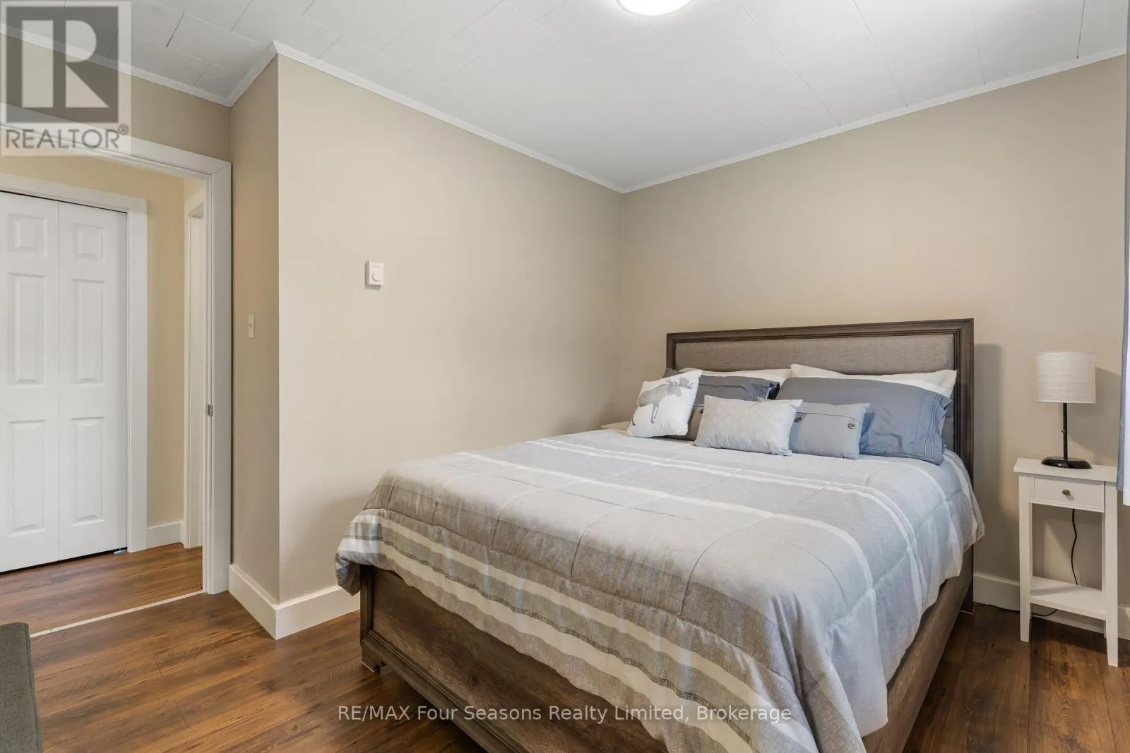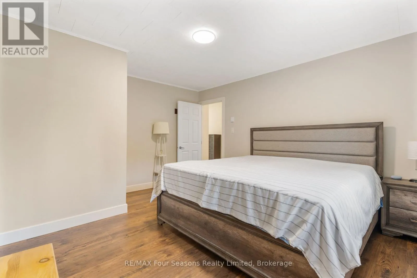 Cross Streets: Bethune Dr & Bay St. ** Directions: Bethune Dr to David St. Welcome to this beautifully updated bungalow nestled in the heart of Gravenhurst, just a short stroll from Gull Lake Park and the downtown core. This home seamlessly combines modern upgrades with the flexibility of multi-generational living or rental income potential in a quiet, family-friendly neighbourhood. The main level features 4 bedrooms and 1 bathroom, with a renovated custom kitchen & dining area (2022). Enjoy the bright and open layout with updated windows, pot lights, flooring, paint, electrical panel and more - mostly completed in the last 4 years. The fully finished walk-out basement offers incredible versatility with 2 additional bedrooms, 1 bathroom, a second kitchen, and a private entrance. Outside, you'll find a generous level lot with room to relax or entertain, all within walking distance to parks, schools, shops, and restaurants. Whether you're looking for a family home with room to grow or a possible investment property with income potential, this Gravenhurst gem is a must-see! (id:27476)