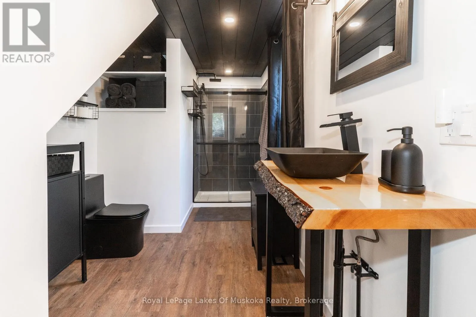 From Bethune Drive take Pinedale Road to #570 on the left. This wonderful Gravenhurst home is move-in ready with countless new upgrades and unique style. New siding, new insulation, new main floor energy efficient windows and doors, newer roof, complete main floor renovation, a new back deck, and much more. The large carport has barn doors leading to a rare oversized fully-fenced yard showcasing a fish pond, multiple raised garden beds, firepit social zone, a handy shed, and impressive privacy. Grow your own food, host family and friends, or unwind at the gazebo cooking station. The exterior has new vinyl siding, soffit, and eavestroughs, and the yard and property have been lovingly maintained. An updated sunroom gives you an extra space to watch the sunset (or sunrise). Inside, the newly renovated living room leads to a complete pine kitchen with a cozy vibe and unique features like a built-in wine rack and exposed chimney, while the newly renovated bathroom boasts modern fixtures and contemporary elegance. With two main floor bedrooms plus a bonus loft space (with an extra bed) this energy efficient home would suit a small family, single professional, or empty nesters. Don't miss the chance to explore this tidy updated package. (id:27476)
