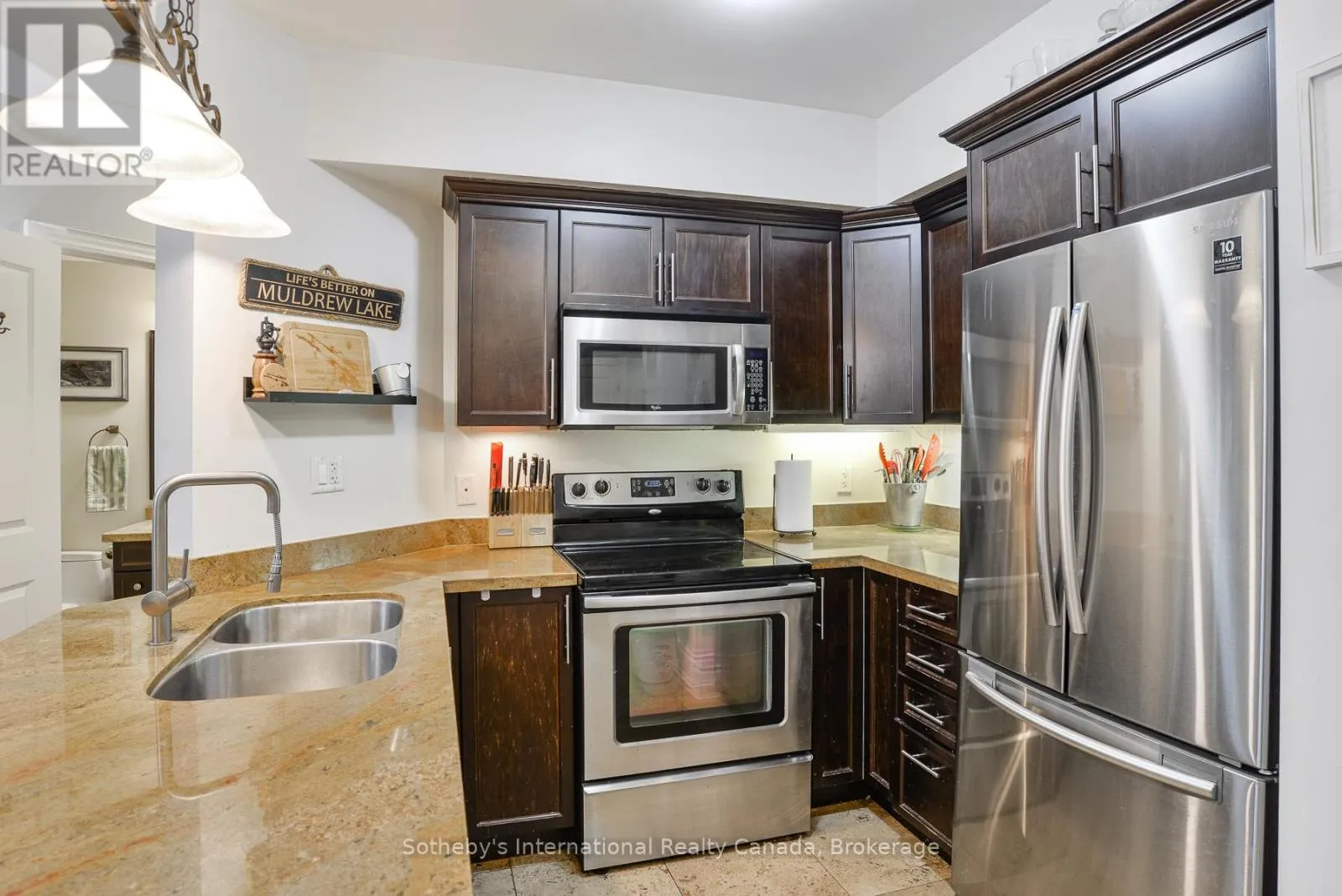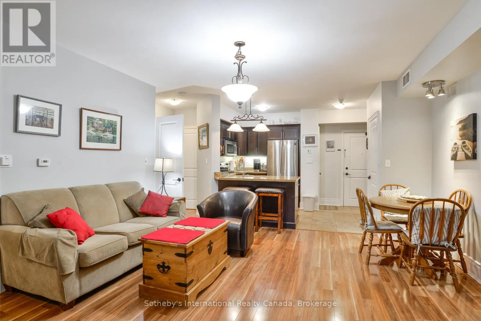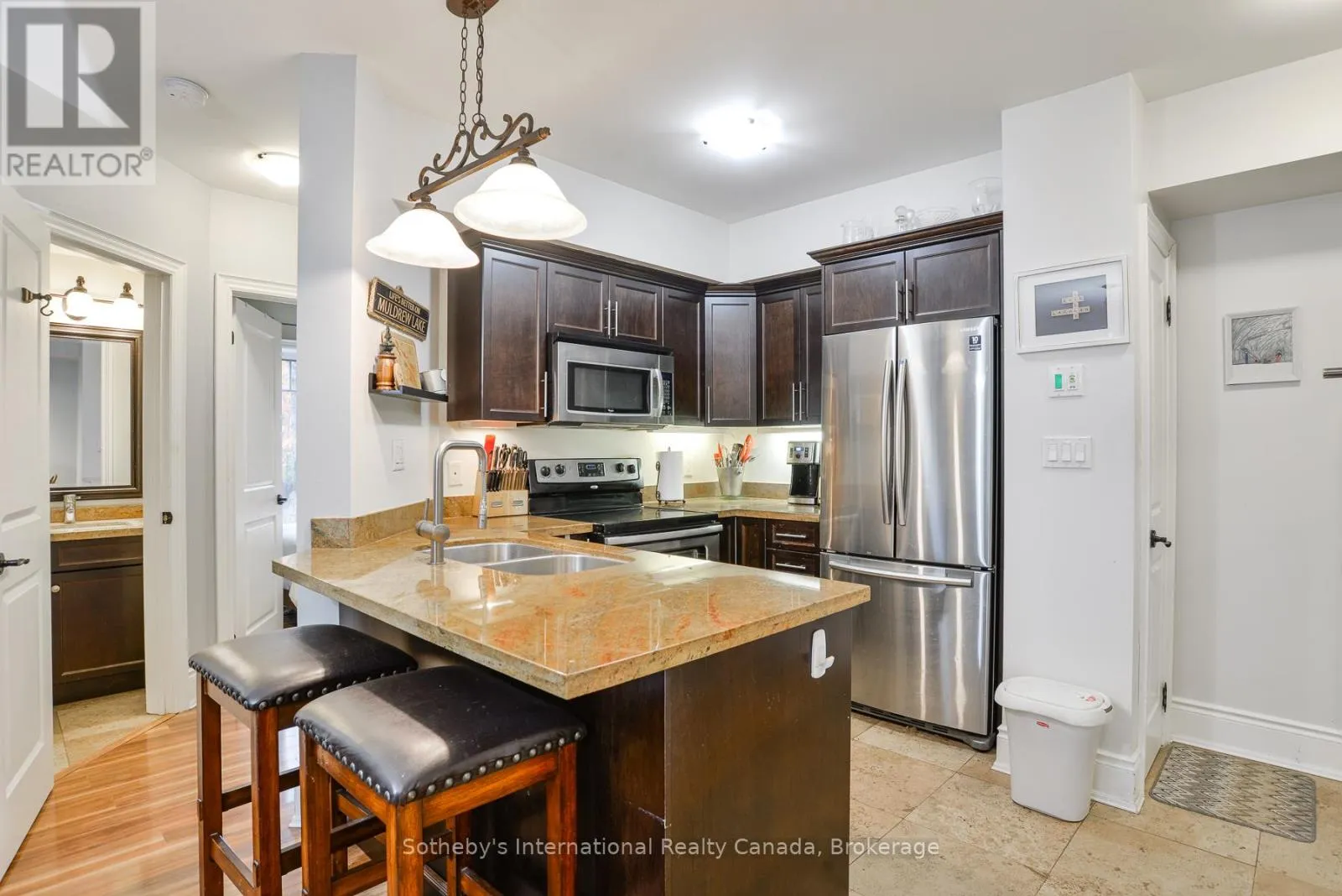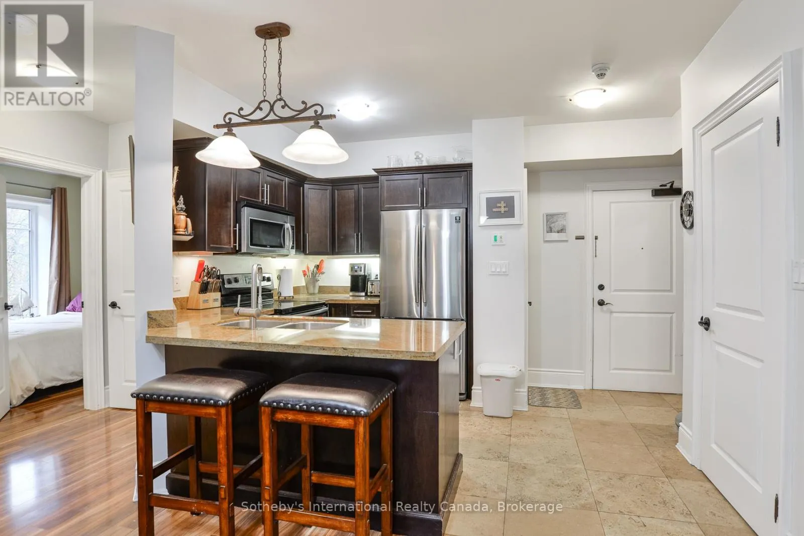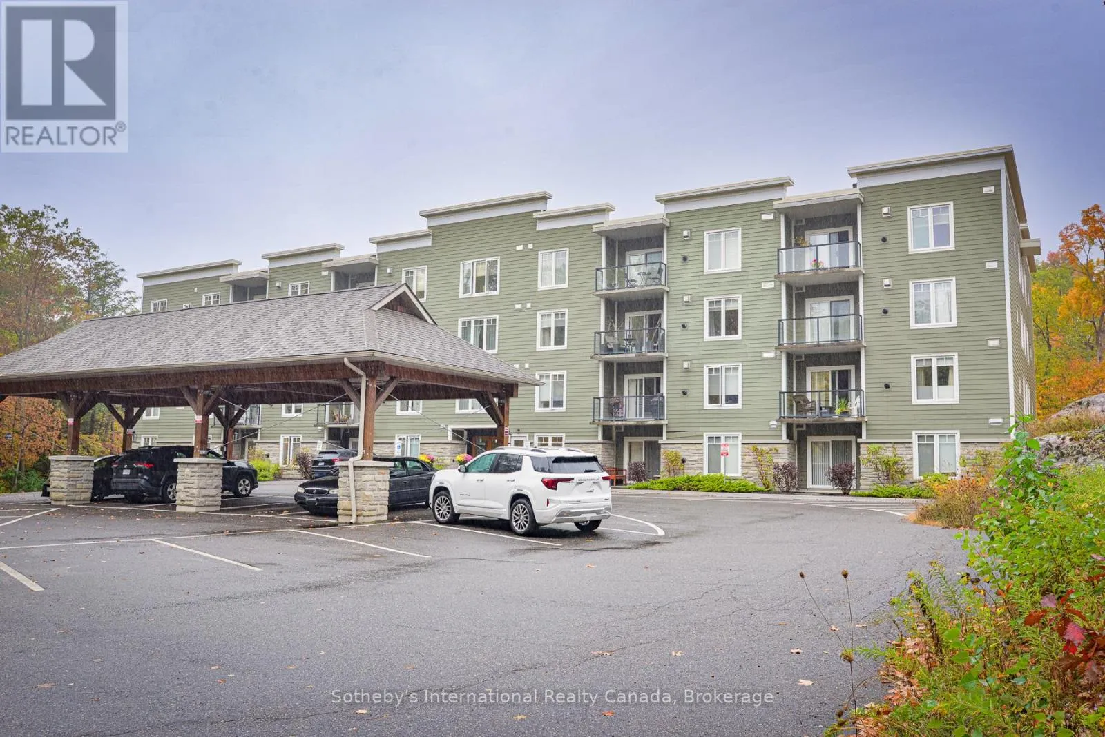 Cross Streets: Muskoka Rd S & James St W. ** Directions: Muskoka Rd S to James St W to Granite Trail Condominiums. Step into effortless living at this bright 2-bedroom, 2-bathroom end unit on the 4th floor of Granite Trail Condominiums in Gravenhurst. Fully smoke-free property with outside grounds also vape-free. Perfect for downsizers, professionals, or pet-loving adventurers, it's your gateway to the heart of Muskoka just a leisurely walk to the vibrant Muskoka Wharf, uptown shops, restaurants, and the local dog park. Stroll scenic walking trails by day, or unwind with waterfront dining at sunset. Convenience is king here! Park with ease in your dedicated underground heated parking garage , then hop on the elevator straight to your floor without battling snow, rain, or summer humidity. Plus, your spacious indoor storage locker is underground with your parking spot, keeping gear organized for all seasons.The heart of the home is an open-concept living and dining area, cozy yet airy, with granite finishes that invite gatherings. Radiant-heated floors warm the kitchen and both bathrooms on crisp mornings, adding that luxurious touch. Retreat to comfortable bedrooms, including a primary with ensuite, all bathed in natural light. Best of all? Step out to your private balcony overlooking a tree-lined ravine for a peaceful escape amid the treetops.This isn't just a condo; it's a lifestyle upgrade in one of Gravenhurst's most sought-after spots. Schedule your viewing today and claim your slice of Muskoka! (id:27476)