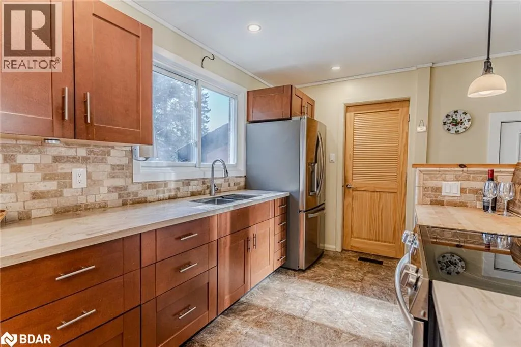 Frank Miller Memorial Rte/Sarah St N/Wagner St /Austin St N/Fraser St ALL-BRICK BUNGALOW ON A PRIVATE 66 x 130 FT LOT STEPS FROM LAKE MUSKOKA! Experience the best of Muskoka living at 255 Fraser Street, perfectly positioned within walking distance to Lake Muskoka, Lorne Street Beach, and beautiful public parks. Set on a quiet street less than five minutes from downtown Gravenhurst, this home offers easy access to restaurants, shopping, trails, everyday essentials, and a nearby medical clinic. The all-brick bungalow sits on a generous 66 x 130 ft lot with mature trees, a fenced backyard, and a handy storage shed. The inviting three-season sunroom with flagstone flooring overlooks the yard, creating a peaceful setting for morning coffee or evening relaxation. A recently updated kitchen features Corian countertops, stainless steel appliances, including a newer flat-top range, and a walk-in pantry that keeps everything organized. A striking granite stone gas fireplace anchors the living room, while engineered hardwood flooring adds warmth through the main living areas. The primary bedroom includes a walk-in closet and a 4-piece ensuite with dual sinks and a glass shower. The finished lower level offers in-law potential with a spacious family room featuring a second gas fireplace, a guest bedroom, a two-piece bathroom, and a workshop. A newer generator with a âGenlinkâ system provides reliable backup power, and the sale includes some furniture, along with a new soft tub hot tub still in the box. Enjoy nearby attractions like Muskoka Wharf, The Discovery Centre and Steamship Cruises, Gull Lake Rotary Park, and golf at Muskoka Bay Resort, all just minutes away. The kind of #HomeToStay that makes you fall in love with Muskoka all over again. (id:27476)