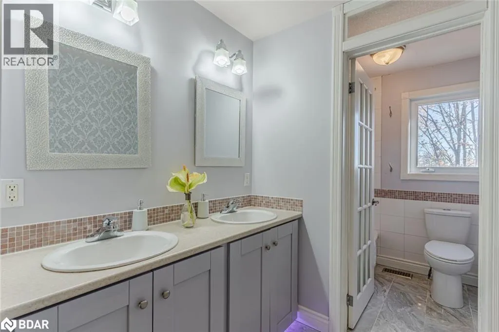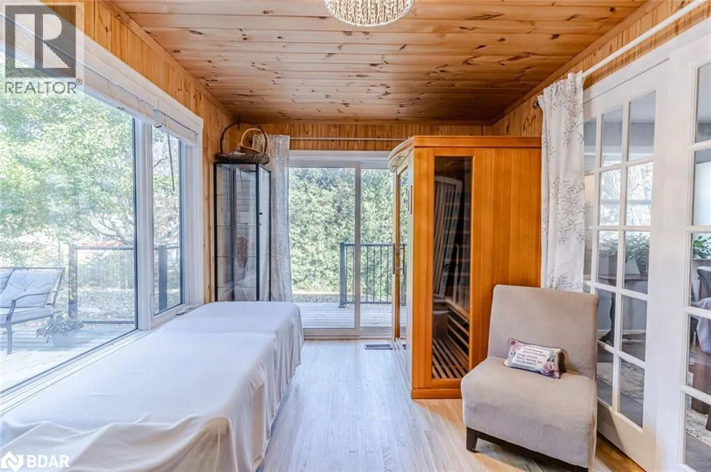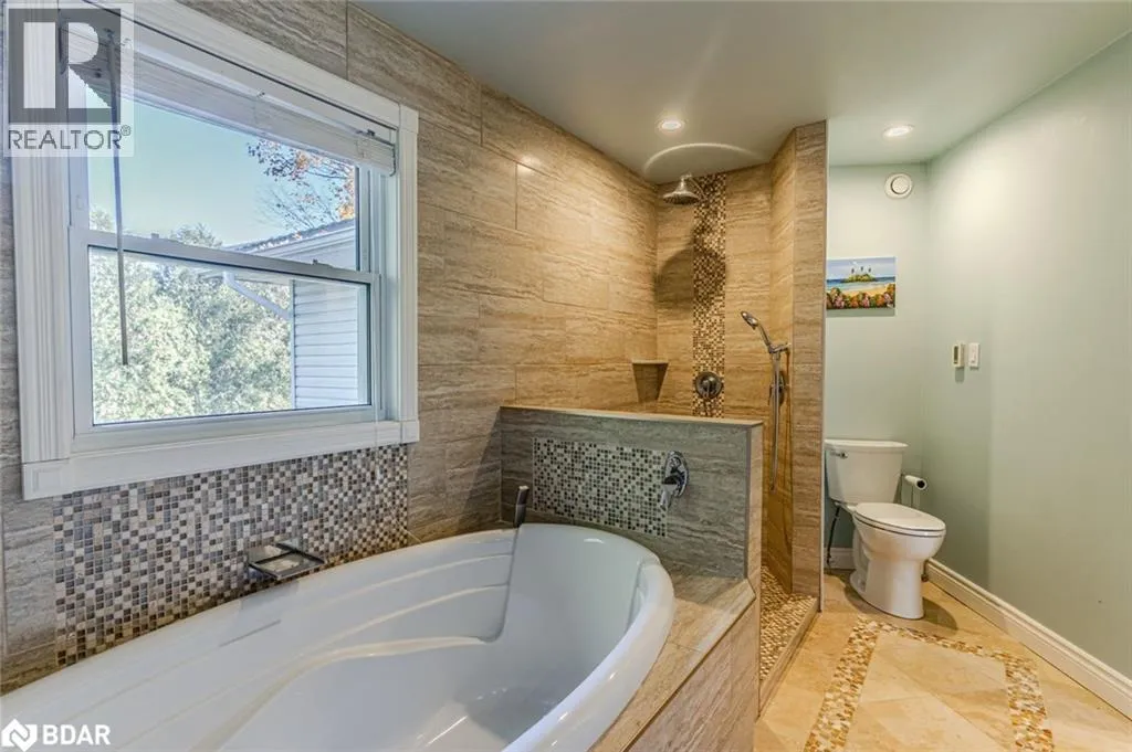 Muskoka Rd 169/Musquash Rd/Private St CUSTOM-BUILT RETREAT WITH 3,100+ SQ FT, DUAL GARAGES, SIGNIFICANT UPDATES & STEPS TO LAKE MUSKOKA! Tucked away on a quiet corner lot surrounded by towering trees, this custom-built home delivers the kind of lifestyle people dream about. Imagine mornings by the water, just a short stroll to Lake Muskoka or Muskoka Bay Park for a swim, a game of tennis, or a lakeside picnic, and afternoons spent exploring the Wharf, touring the Discovery Centre, cruising aboard a steamship, or playing a round at Muskoka Bay Resort. Set on a half-acre with over 3,100 sq ft above grade, this home offers a flexible layout that works beautifully for multigenerational living, a home-based business, or a large family. The exterior features a covered entry, an attached garage with inside entry, a detached garage, and two driveways. The kitchen presents granite countertops, an island, a gas stove, timeless white cabinetry, pot lights, and a wall of pantry storage. Flowing naturally into the breakfast area and formal dining room, it creates a warm, social space made for gathering. The adjoining living room steals the spotlight with its dramatic floor-to-ceiling feature wall framing a fireplace and large windows. The main level also provides a private office that can easily serve as an additional bedroom, along with a convenient laundry room. The primary suite is a true retreat, with a sitting area, a walk-in closet, and a spa-like 5-piece ensuite with heated floors. Another bedroom enjoys its own 3-piece ensuite, while two others share a stylish 5-piece bath. Multiple walkouts connect you to the outdoors, inviting you to unwind in the quiet of nature. With a whole-house water filtration system, gas BBQ hookup, newer, oversized septic system, an updated steel tile roof, and an unbeatable location just five minutes from downtown Gravenhurst for restaurants, shopping, parks, trails, and everyday essentials, this #HomeToStay isnât just a place to live - itâs a place to love. (id:27476)