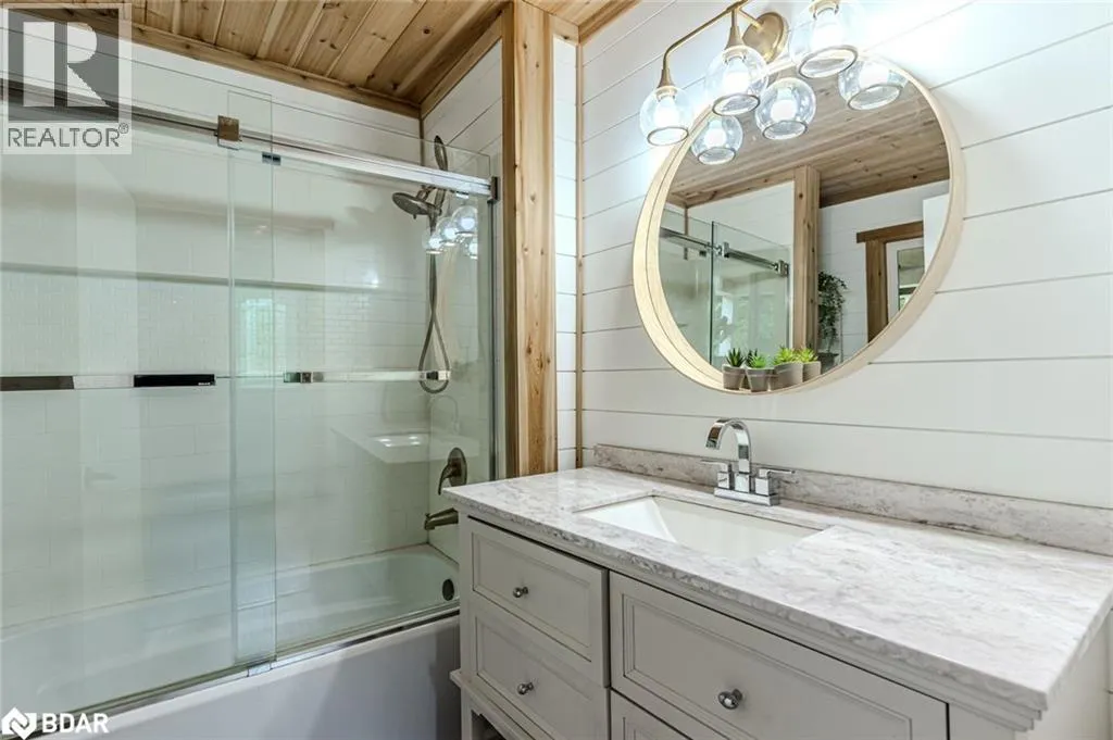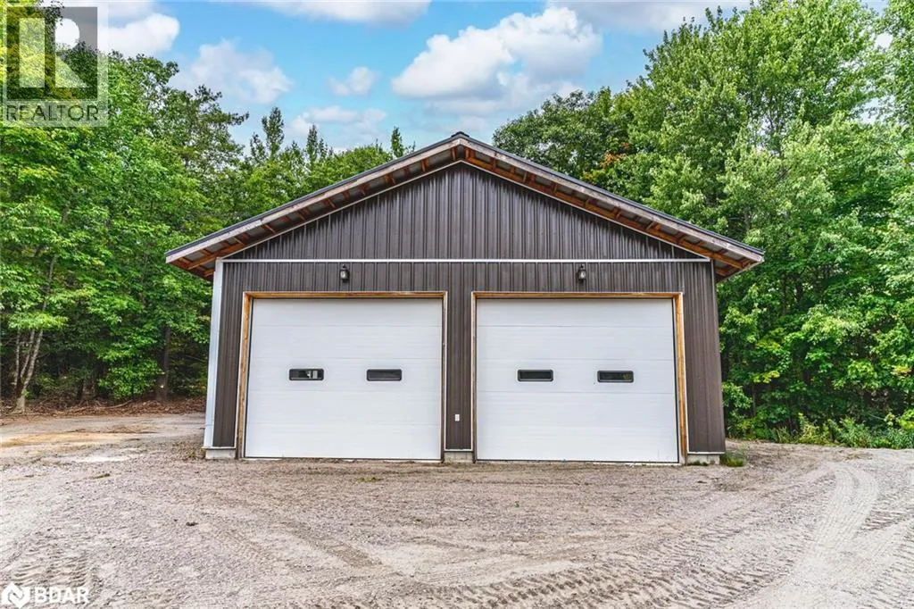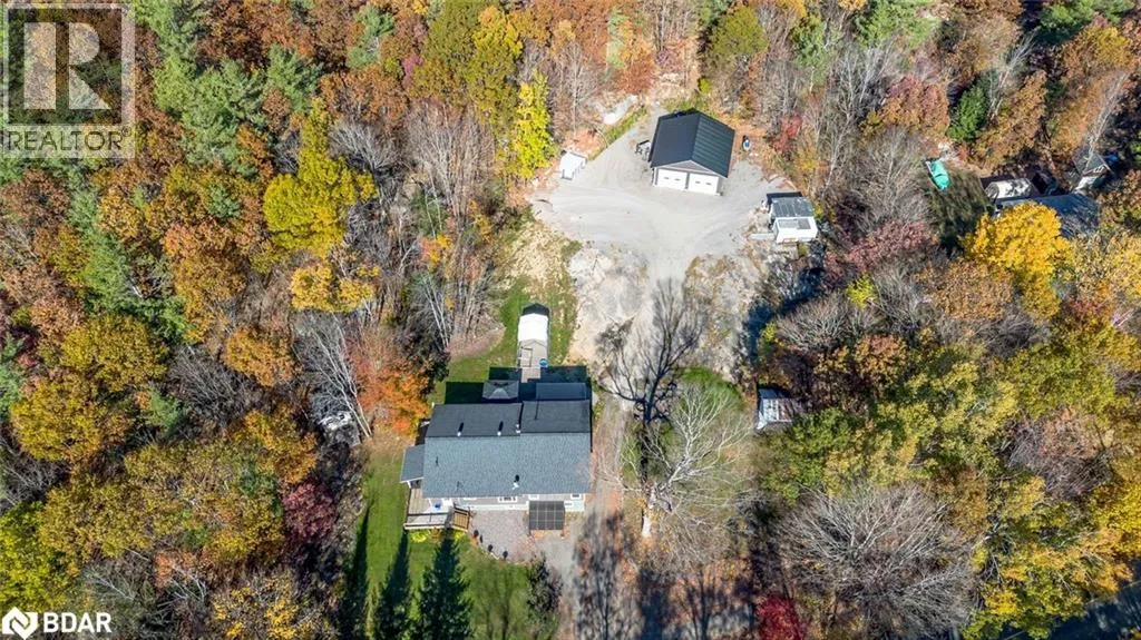 Kilworthy Rd/Arthur Schultz Rd/Beiers Rd FULLY REMODELLED MUSKOKA RETREAT ON 1.76 PRIVATE FORESTED ACRES WITH SOARING CATHEDRAL CEILINGS, A CUSTOM MUSKOKA SUNROOM, & A 30 X 30 FT SHOP WITH DOUBLE BAY DOORS! Tucked away on 1.76 acres of private, forested land, this extraordinary Muskoka retreat combines natural beauty with stunning upgrades and year-round comfort. Located just down the road from McLean Bay and Sopherâs Landing Marina, and only 10 minutes to downtown Gravenhurst, you are surrounded by lakes, trails, golf, and natural splendour, yet close to every convenience. Designed for outdoor enjoyment, the home boasts a wrap-around deck, a luxurious newer hot tub with a pergola, a charming 3-season bunky for guests or creative use, and a newly built 30x30 ft shop with double bay doors, ideal for car enthusiasts, hobbyists, or seasonal storage. An oversized driveway provides ample space for vehicles, RVs, boats, and other recreational toys. Inside, the striking open-concept design flows seamlessly through the kitchen, dining and living areas beneath soaring cathedral ceilings, while oversized windows frame serene forest views and flood the home with natural light. The inviting living room features a cozy stone-detailed fireplace, rustic exposed beams, and sliding barn doors leading to a primary suite with a walk-in closet and a spa-like 3-piece ensuite with a deep soaker tub. A custom Muskoka sunroom extends from the primary suite for quiet mornings or evening relaxation. Two additional bedrooms and a 4-piece bath complete the main level, while the walkout basement with a dry bar and electric fireplace provides versatile in-law suite potential or a stylish entertainment space. Completely remodelled with a thoughtfully designed addition, this home is finished with artisanal details, including a hand-milled white ash staircase. A true Muskoka sanctuary, this property offers the privacy, craftsmanship, and lifestyle youâve been dreaming of - ready to be enjoyed in every season! (id:27476)