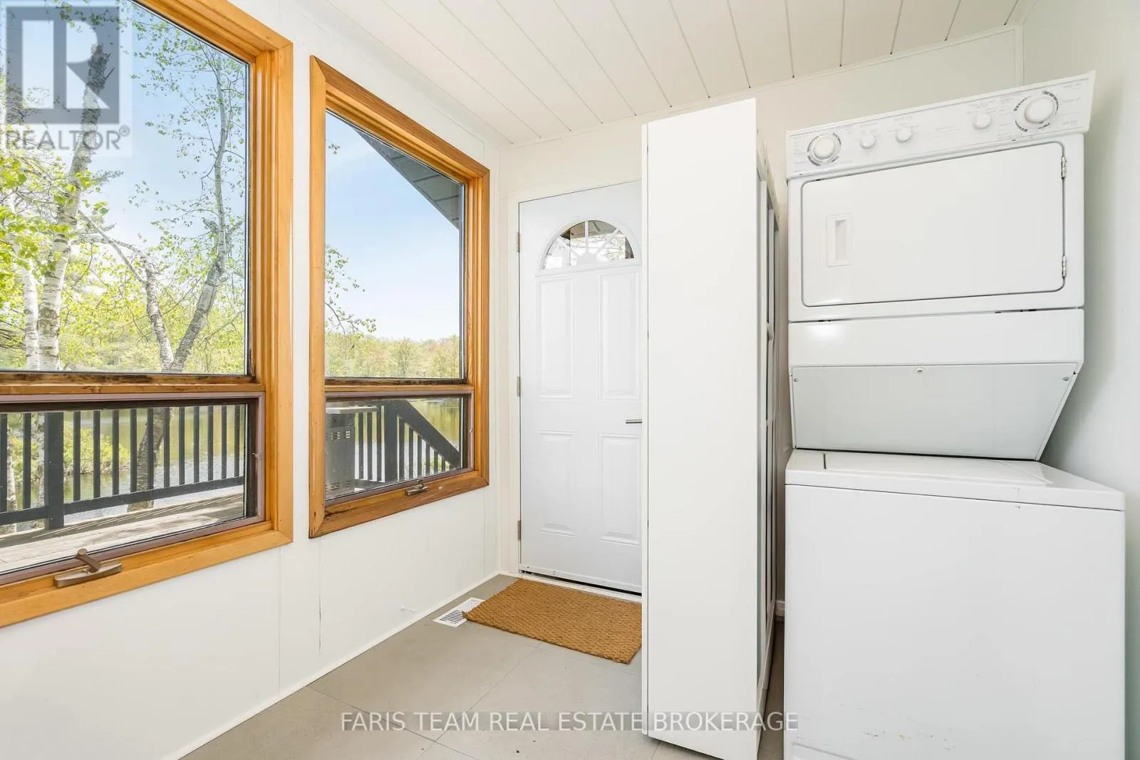 Clear Rd/Sanderson Rd Top 5 Reasons You Will Love This Home: 1) With 97' of pristine private shoreline on Clearwater Lake, this is more than a property, it's your personal retreat, where you can enjoy the clear water and every sunrise 2) Step inside to an open-concept living and dining area where panoramic lake views steal the spotlight, and a beautifully finished kitchen, featuring quartz countertops, adds a refined touch 3) Arrive and unwind, this turn-key getaway comes fully furnished, right down to the watercraft, so you can skip the setup and head straight for the dock 4)Whether you spend your days paddling through glassy waters, fishing at dawn, hiking nearby trails, or gathering under the stars by the fire, this isa haven for both adventure and tranquility 5) Nestled in one of the lakes most coveted corners, you'll enjoy quiet seclusion with the convenience of shops, restaurants, and entertainment just 30 minutes away, and all less than 90 minutes from the Greater Toronto Area. 993 above grade sq.ft. (id:27476)