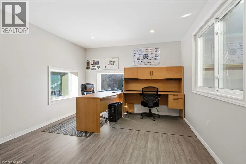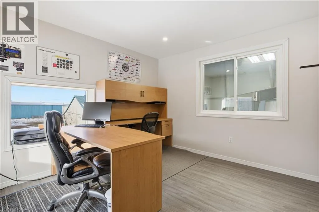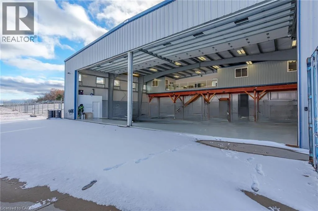 Left off of Gravenhurst Parkway. Pristine Airport Hanger FOR SALE: Located at Muskoka Airport, this 5,747 sq ft hanger offers a 61 foot wide and 18 foot high door, large concrete apron, perfect for business or personal use and was previously used by a helicopter company. The building has both 100 and 200 amp electrical service, six zones of heated in-floor concrete, three offices on an elevated mezzanine, full security system and additional forced air heat when doors are open in winter. The building has own well and septic, 3-piece washroom with shower. The hangar is on leased land with District of Muskoka at a cost of $908 per month, plus monthly taxes of $520.25. The Muskoka Airport (CYQA) has one runway. The runway 18/36 is 1,829m x 45.7m (6,000' x 150') asphalt and has a Pavement Load Rating (PLR) of 9 - capable of carrying loads of 90,720 kilograms (200,000 lbs) MTOW. Runway 18 has a displaced threshold of 244m (800') due to the 4-lane Highway in the approach path. Runway 18 is equipped with a Precision Approach Path Indicator (PAPI) and a Non-Directional Beacon (NDB) located 3.5 nautical miles from the airport. Both runway orientations 18 and 36 have GPS based approaches charted as RNAV (GNSS). The airport also has Direction Finding equipment (VHF-DF) that can be used to locate aircraft through their transmission frequency. The Muskoka Airport is an official Canada Customs airport of entry. (id:27476)