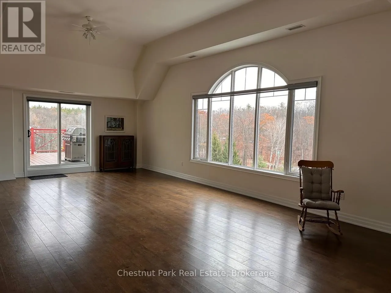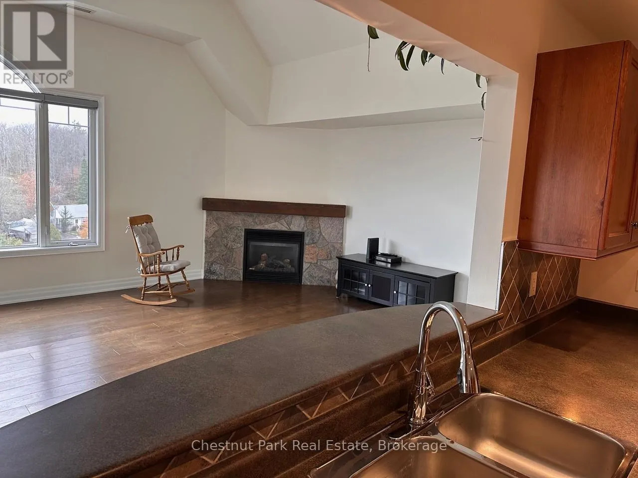 Cross Streets: Muskoka Road 169 aka Bay Street and Steamship Bay Road. ** Directions: Muskoka Road 169 aka Bay Street to Steamship Bay Road. Luxury. Convenience. Muskoka Charm. Penthouse Condo. Steps from the vibrant Gravenhurst Wharf Boardwalk, enjoy effortless access to shopping, waterfront dining, concerts, farmers' markets, ski shows, and cruises aboard the Segwun & Wenonah. With nearby boat slips, it's your dream cottage-without the maintenance or waterfront taxes. Inside this top-floor penthouse, discover soaring 12-foot ceilings, a stunning Palladian window, and over 1,100 sq ft of sunlit, open-concept living. Relax by the gas fireplace with tranquil views of Muskoka landscape. Two private balconies showcase breathtaking sunsets. Both bedrooms feature 4-piece ensuite bathrooms and walk-in closets. The Chef's kitchen offers stainless steel appliances, a walk-in pantry, and generous prep area and pass-through-perfect for entertaining. Enjoy premium carport parking, a storage locker, and all-inclusive condo fees covering gas, water, cable, and internet. A rare Muskoka penthouse-luxury, privacy, and lifestyle in one exceptional address. (id:27476)