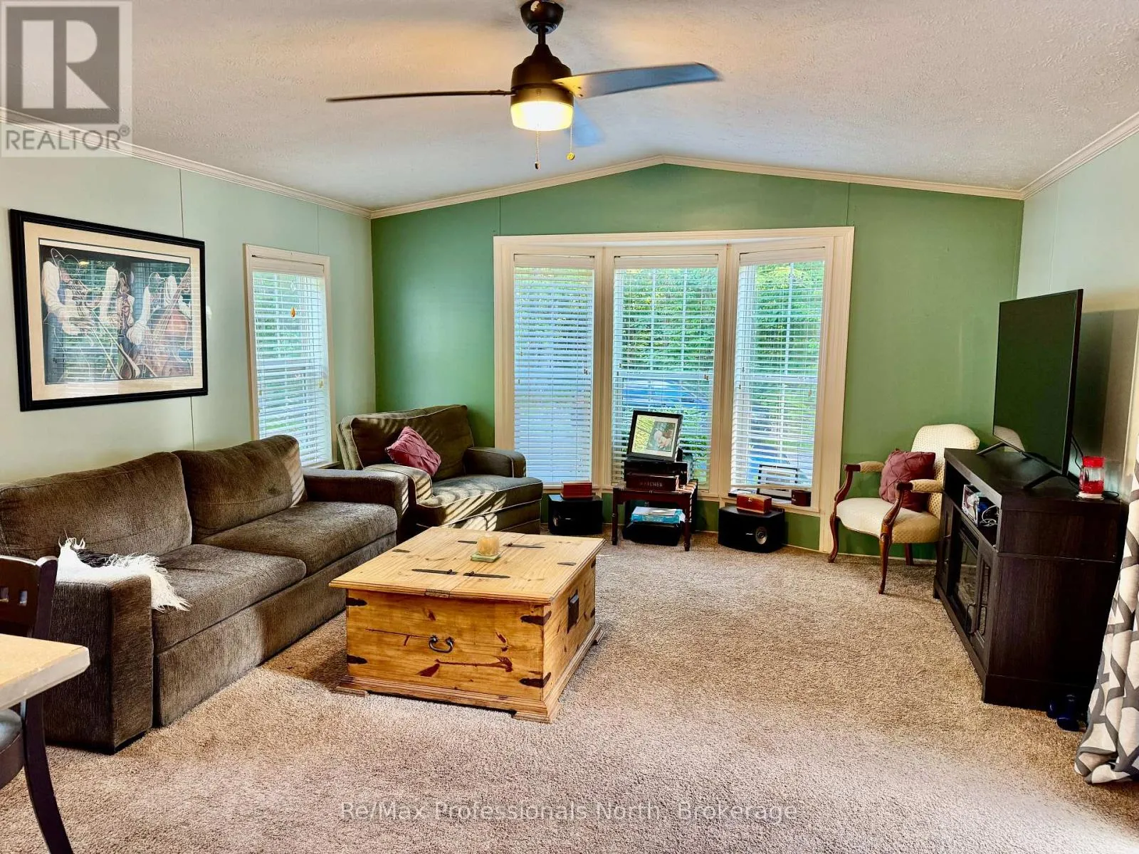 Hwy 11 S. turn right onto Ure rd. left ont Sedore Rd. left onto Beaver Ridge Rd. and right onto Racoon Rd. to SOP This well-maintained 734 sq ft 2006 Titan model offers affordable, comfortable living just minutes from downtown Gravenhurst. With 1 bedroom, 1 bathroom, and upgraded construction and insulation, this home provides better efficiency and comfort than most units in the park. You'll also love the covered outdoor deck, which nearly doubles your living space during the warmer months. Inside, enjoy the convenience of in-unit laundry, a bright open layout, and large kitchen for easy meal prep and entertaining. The unit also comes with a spacious shed/workshop for hobbies or extra storage. Just steps from the in-ground community pool and recreation centre, this home is ideally located for those who value community, walkability, and a relaxed lifestyle. The pet-friendly park is only 2 minutes from shops, restaurants, and other town amenities. Don't miss your chance to own this charming, efficient home in a quiet, friendly community book your showing today! (id:27476)