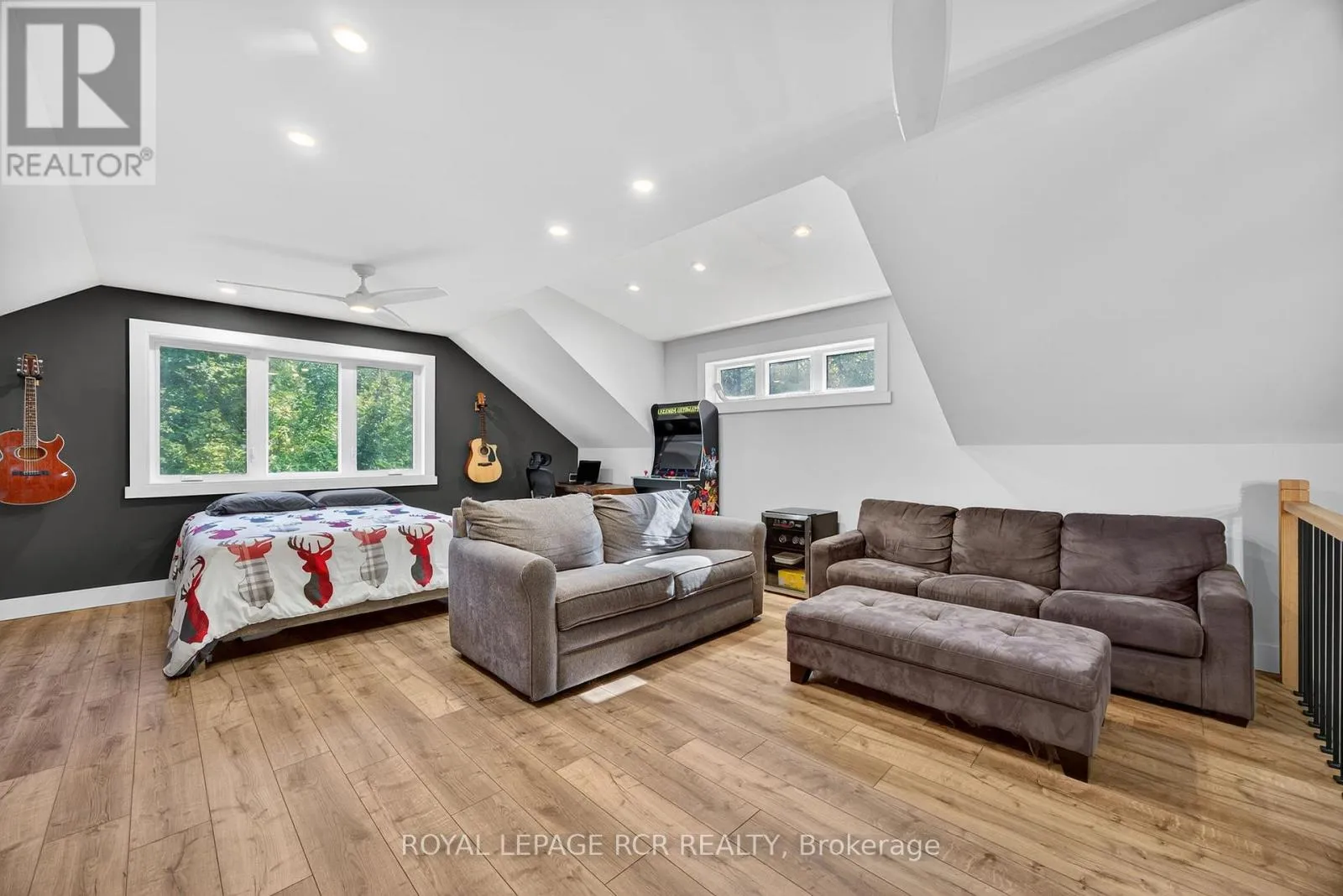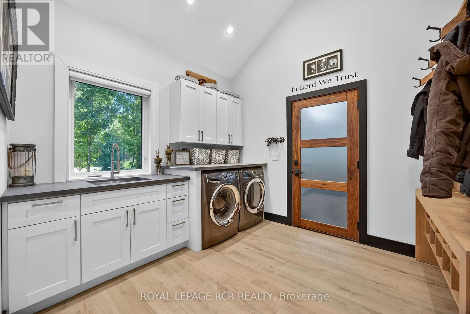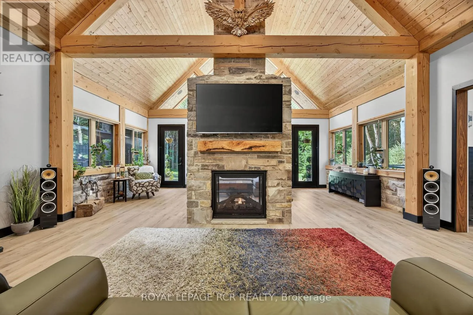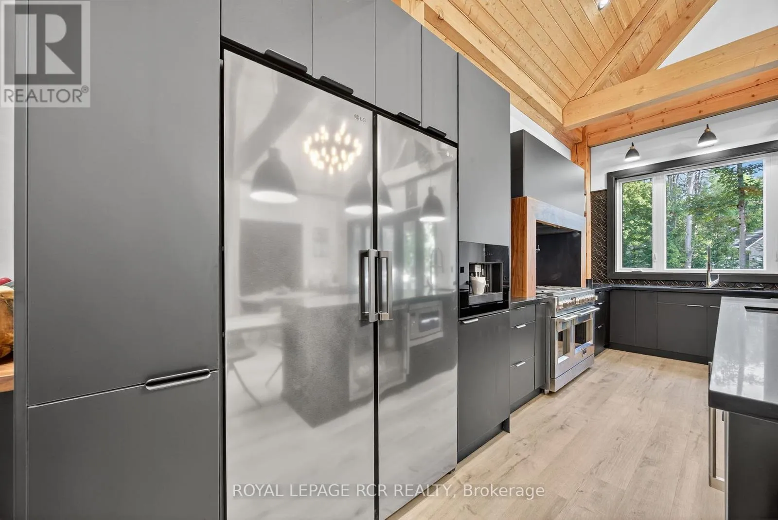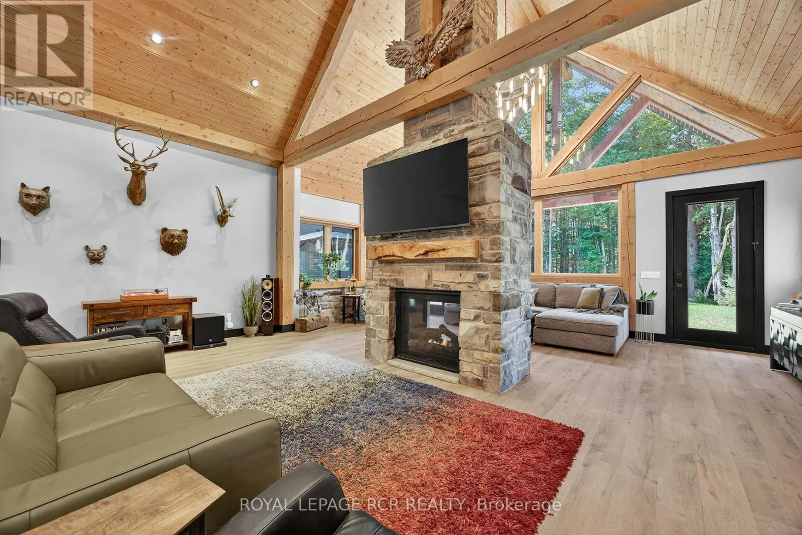 Xavier St. and Kilworthy Rd. Welcome to this stunning 2022 custom-built post & beam home, nestled on over an acre of privacy at the end of a quiet cul-de-sac, surrounded by green space. Every inch of this home is fully customized-nothing is builder grade-with design and craftsmanship that set it apart. Step inside the spectacular 25' vaulted great room, where soaring beams, a floor-to-ceiling double-sided stone fireplace, and radiant heated floors set the tone for comfort and style. The chef's kitchen is a true showpiece with solid walnut accents, a Fulgor Milano 48" propane range with double ovens, built-in coffee maker, wine fridge, and oversized fridge/freezer-perfect for entertaining. The primary bedroom offers 14' ceilings, a walk-in closet with library ladder, custom storage, a spa-inspired ensuite with rain shower & body jets, a private fireplace. With 3 bedrooms plus a loft and the option for a separate in-law suite, this home is ideal for families or hosting guests. Smart home technology elevates daily living with voice-activated control of lighting, blinds, fireplace, security, HVAC, and media throughout. Outside, enjoy a fenced backyard with gardens, a firepit, a Hydropool hot tub, and a full outdoor kitchen & bar-your private Muskoka resort. The property also boasts an incredible 50' x 50' detached workshop/garage, fully insulated with radiant in-floor heating, HVAC, water, washroom, compressed air lines, and oversized doors-perfect for hobbies, storage, or business needs. From spray foam insulation and 50-year shingles to custom walnut doors and chandeliers, this home blends efficiency, luxury, and craftsmanship at every turn. 10 minute drive to Bracebridge, 23 minute drive to Orillia. You will never see a house like this one with every inch of this home upgraded, your Muskoka dream home awaits. (id:27476)