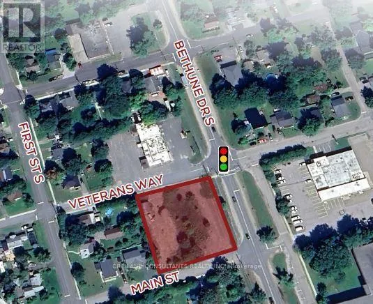 Bethune Dr S / Veterans Way Exceptional 0.70-acre of land with site plan approval for a gas station business and a retail investment development opportunity. The site is approved for a +/- 4,294 SF commercial retail building consisting of three units with an endcap drive-thru wrap around, a three gas pump bar, two underground storage tanks, and 19 parking spaces (2 H. accessible). The property has frontage on three streets along with multiple access points from both Main Street and Veterans Way. Esso-approved location with projected 5 million litres. LOI from petroleum retailers to lease gas bar and c-store for $175,000 + TMI per annum. Preliminary interests from franchise QSR brands for the retail units projecting over $110,000 annual rental income. (id:27476)