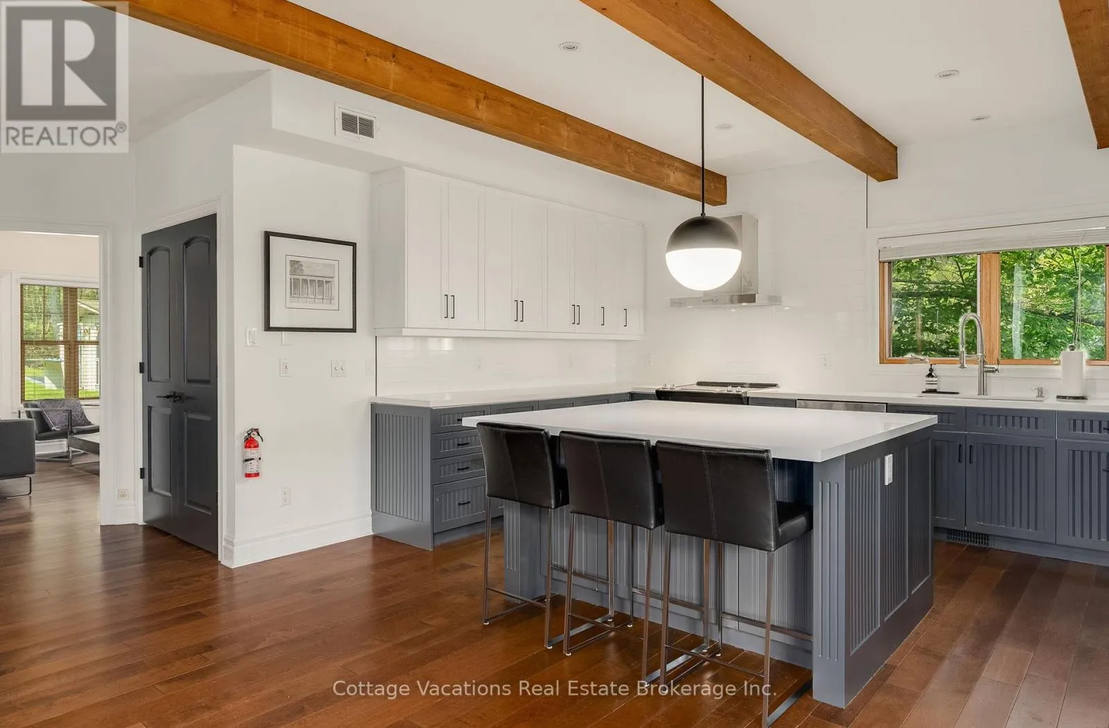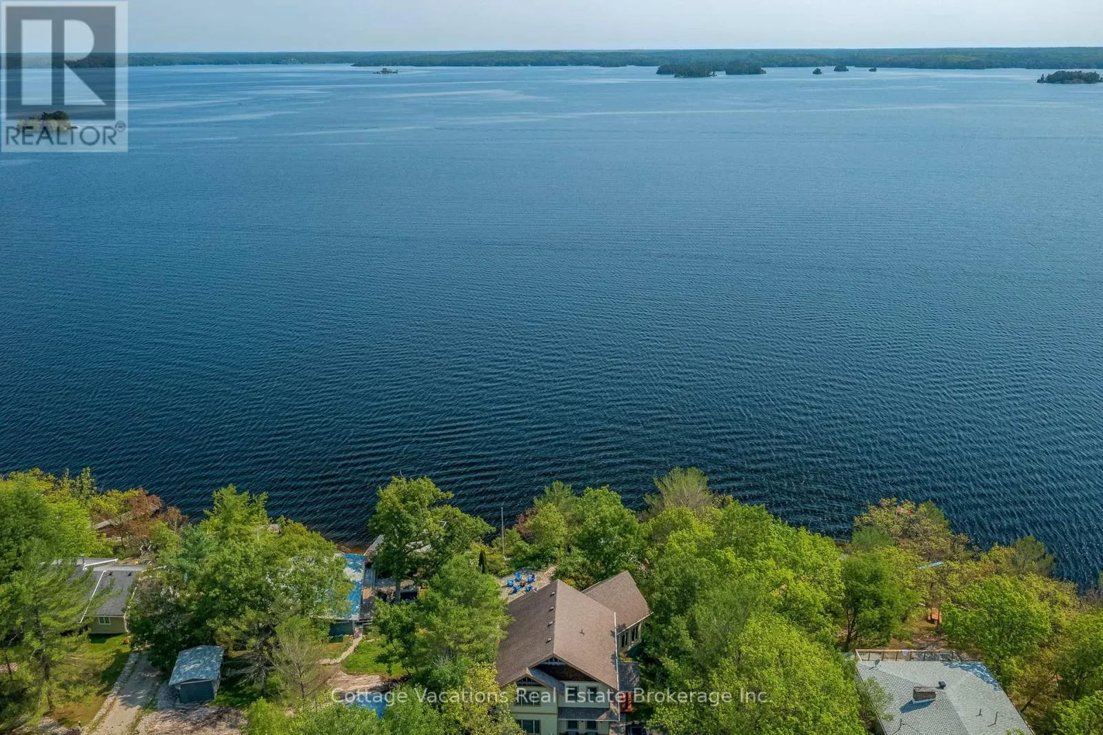 Cross Streets: Narrows Rd/Lawland Heights Rd. ** Directions: Hwy 169 to Narrows Road, to Lawland Heights Rd to 1016. A rare opportunity to own a truly exceptional retreat+investment on the coveted south shore of Lake Muskoka. Welcome to Muskoka Blue, an extraordinary offering that combines modern sophistication with the timeless beauty of Muskoka's natural landscape. A strong history as a very successful rental property with proven revenue allows the next owner to seamlessly start making a return on their investment from day one. Ideally situated less than two hours from the GTA, this stunning cottage delivers both accessibility and a world away feeling for an unrivaled sanctuary for those seeking the finest in waterfront living. Showcasing over 2,700 square feet of thoughtfully designed living space, Muskoka Blue features 5 bedrooms and 3 bathrooms, perfectly appointed for relaxed, elegant entertaining. Soaring 21-foot vaulted ceilings and expansive walls of glass frame breathtaking, long lake vistas, creating seamless indoor-outdoor connections. The great room, anchored by a grand stone fireplace, is both impressive and inviting, while the screened Muskoka room and extensive decking further extend the living spaces into the natural surroundings.The chefs kitchen is the heart of the home, offering a large centre island, Quartz countertops, and premium stainless steel appliances the ideal setting for gathering with family and guests. Outdoors, a private cantilevered dock invites endless exploration across Muskoka's famed Big Three Lakes Muskoka, Rosseau, and Joseph with exceptional opportunities for boating, swimming, and water sports. Designed for memorable entertaining, the generous outdoor granite fire pit area, al fresco dining spaces, and thoughtful landscaping ensure privacy and tranquility. Offered fully furnished, Muskoka Blue is a true turnkey property, offering immediate enjoyment of all Muskoka has to offer. Rental income history available upon request. (id:27476)
