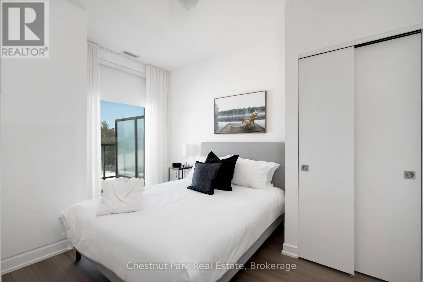 Cross Streets: Carrick Trail, N Muldrew Lake Rd. ** Directions: On N Muldrew Lake Rd, turn left on to Carrick trail. Go past townhomes to second Condo building. Welcome to effortless elegance at Muskoka Bay Resort, where contemporary comfort meets breathtaking natural beauty. This fully furnished 1-bedroom plus den suite is more than a condo, it's your gateway to a four-season Muskoka lifestyle with five-star amenities and exceptional investment potential. Perched on the fourth floor with unobstructed panoramic views of the 18th hole, this sun-filled, turn-key suite is designed to impress. Floor-to-ceiling windows flood the open-concept layout with natural light, while the private balcony offers a front-row seat to stunning sunsets and peaceful woodland vistas. Inside, the thoughtfully curated interior blends modern finishes with warm, inviting touches-ideal for weekend escapes or full-time living. The versatile den adds valuable flexibility as a home office, guest space, or cozy reading nook. Owners enjoy access to Muskoka Bay's award-winning amenities, including two (soon-to-be three) outdoor pools, a state-of-the-art fitness studio, Cliffside Restaurant, championship golf, winter skating, cross-country skiing, fat biking, and seasonal programming. Located just two minutes from downtown Gravenhurst, you're close to shopping, cafés, Lake Muskoka, and year-round events like the popular Wednesday Farmers' Market. Whether you're seeking a personal retreat or a high-performing income property, this condo offers both, enhanced by Muskoka Bay Resort's professionally managed rental program.BONUS: Golf or Social Membership entrance fee included with purchase. Escape. Earn. Enjoy. Live the Muskoka lifestyle seamlessly. (id:27476)