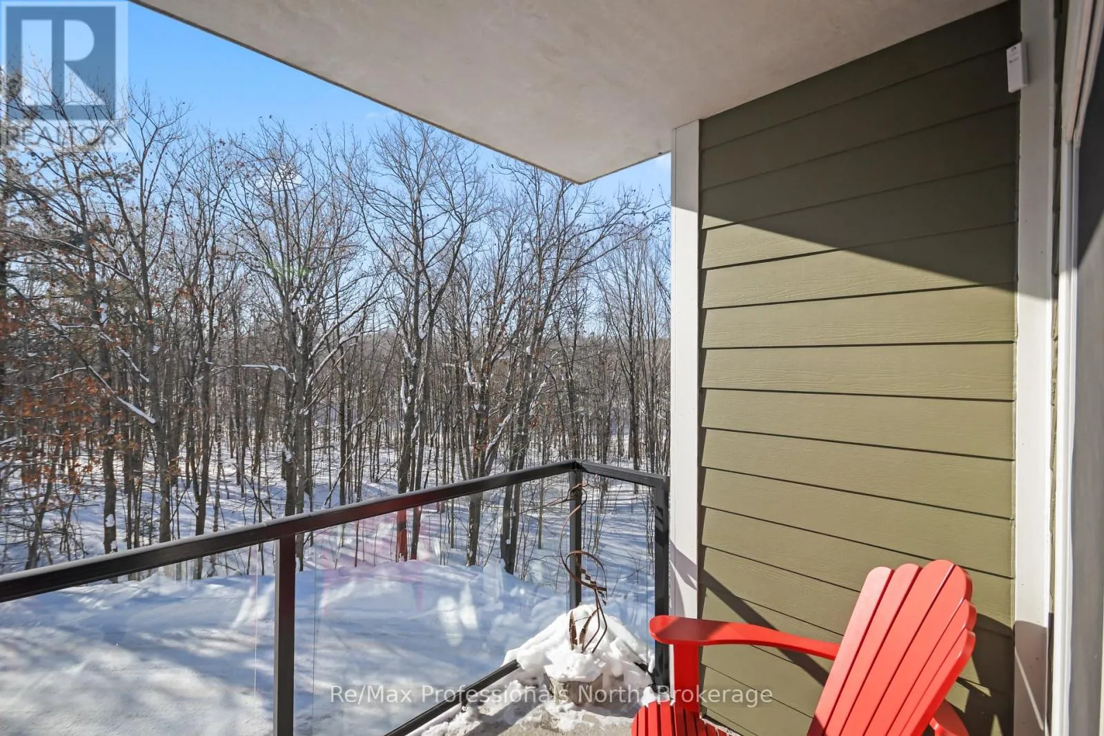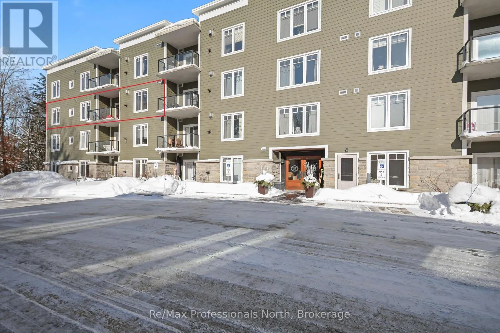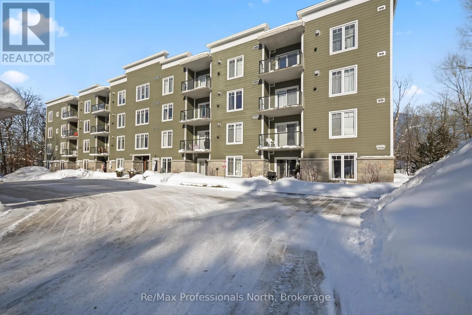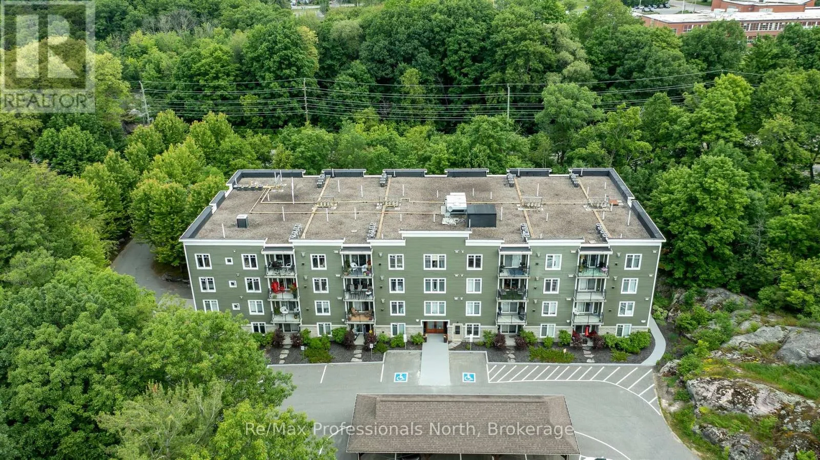 Cross Streets: James and Muskoka Road South. ** Directions: : James and Muskoka Road South. Welcome to this bright, immaculate 3 bedroom, 2 bathroom condo in Granite Trail, one of Gravenhurst's most desirable and well-constructed condo buildings. Built in 2008 with full ICF construction, this exceptionally quiet, well-managed building is the only condominium in Gravenhurst with underground parking and includes handicap accessible features throughout. The open-concept living, dining, and kitchen area is filled with natural light from large South facing windows and glass doors leading to a private, covered terrace, perfect for enjoying peaceful elevated forest views. The unit has been beautifully renovated, featuring new flooring, kitchen, bathroom vanities, fresh paint, modern light fixtures, electronic window coverings, and upgraded appliances, it is truly a move-in ready unit. The thoughtfully designed layout is separated into two private wings. The primary wing offers a spacious primary bedroom overlooking the forest, a 4-Pc primary bath with jet tub, a walk-in closet with pocket door, and an additional room ideal for a guest bedroom or private office. The second wing features a large guest bedroom with forest views and a close by updated 3-Pc bathroom, providing excellent privacy for visitors. Included are one exclusive underground parking space (#21), one exclusive same-floor storage locker (#2), and additional above grade public parking spaces. Residents enjoy manicured grounds and worry-free living with all exterior maintenance, groundskeeping, common elements, and water/sewer covered by the condo corporation. Condo fees are $730/month uniquely the same across all unit owners, no rentals, HWT on demand with a ventilator provides very low heating costs. An exceptional opportunity to own a bright, spotless, pride-of-ownership home offering comfort, privacy, and low-maintenance Muskoka living. (id:27476)